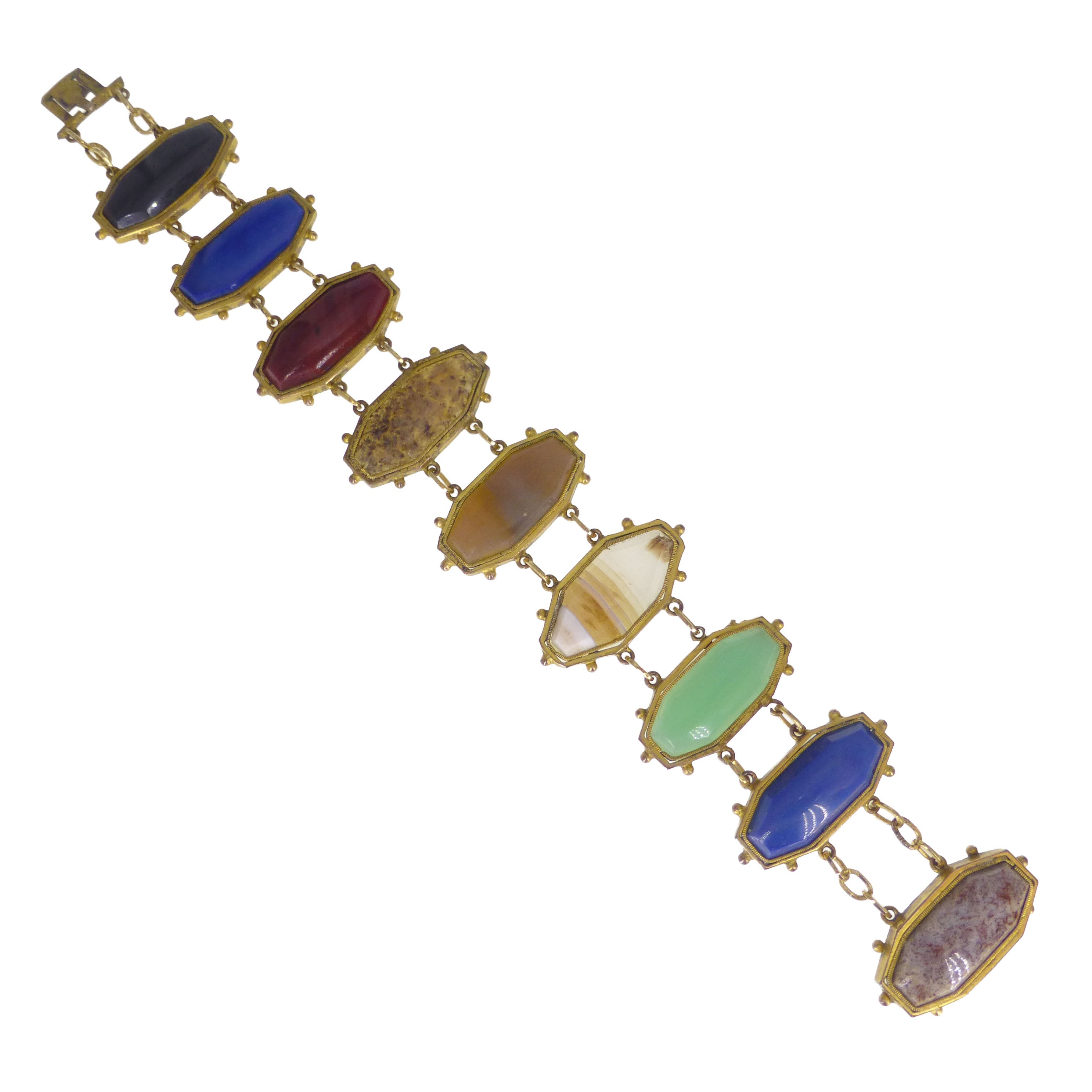 Antique Etruscan Revival Agate & Glass Panel Bracelet