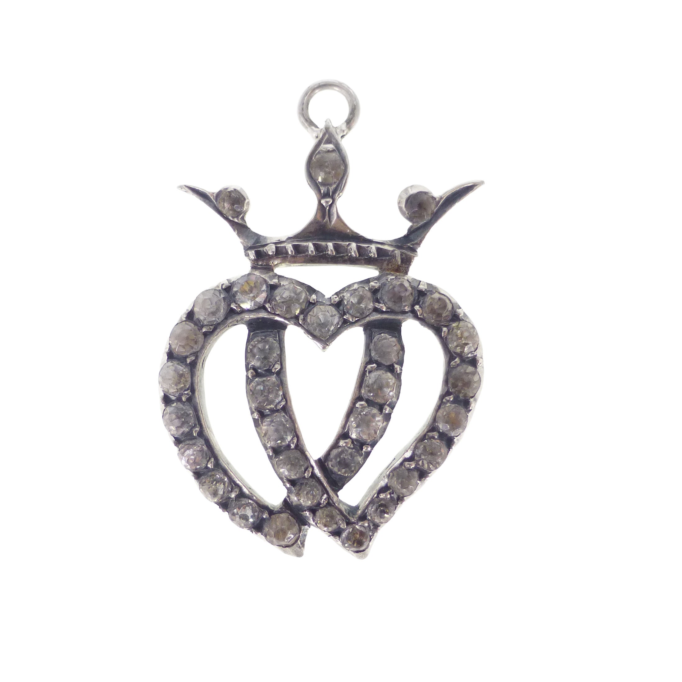 Antique French Silver Crowned Heart Luckenbooth Pendant