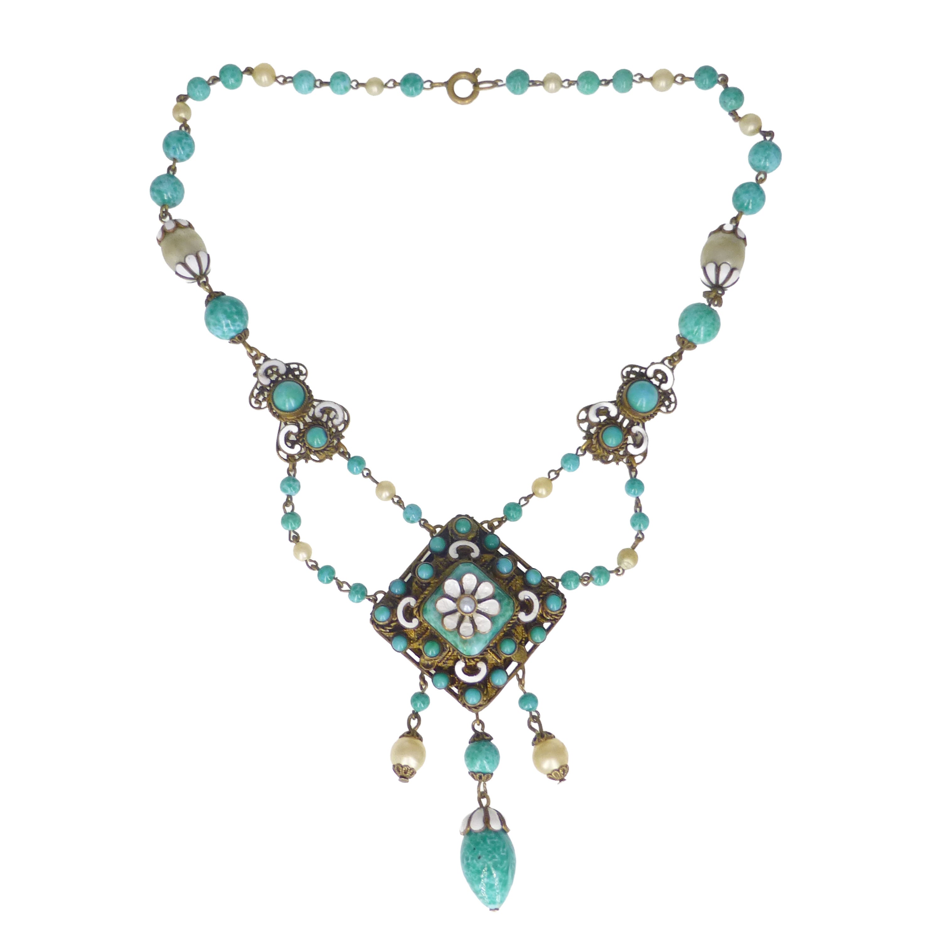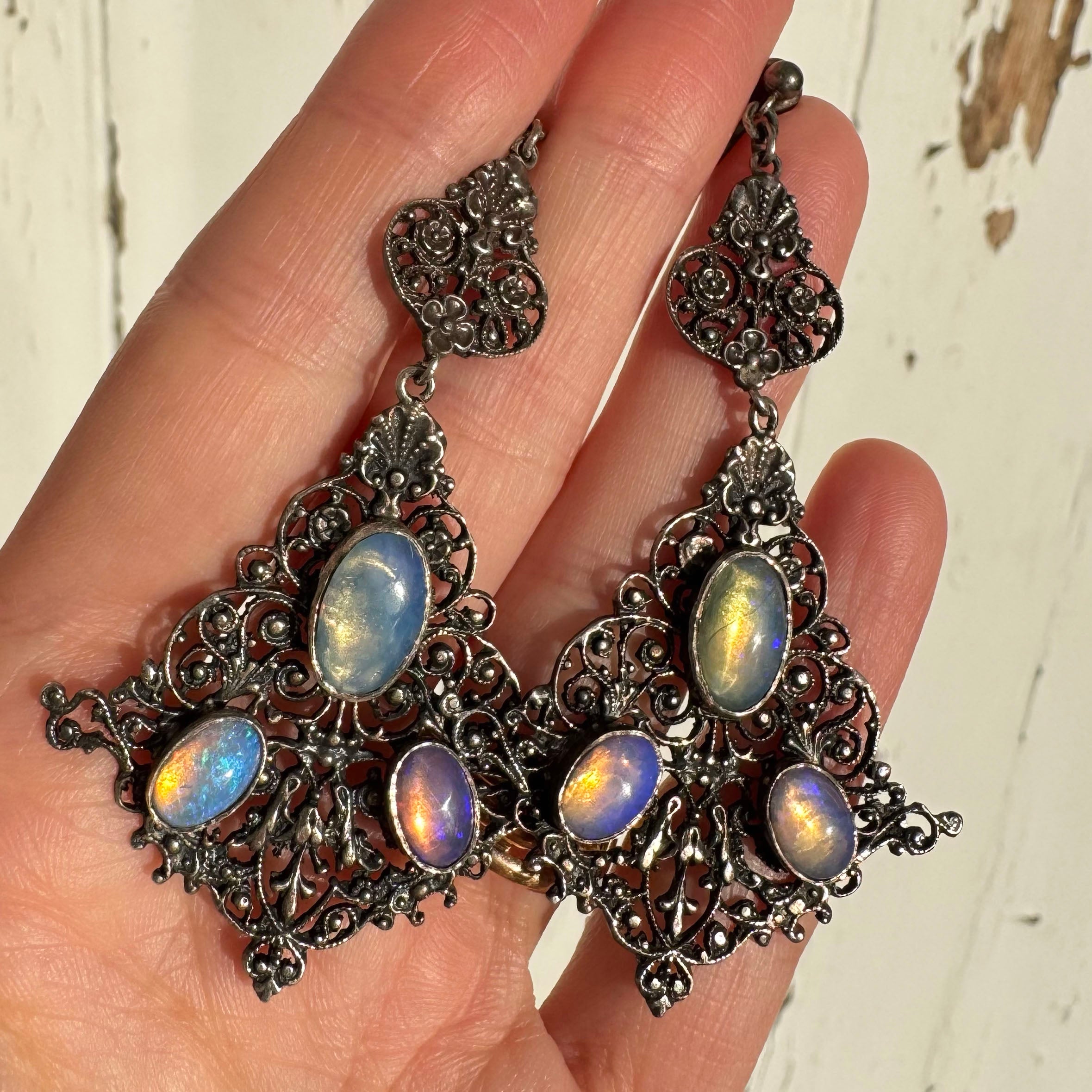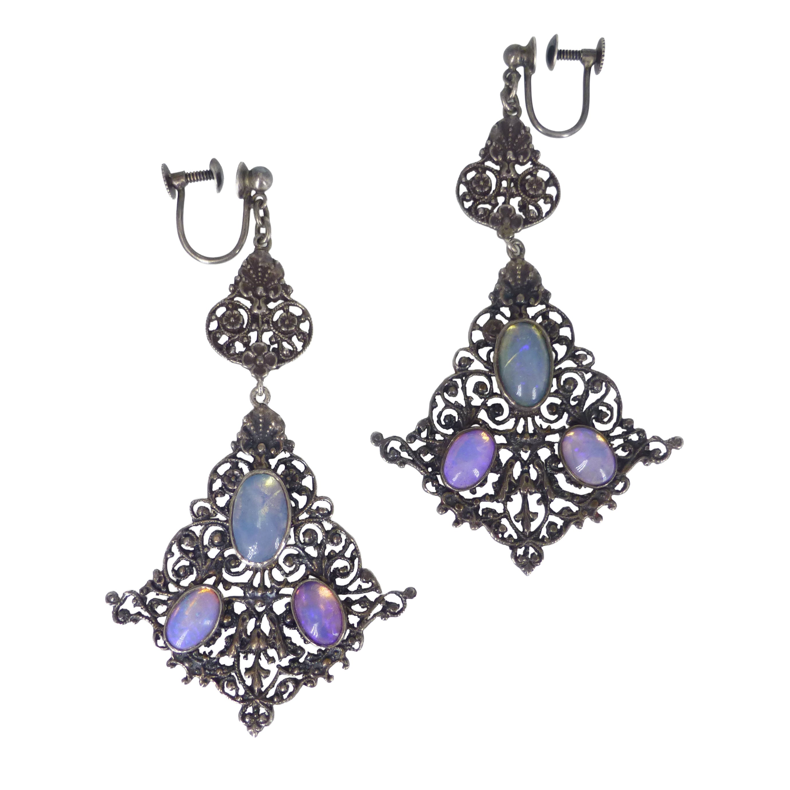 Antique Silver Austro Hungarian Opal Chandelier Earrings