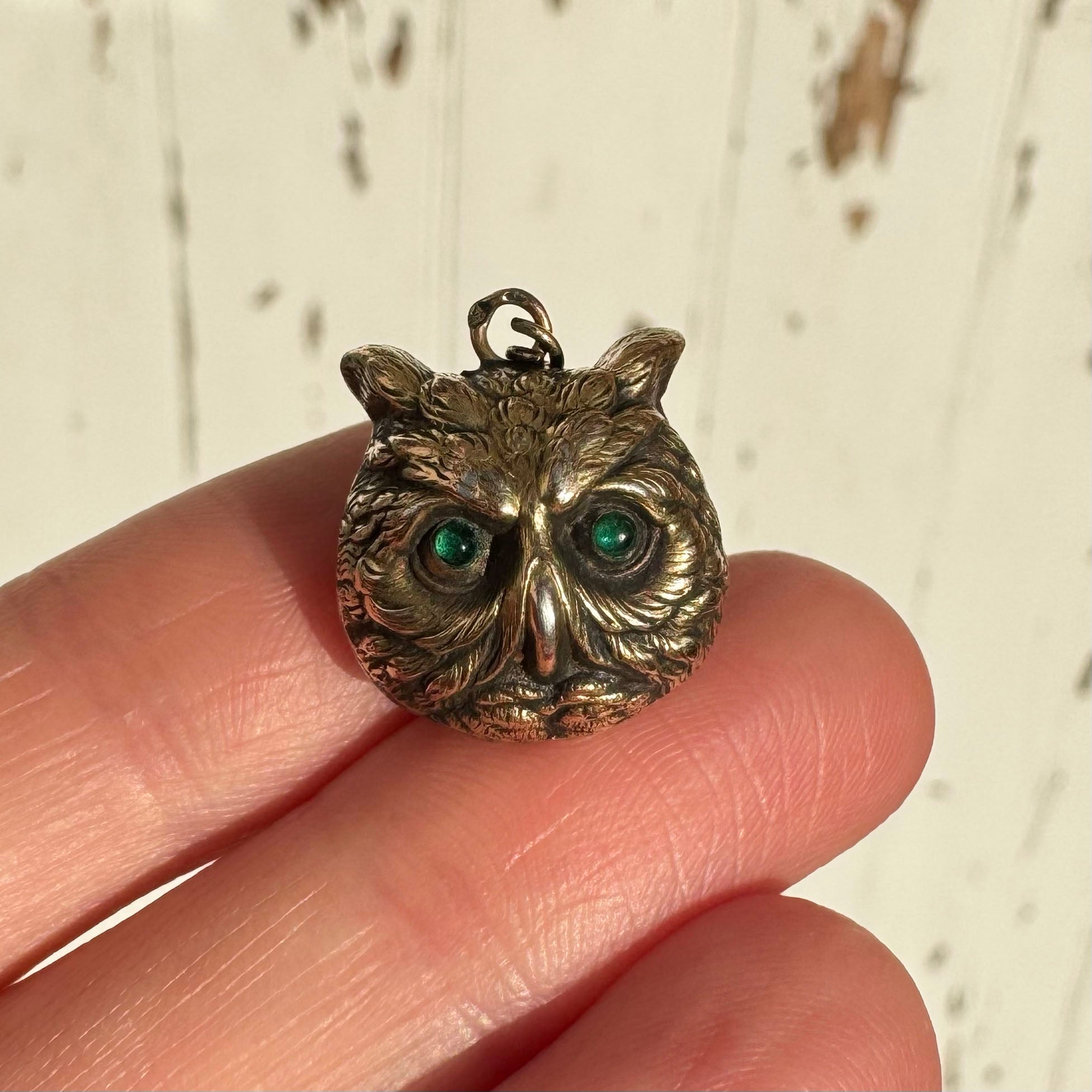 Antique Edwardian Silver Metal Enamel Owl Charm