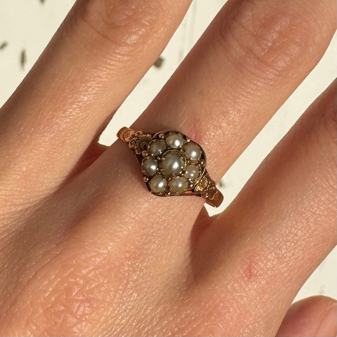 Antique Georgian Gold & Pearl Engraved Posy Ring