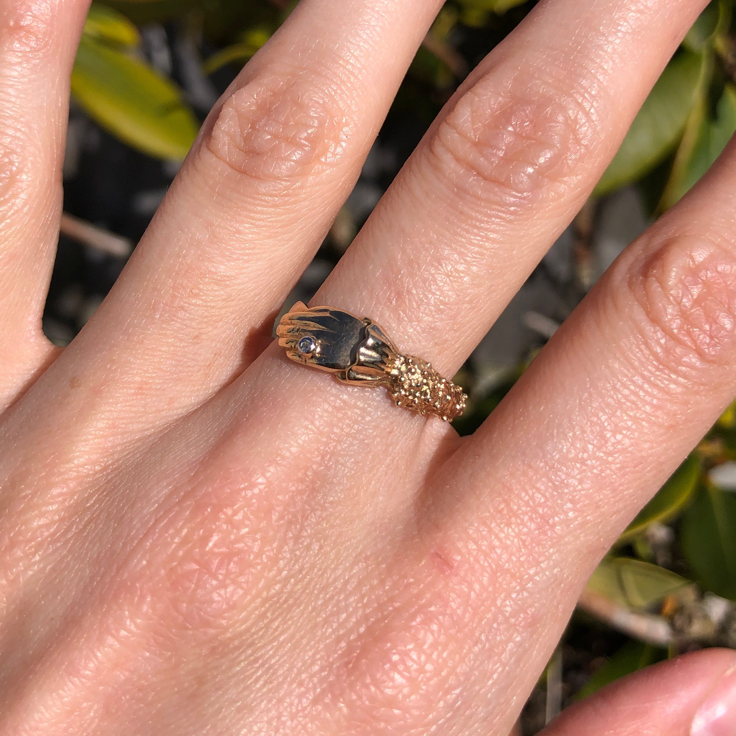 Vintage Victorian Revival 9ct Gold Diamond Hand Ring