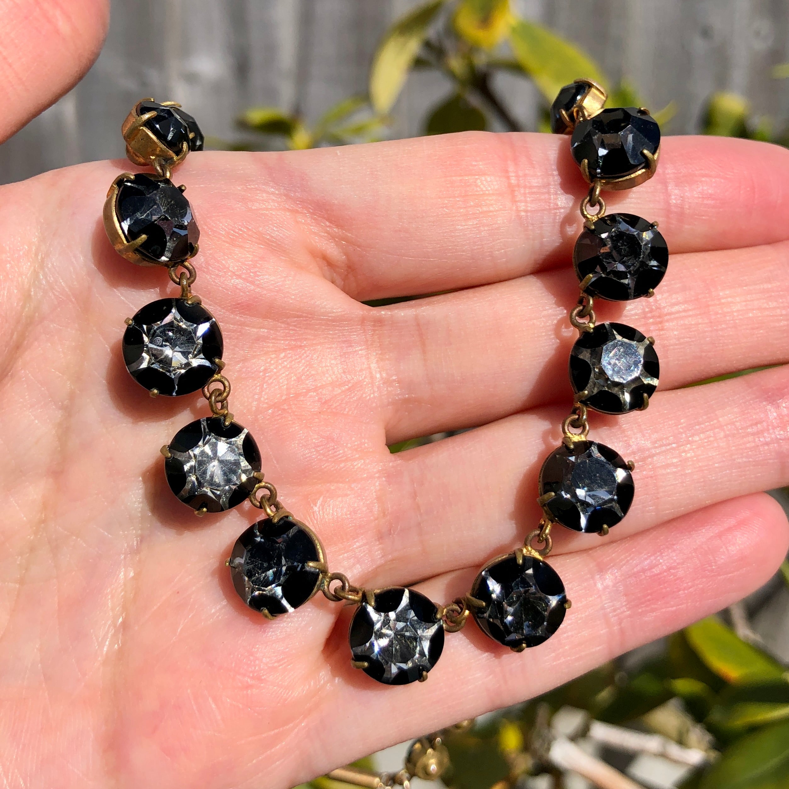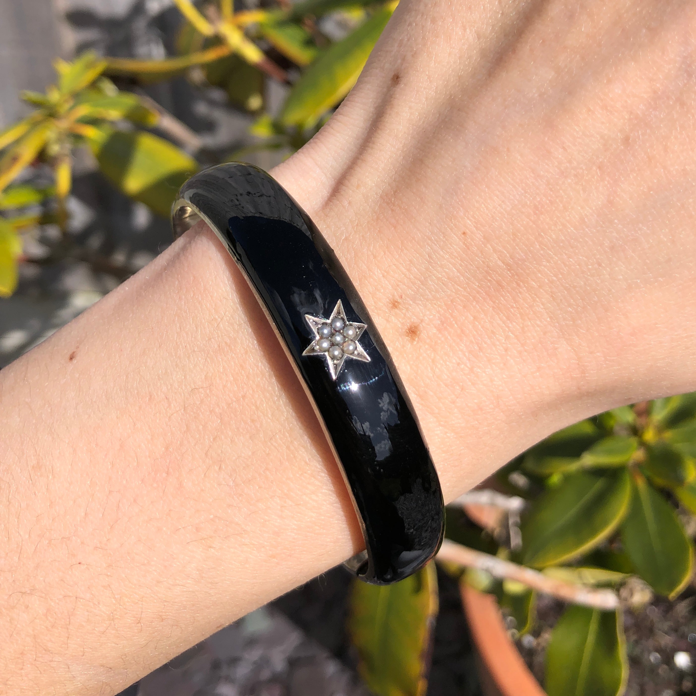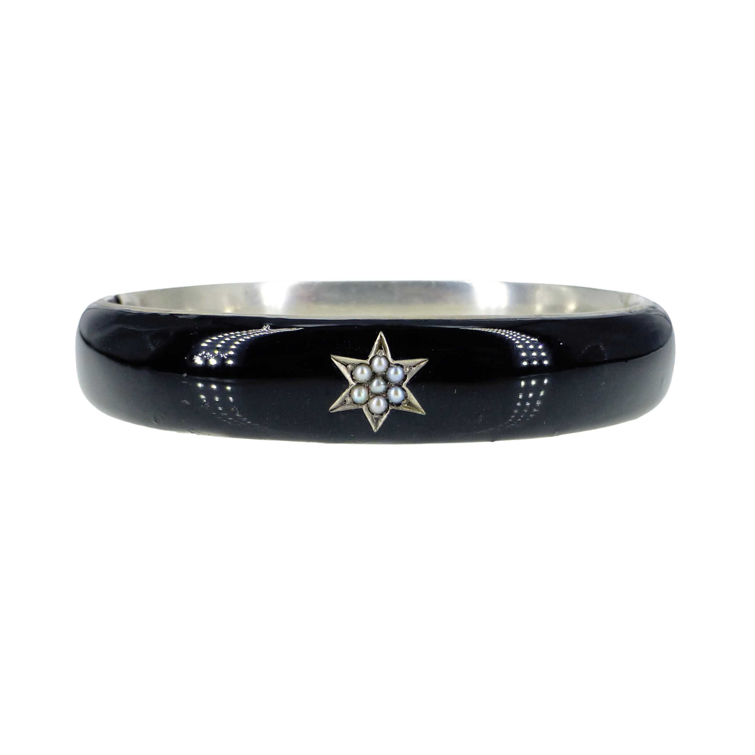 Antique Victorian Black Enamel Pearl Star Mourning Bangle