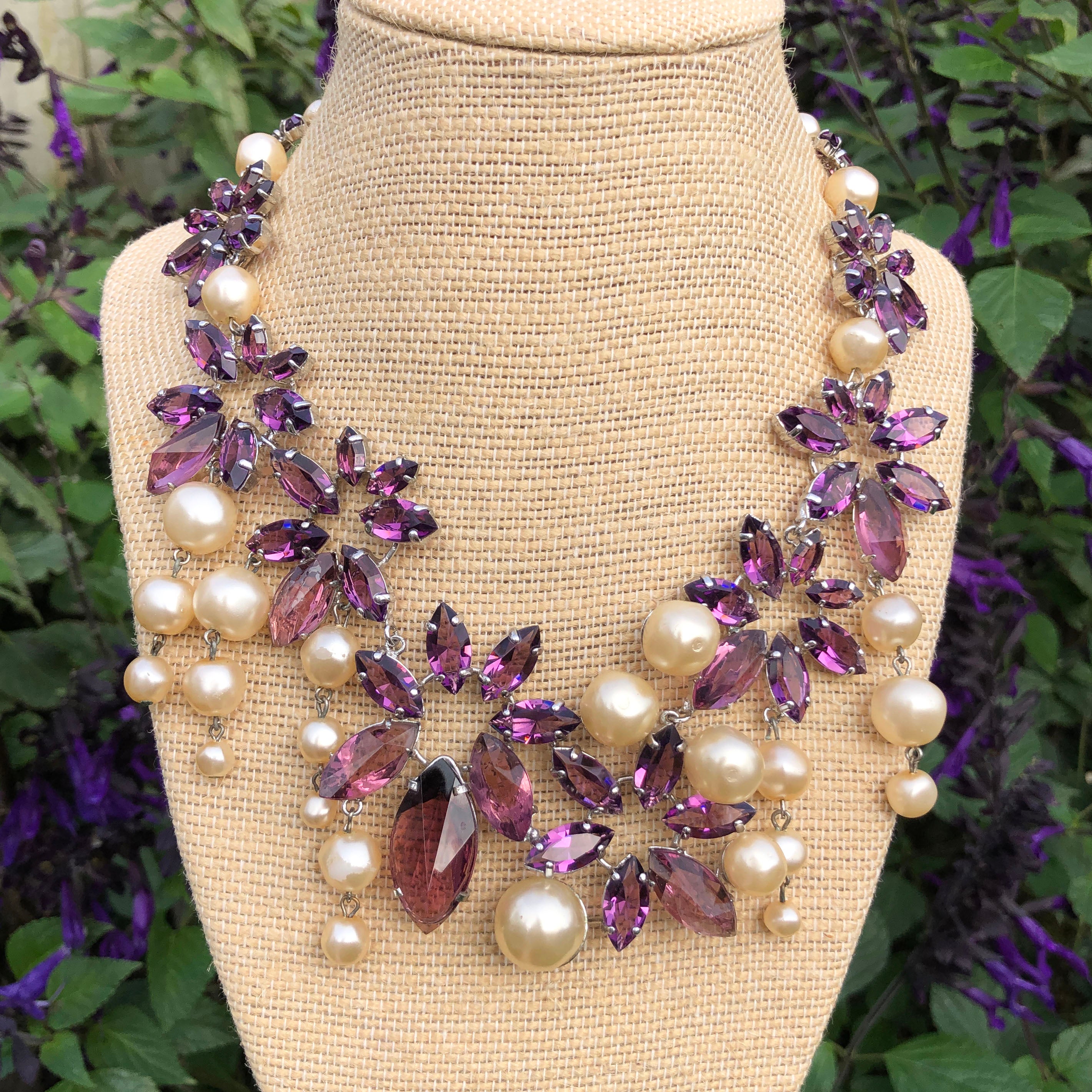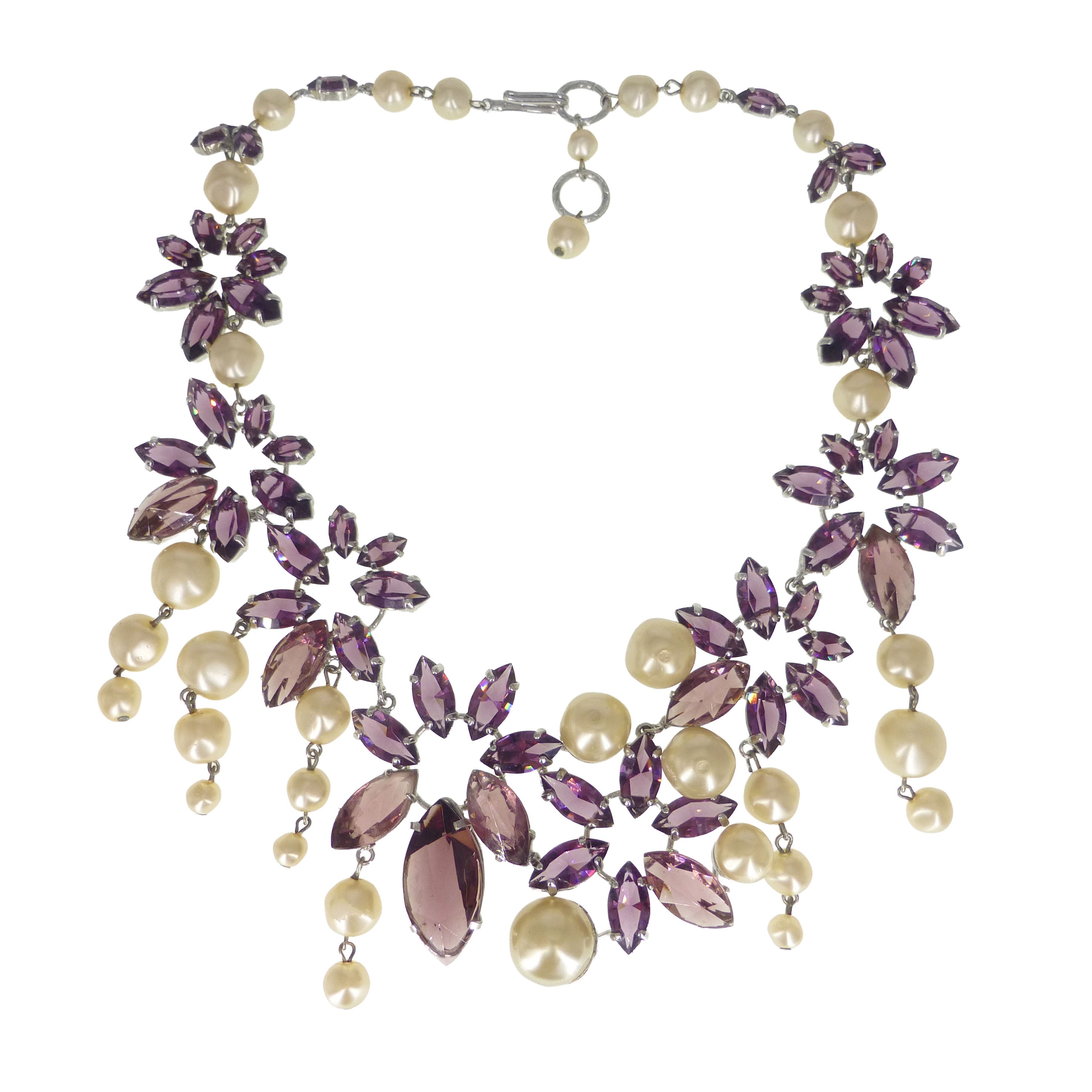 Vintage Christian Dior Purple Floral Glass Pearl Necklace