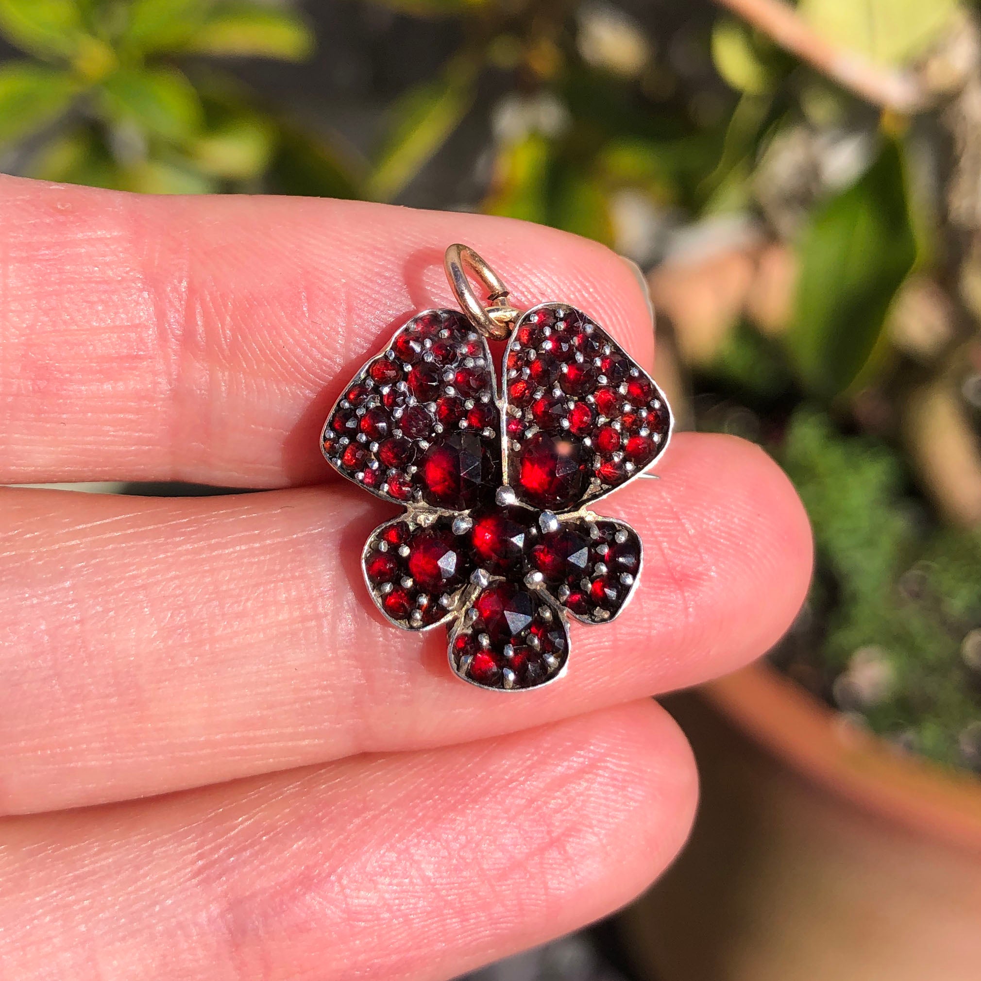 Antique Victorian Garnet Pansy Pendant Brooch