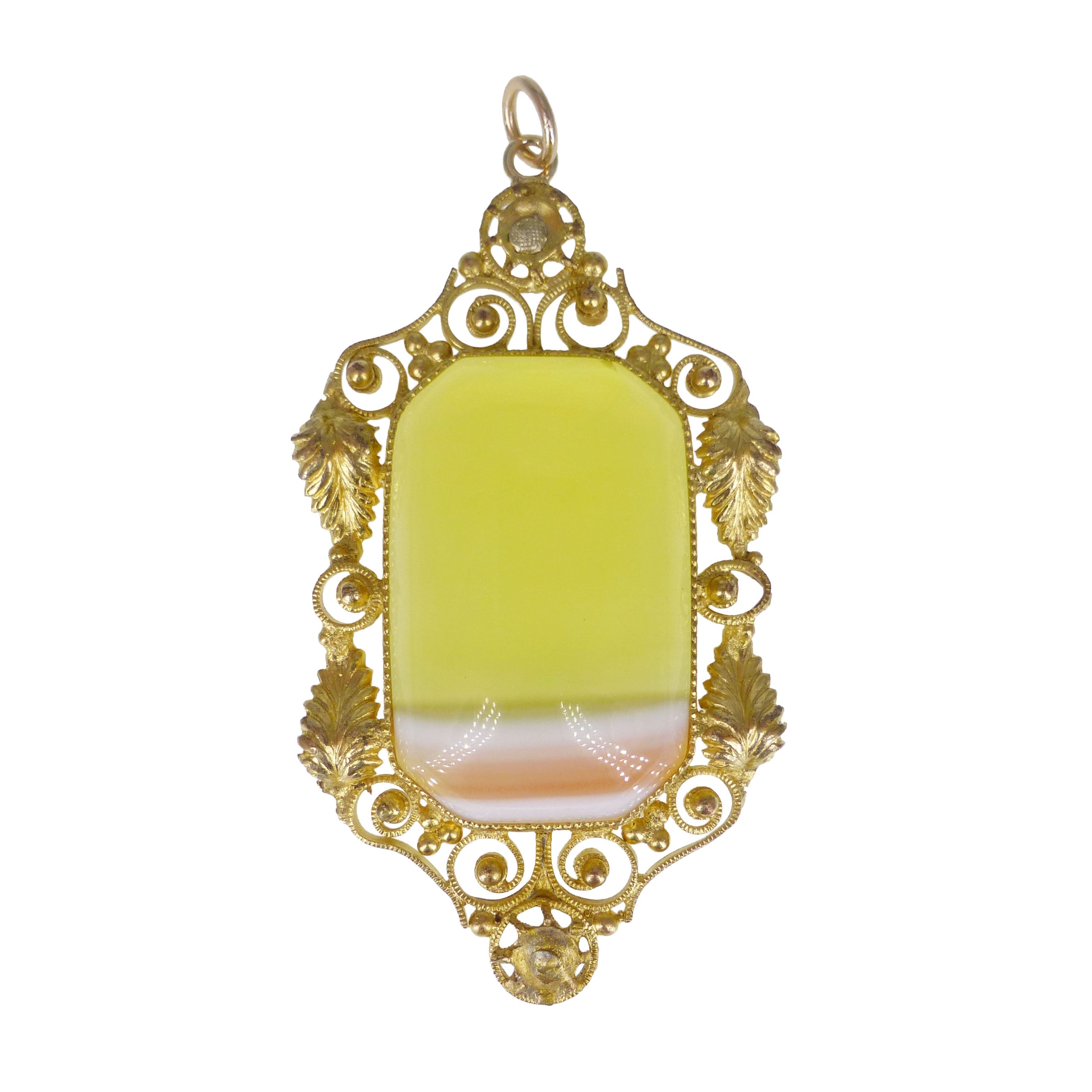 Antique Striped Lemon Agate Pinchbeck Pendant