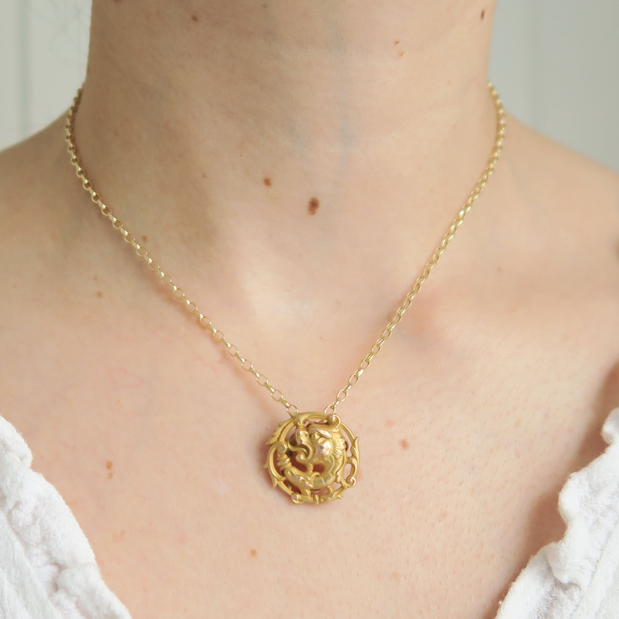 Antique French Art Nouveau Chimera Dragon Slide Pendant
