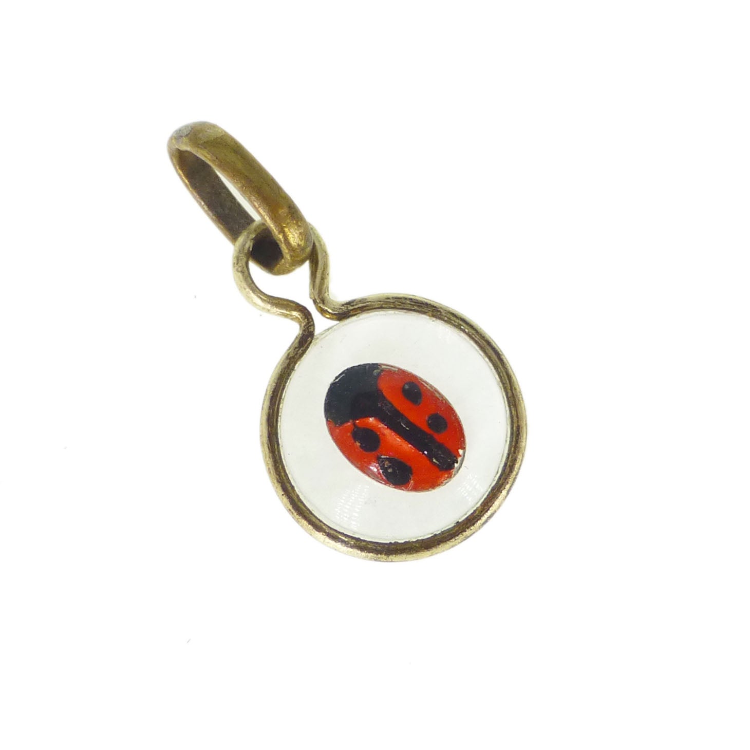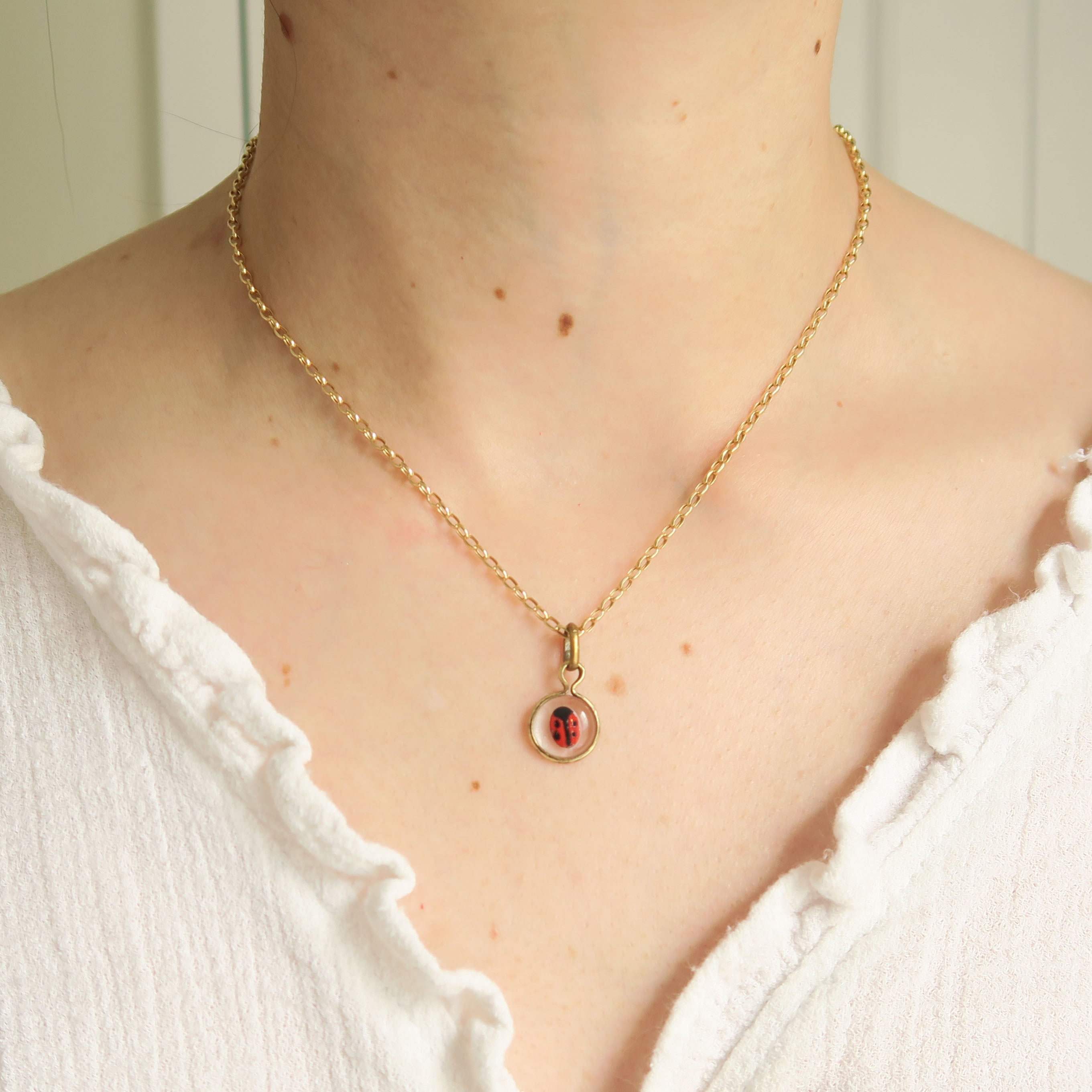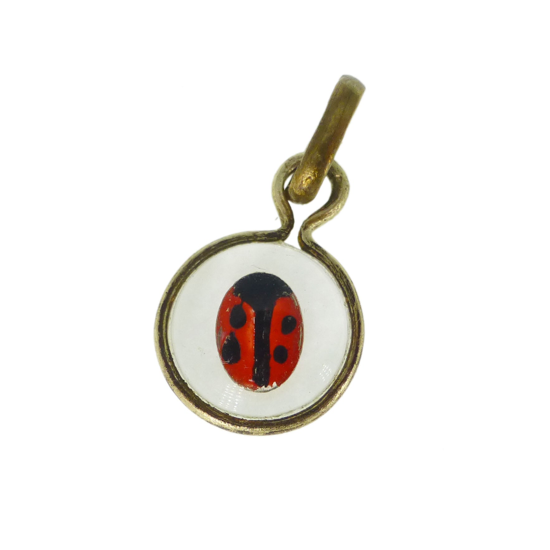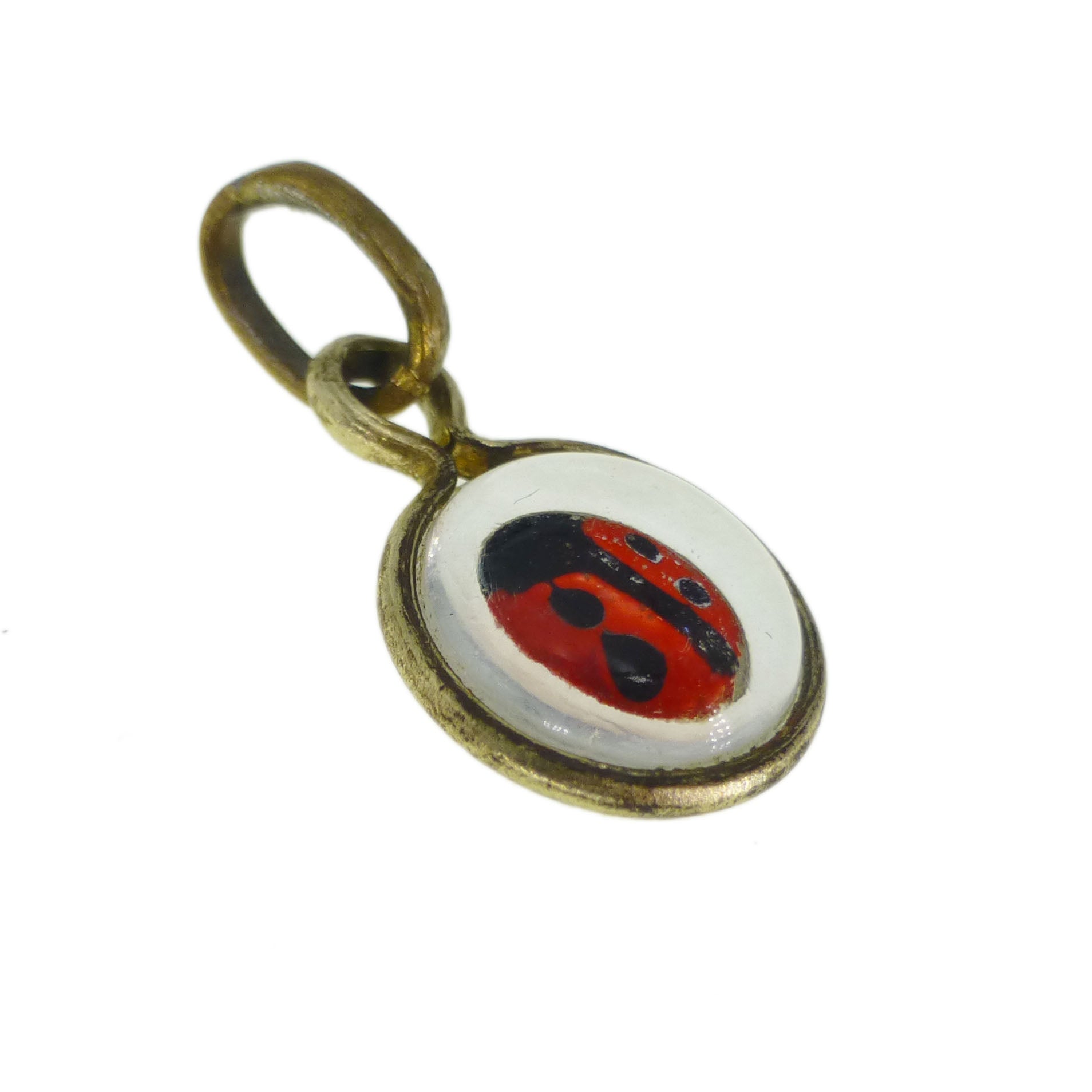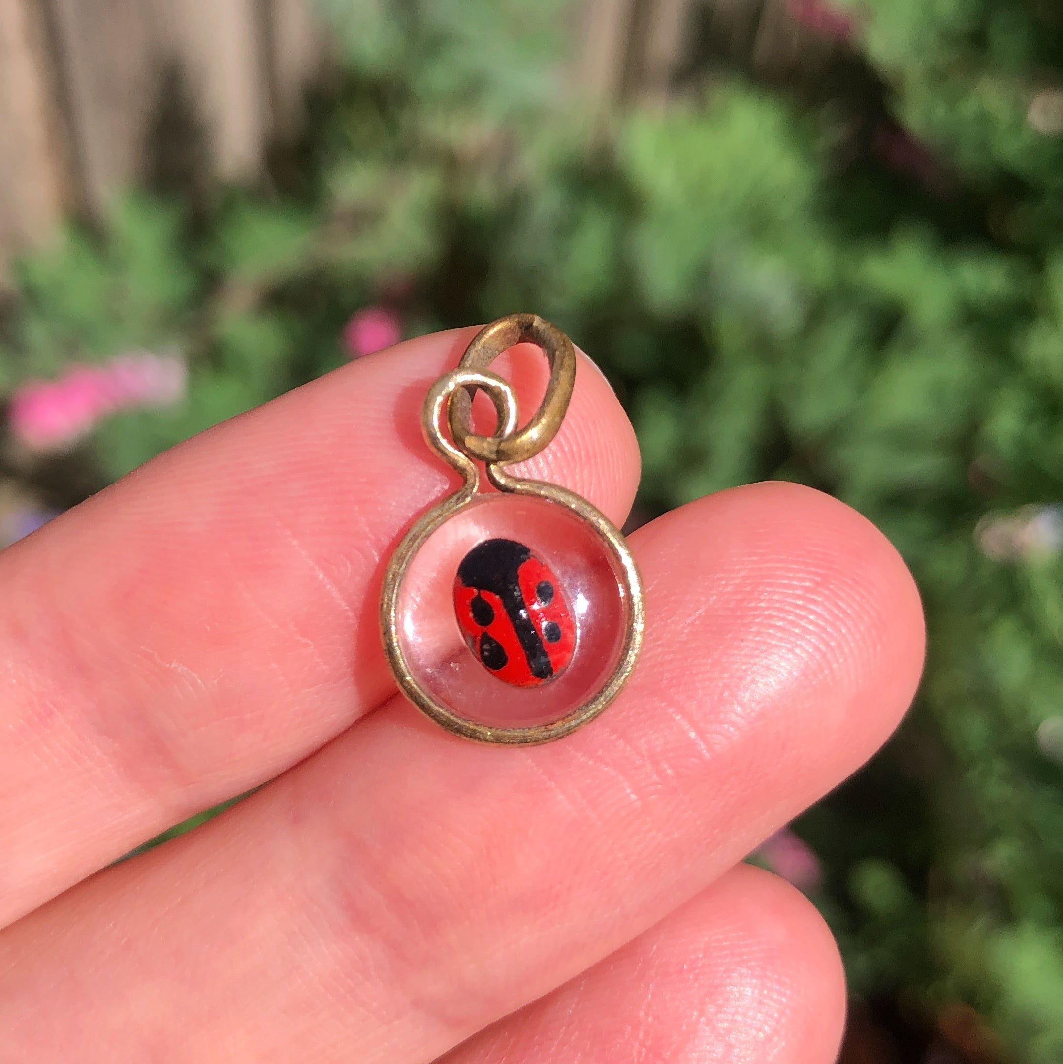 The sweetest little antique charm featuring a reverse carved glass ladybird encased in a rolled gold frame.