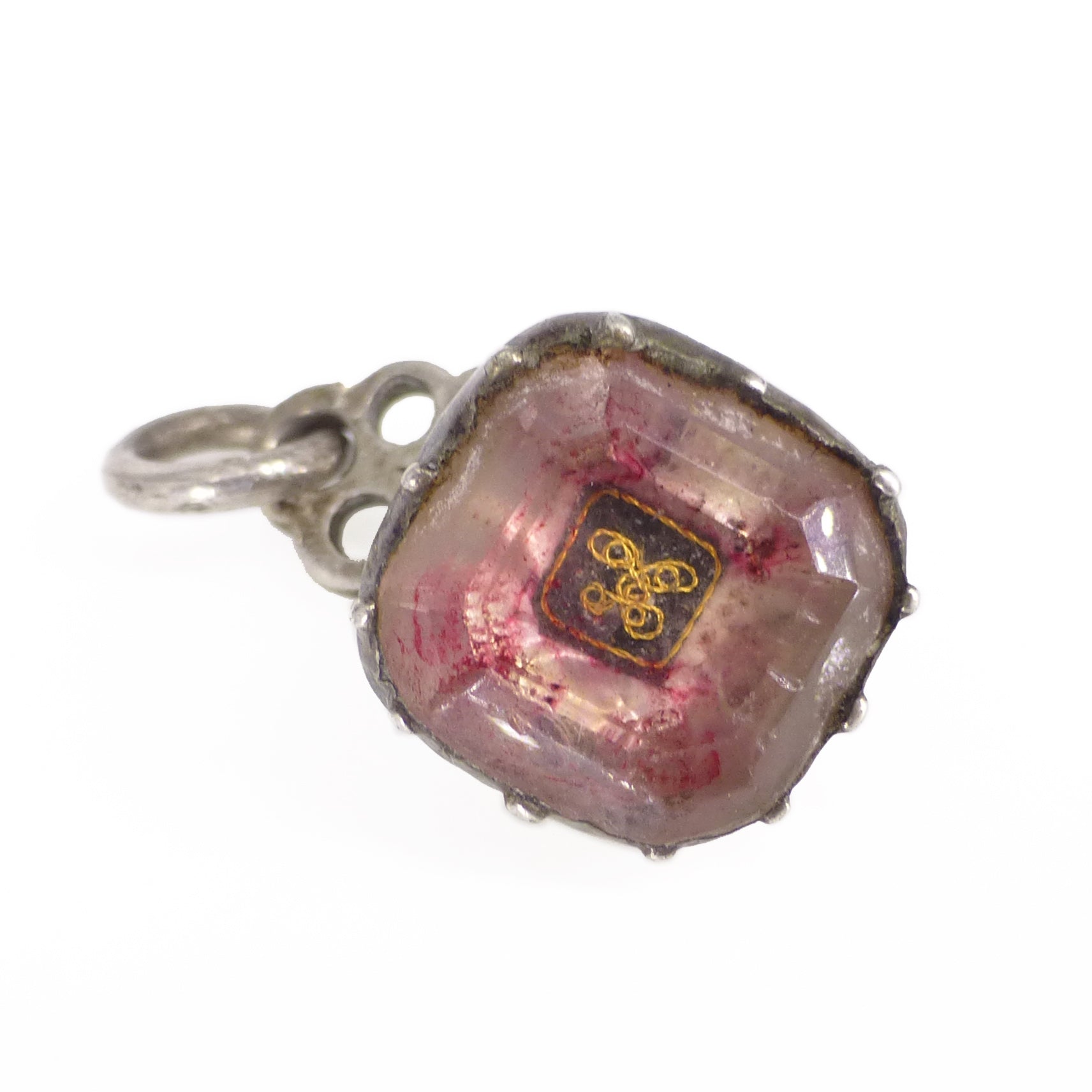 Antique Georgian Silver Stuart Gold Wire Cipher Rock Crystal Fob Charm