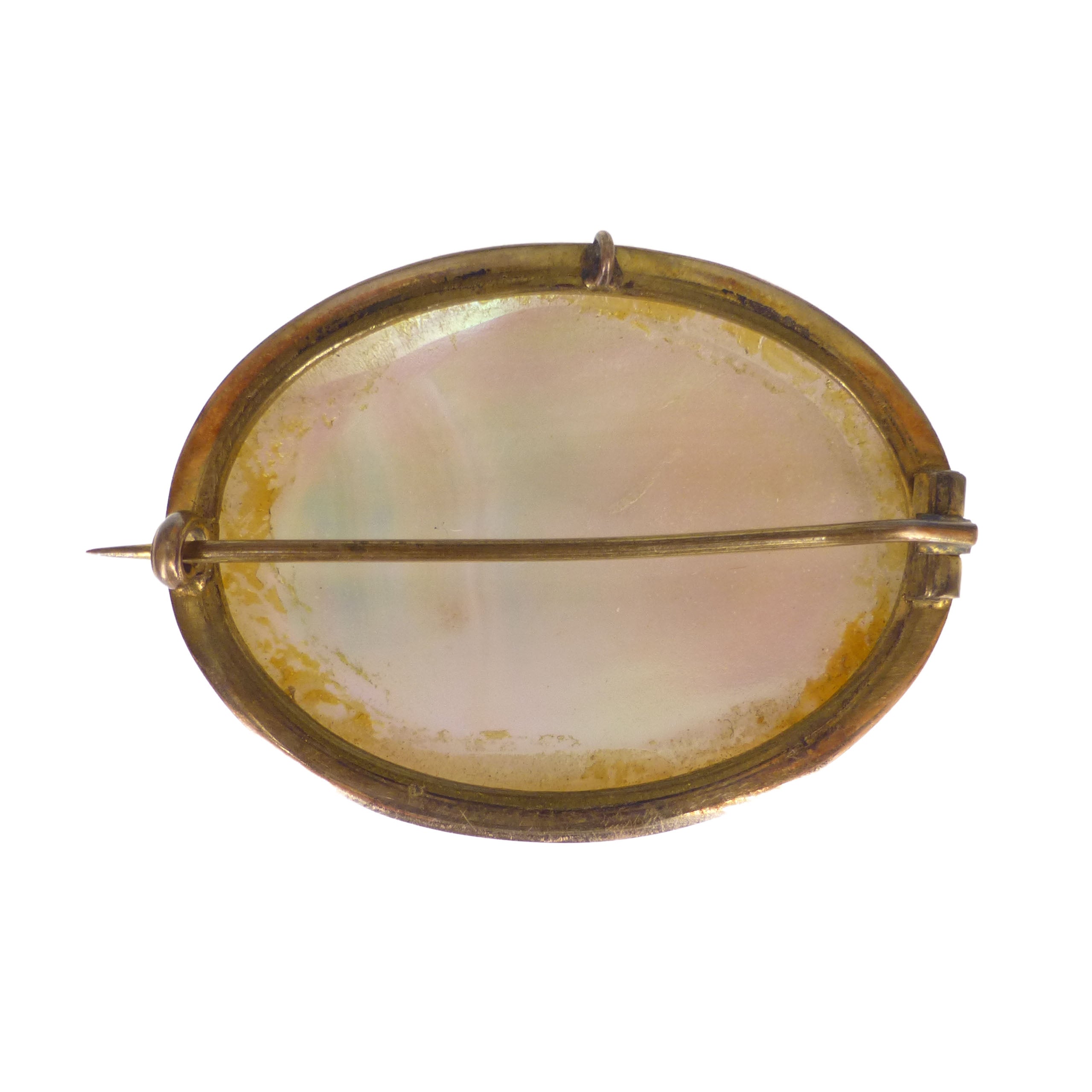 The brooch is not hallmarked but has been tested. There is a thin inside ring attached to the main gold frame of the brooch which tests as base metal.