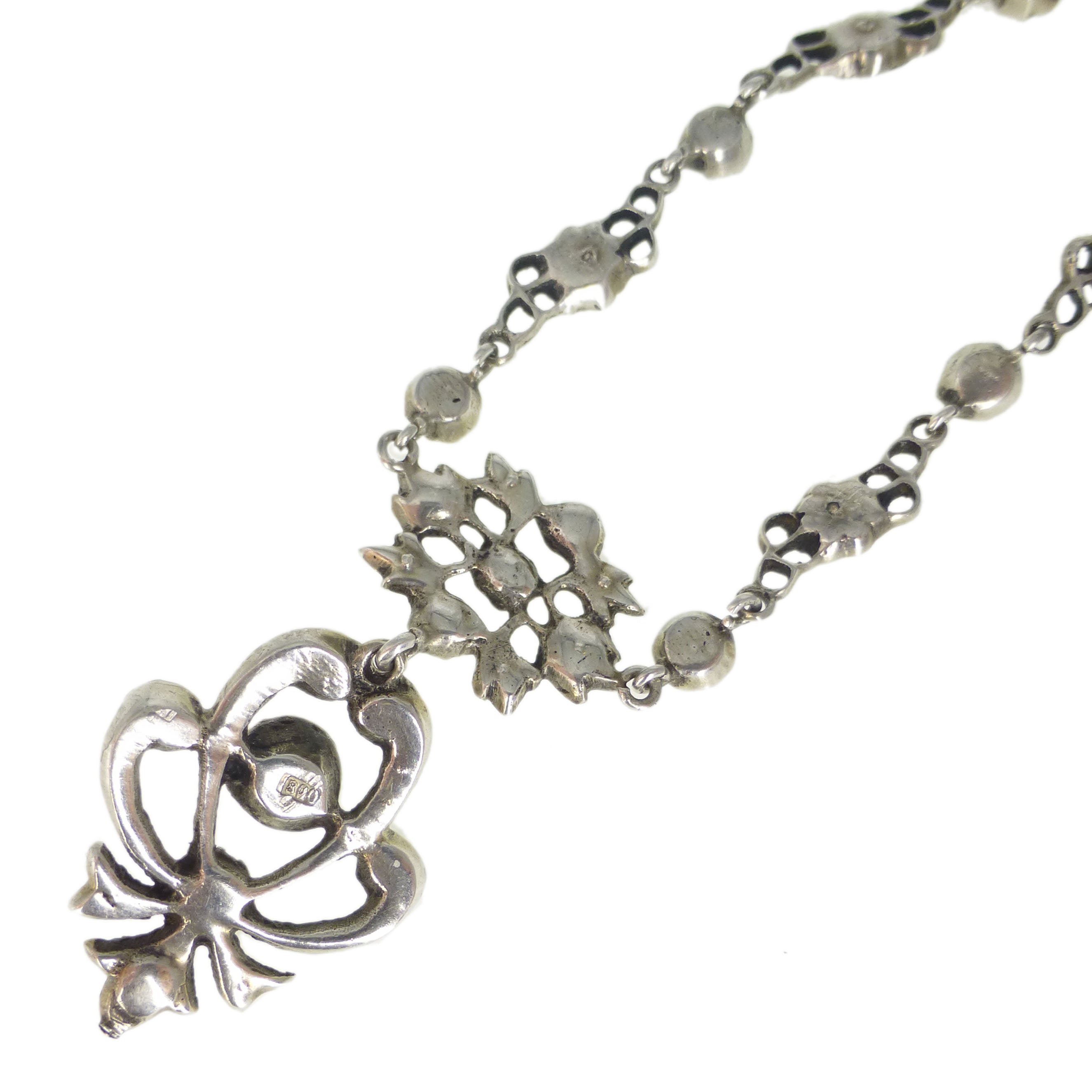 The necklace features a secure bolt ring clasp and is marked with the silver grade '800'. There is no makers mark but it is most likely French in origin.