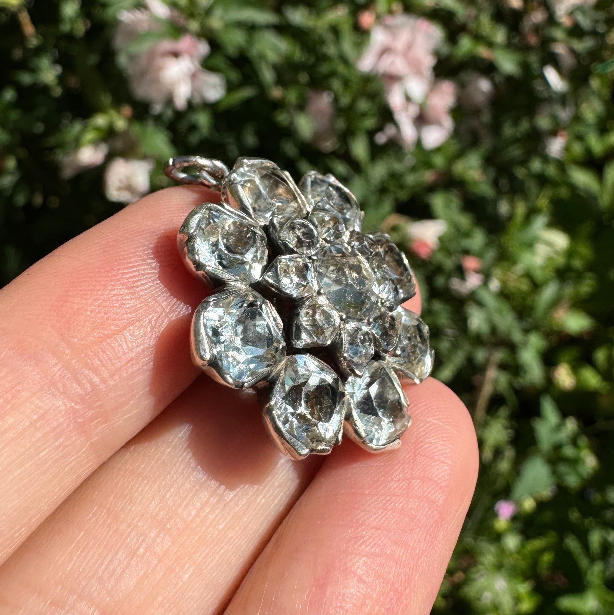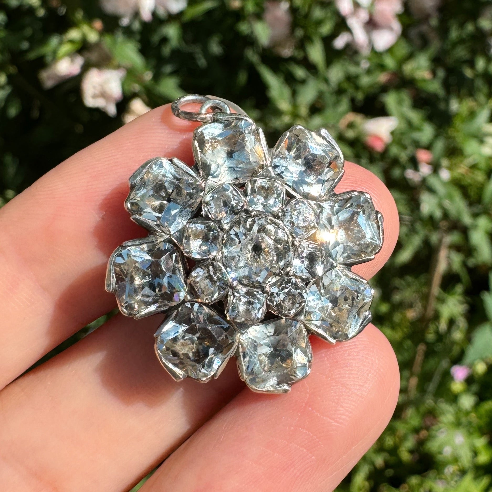 The paste stones are of an exceptional quality and I particularly love the pinched silver frames around the outer petals which I have not seen before.
