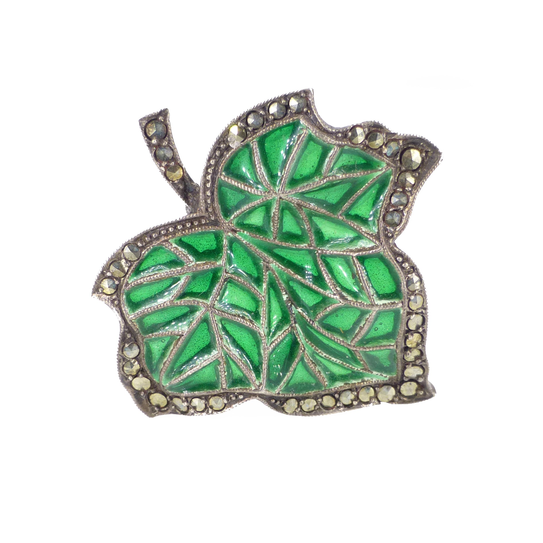 Antique German Silver Plique A Jour Green Glass Ivy Hat Pin