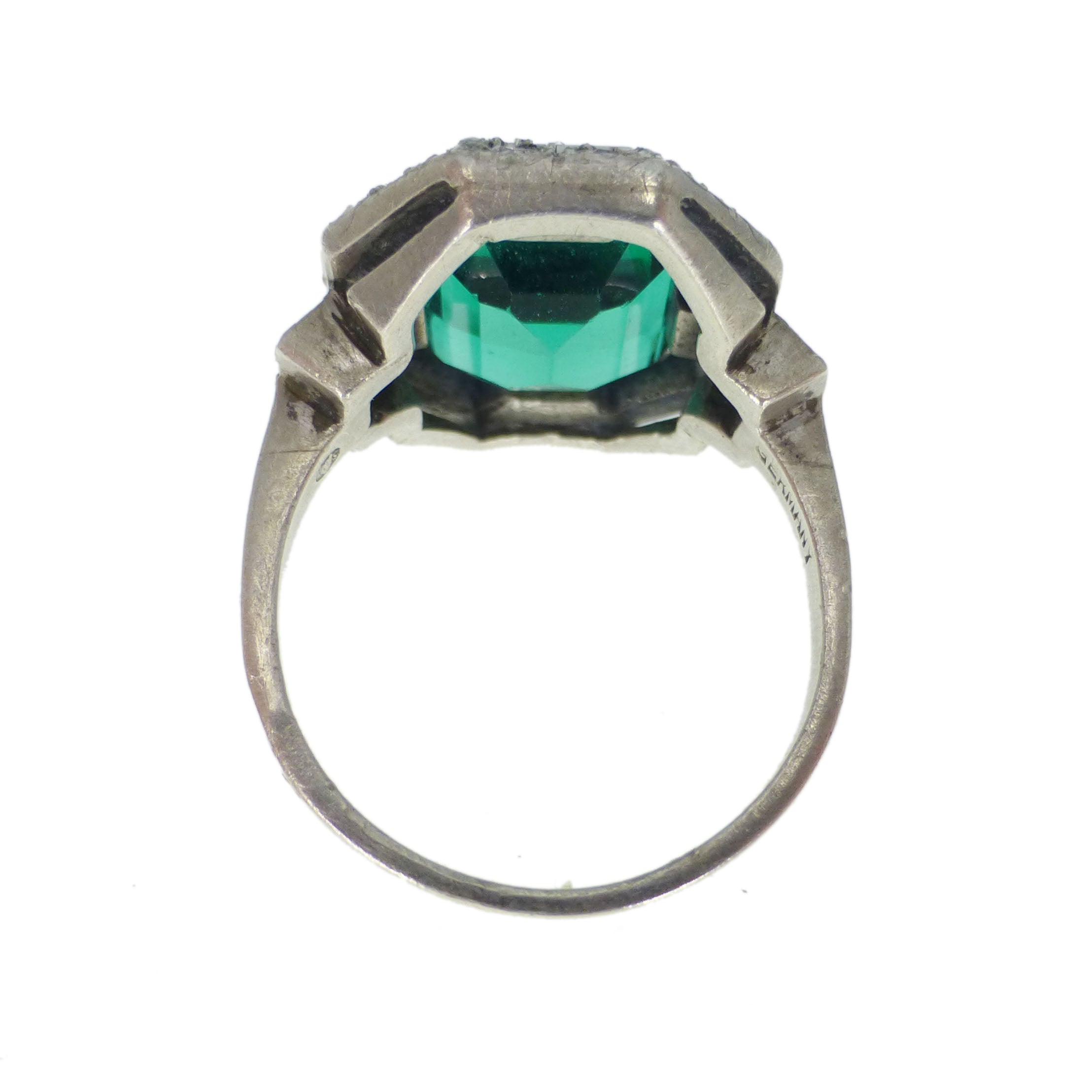 Antique Art Deco German Silver Green Paste Cocktail Ring