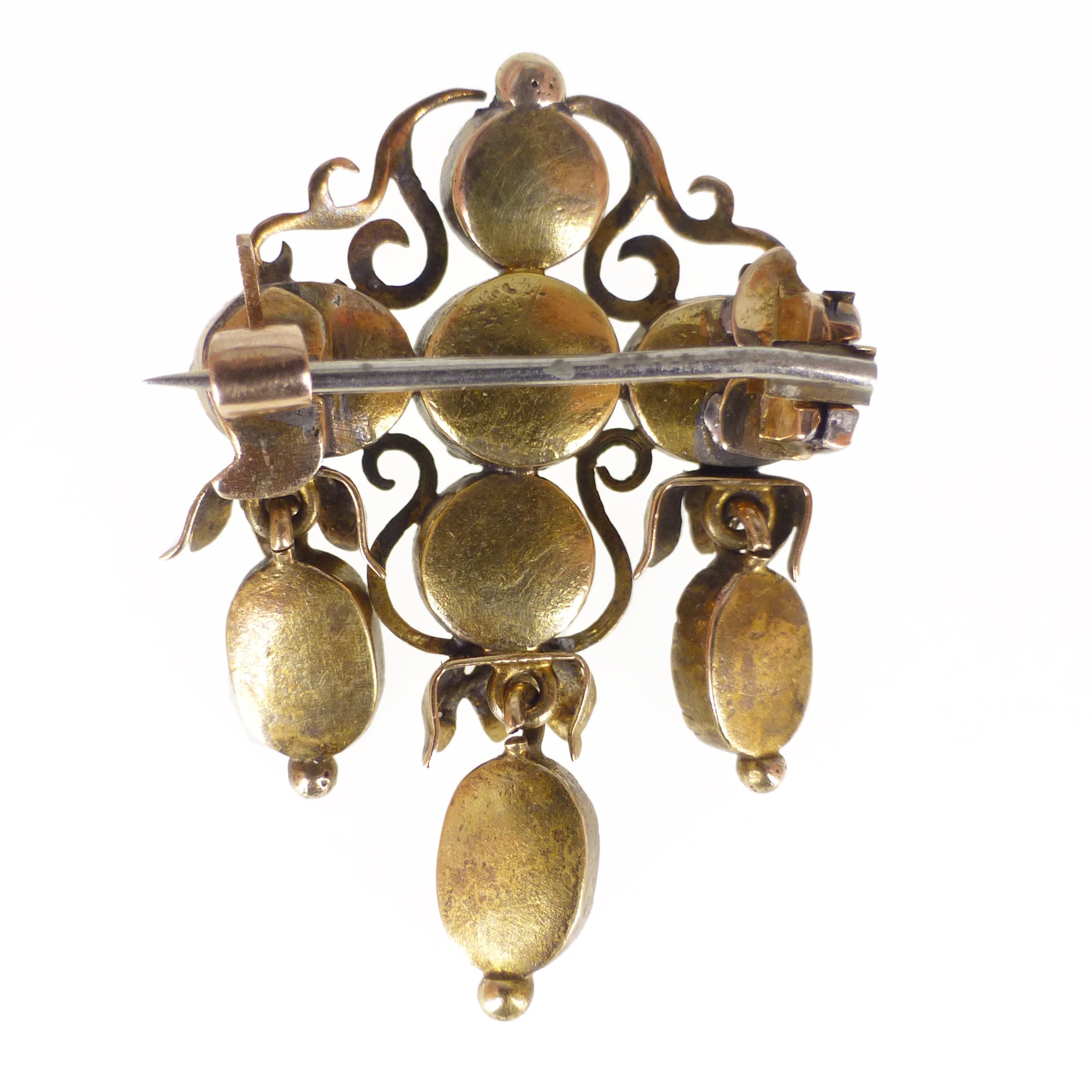 There are some light flaws to two of the smaller moonstones, the flaws are within the stone rather than surface wear. One top gold curve of the pendant is also detached from the central moonstone which can be seen the in the pictures (on the right hand side). The brooch remains in lovely antique condition overall.