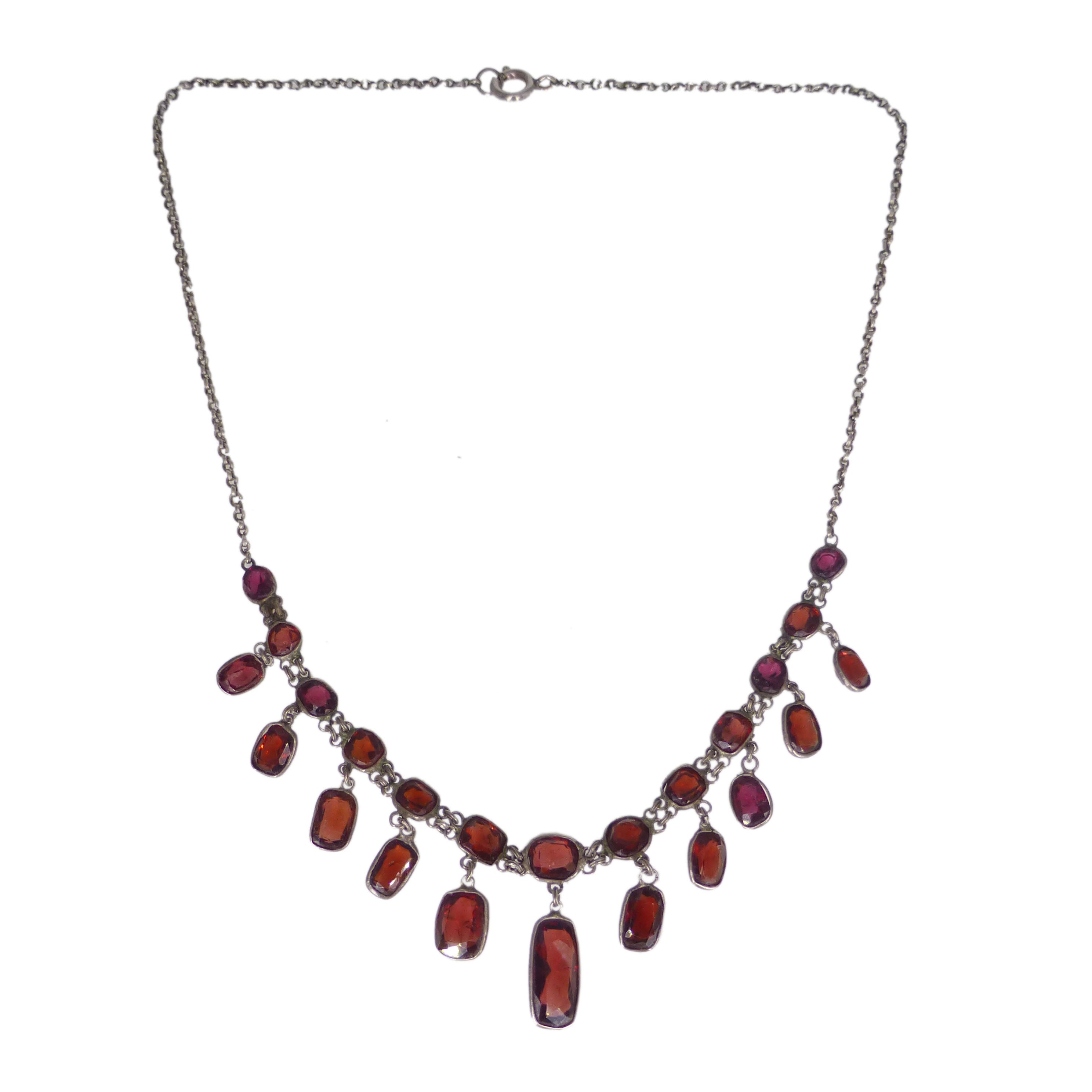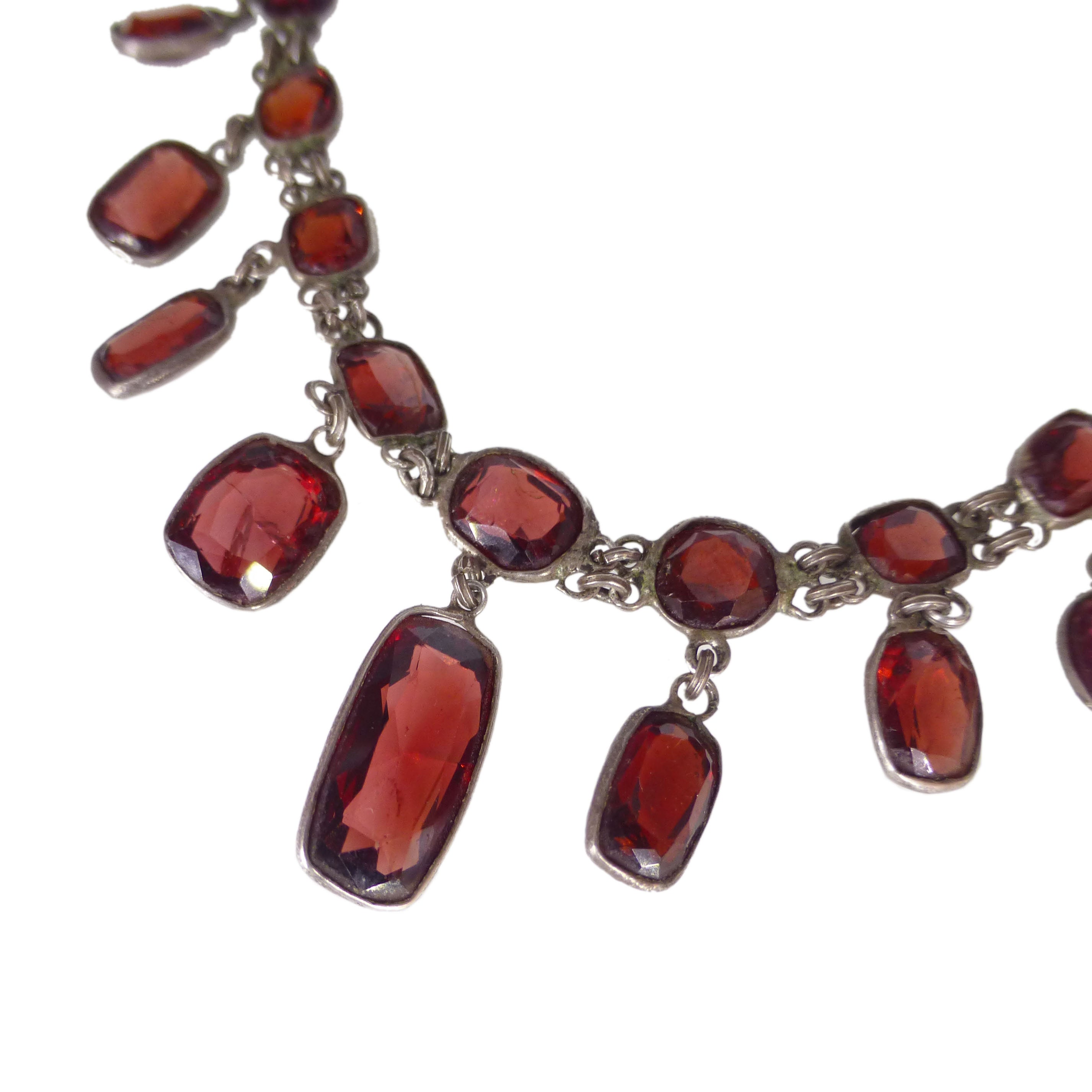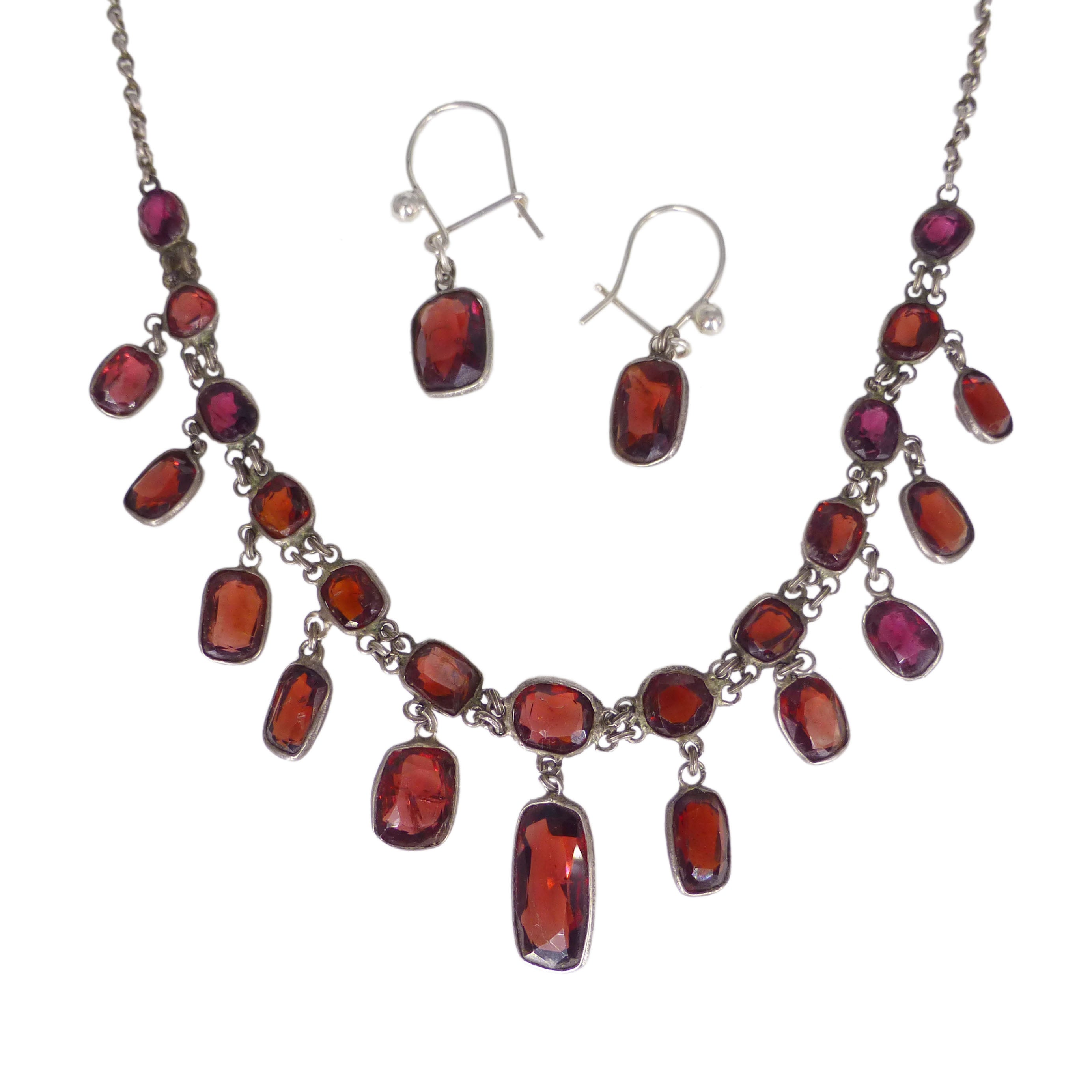 Antique Arts & Crafts Silver Garnet Festoon Necklace & Earrings Set