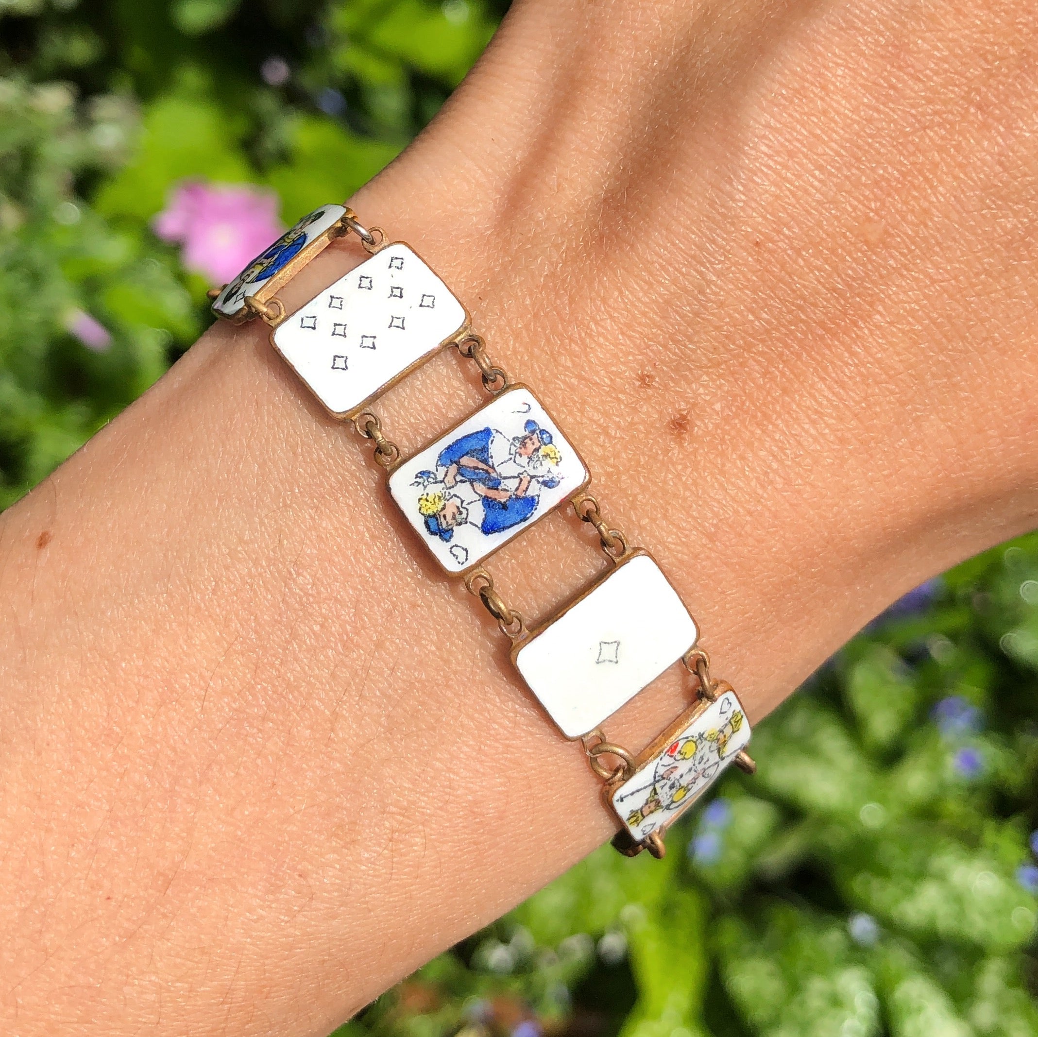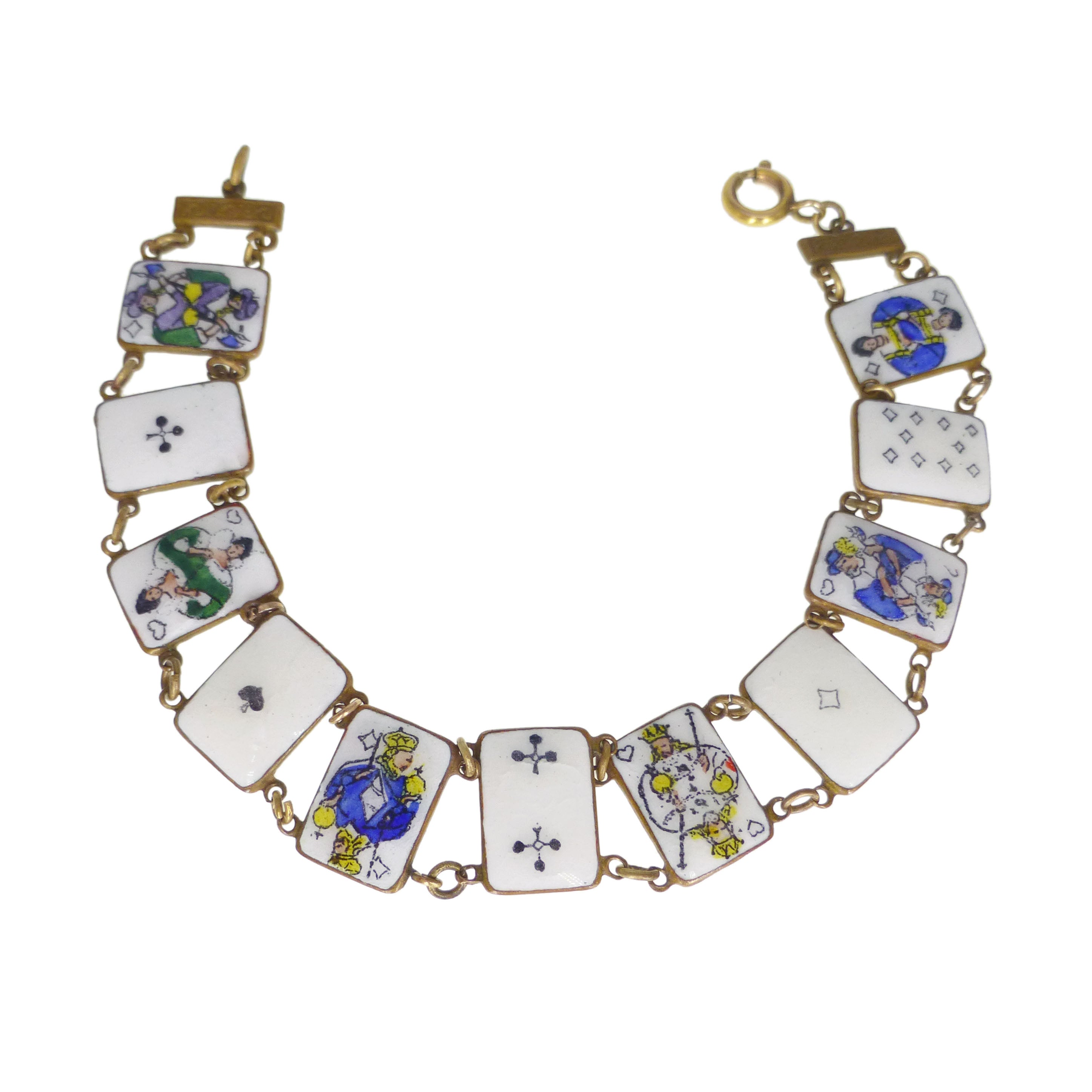 Antique Edwardian Czechoslovakian Enamel Playing Card Bracelet