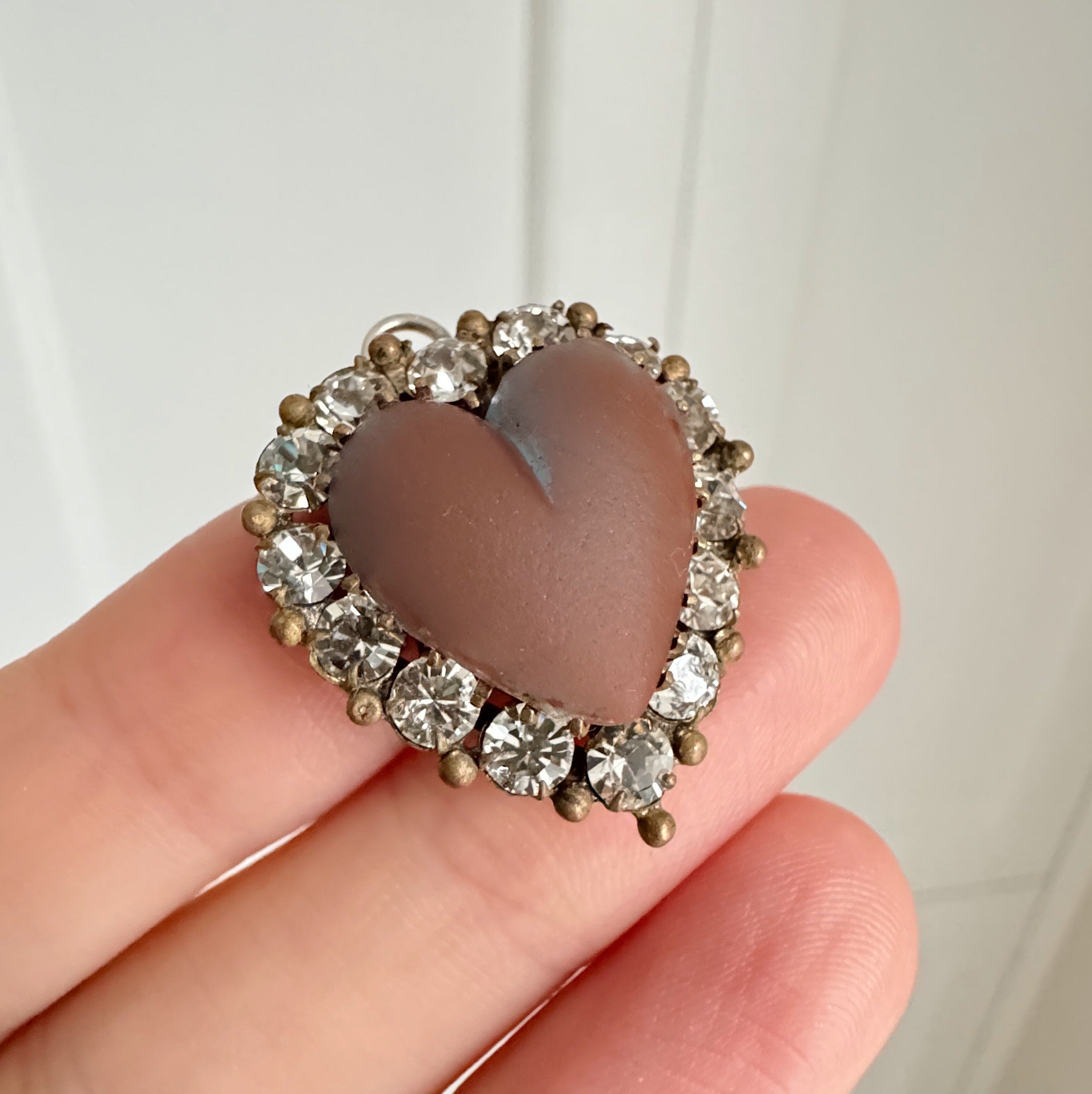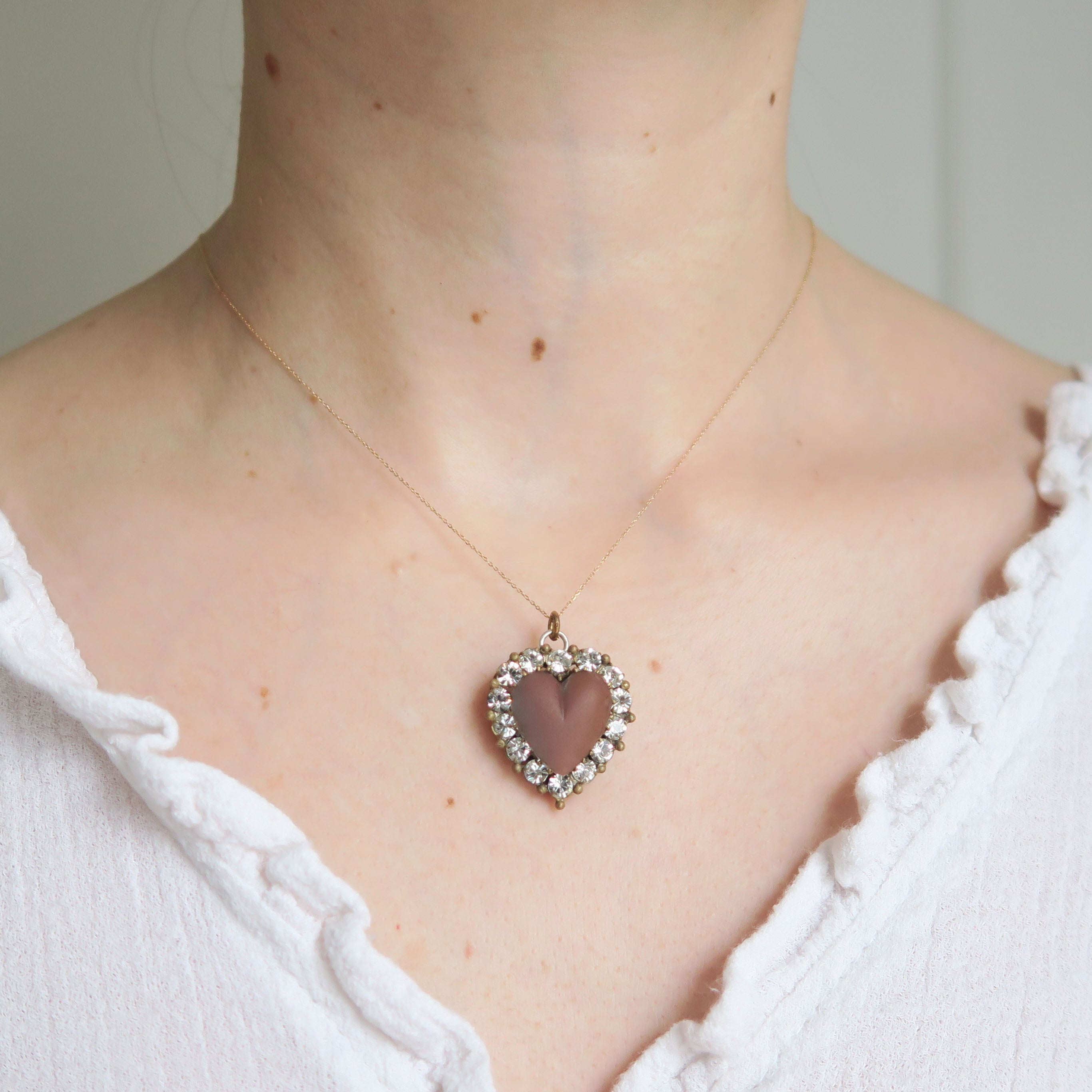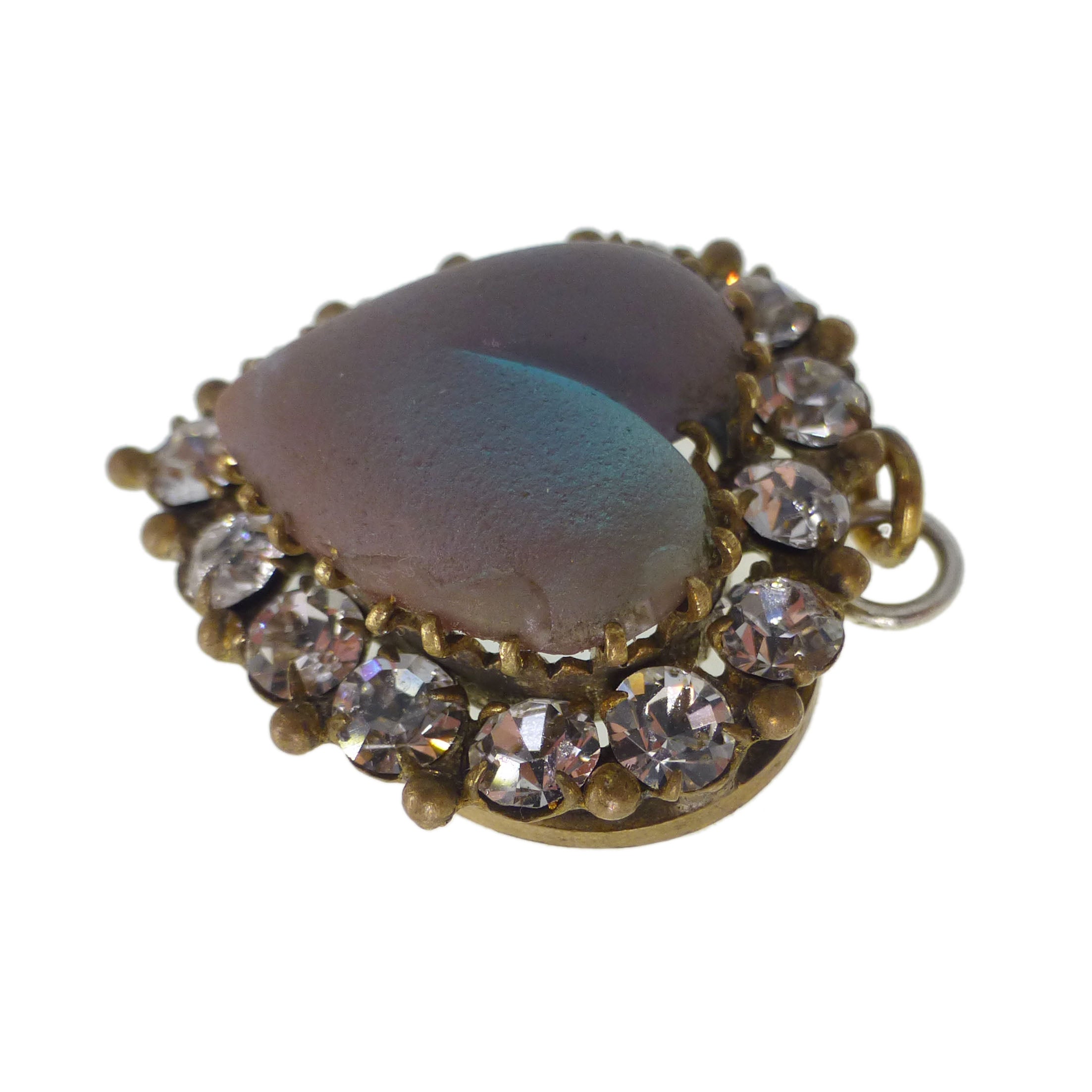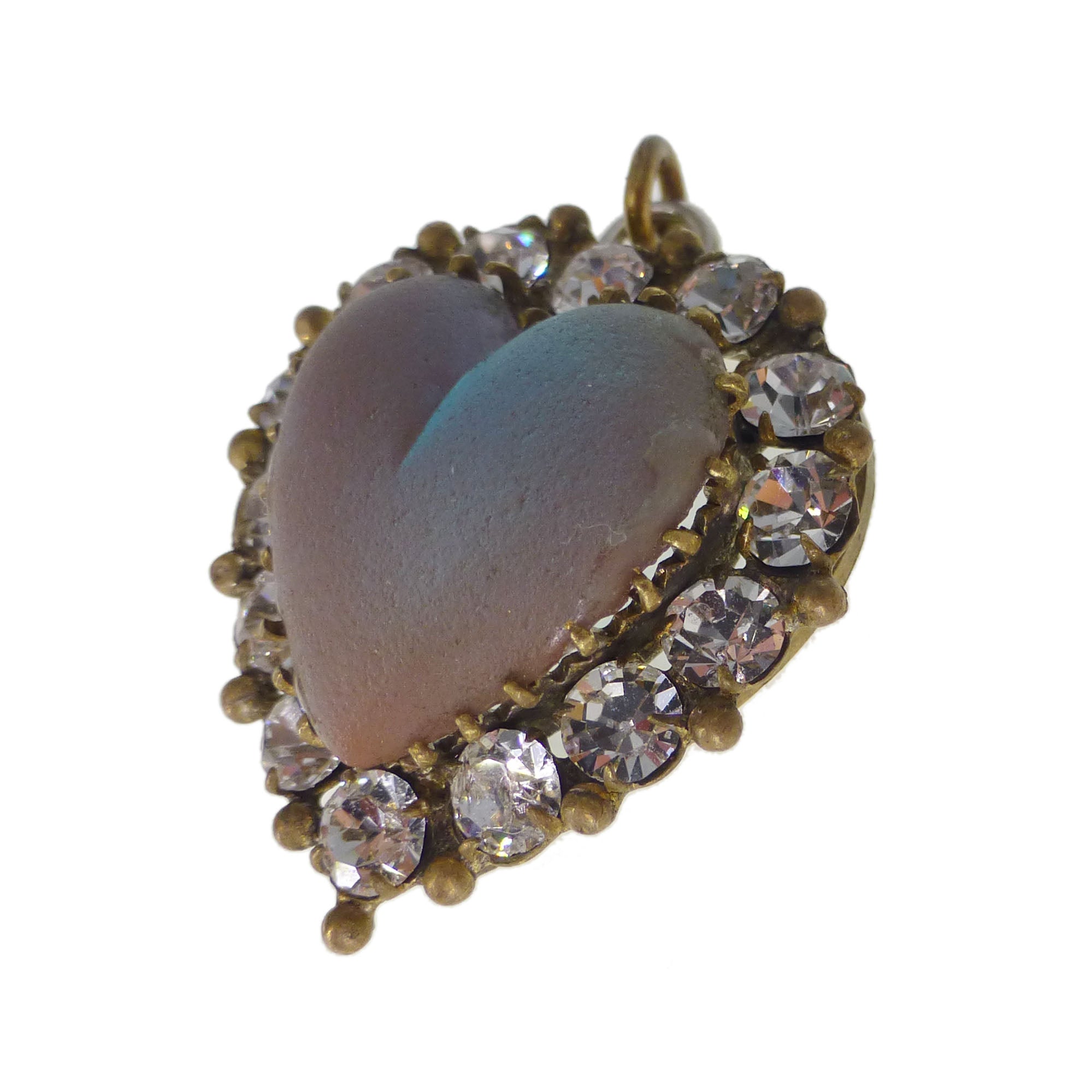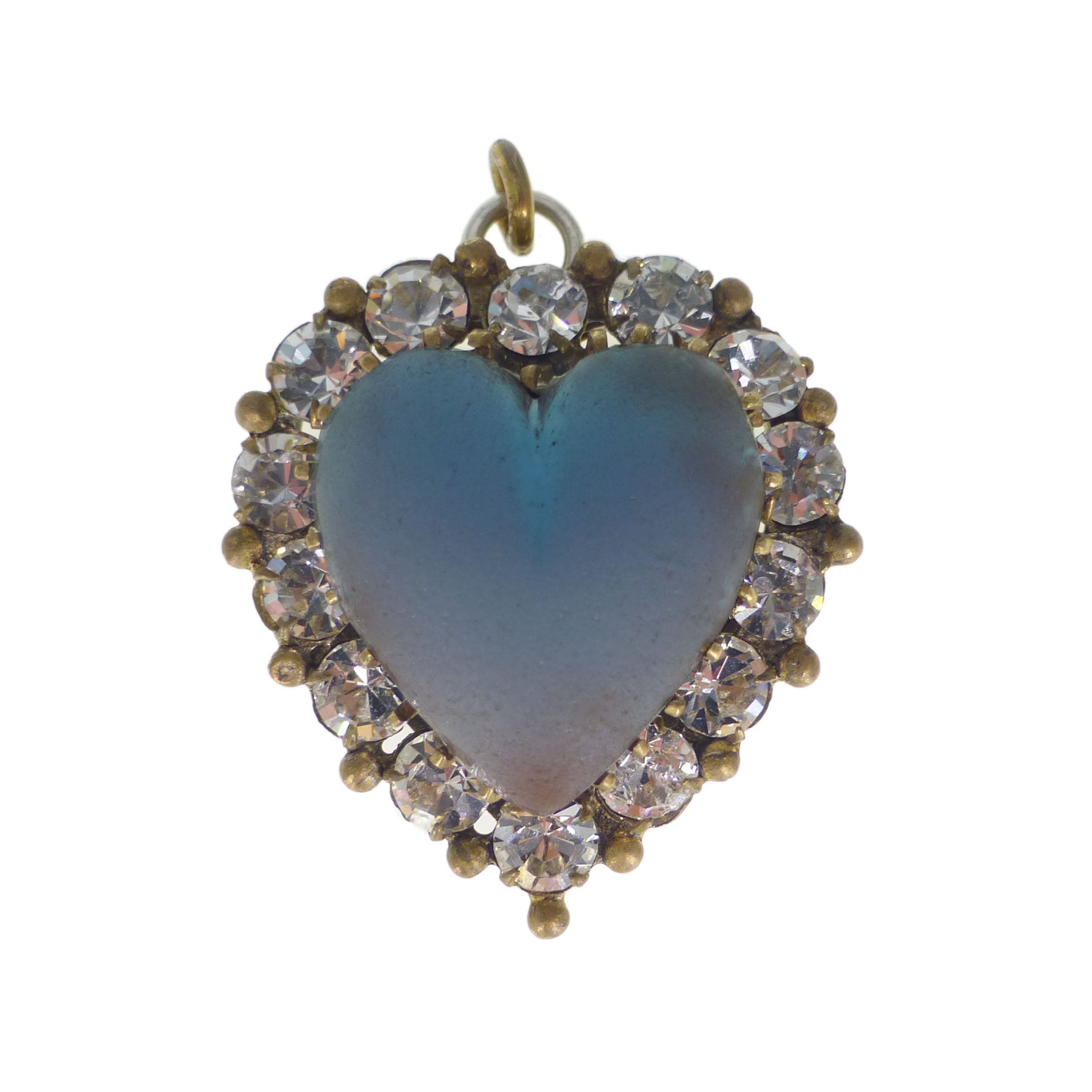 The pendant features a heart shaped matte saphiret glass stone in lovely rich blue and brown tones. The stone is framed by sparkling paste stones which accentuate the hearts colours perfectly.