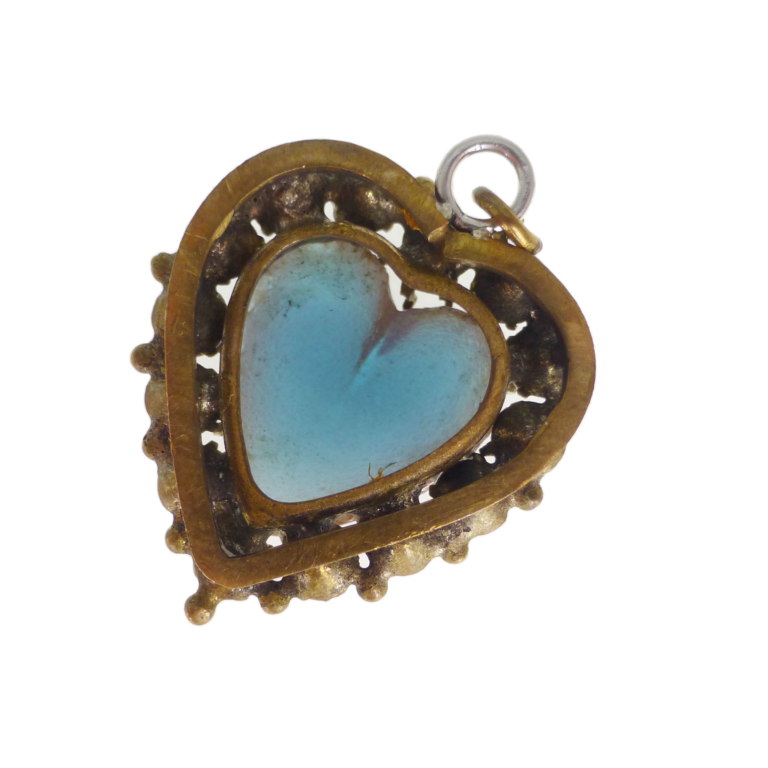 A beautiful antique Edwardian saphiret glass heart that has been converted into a pendant from a broken brooch.