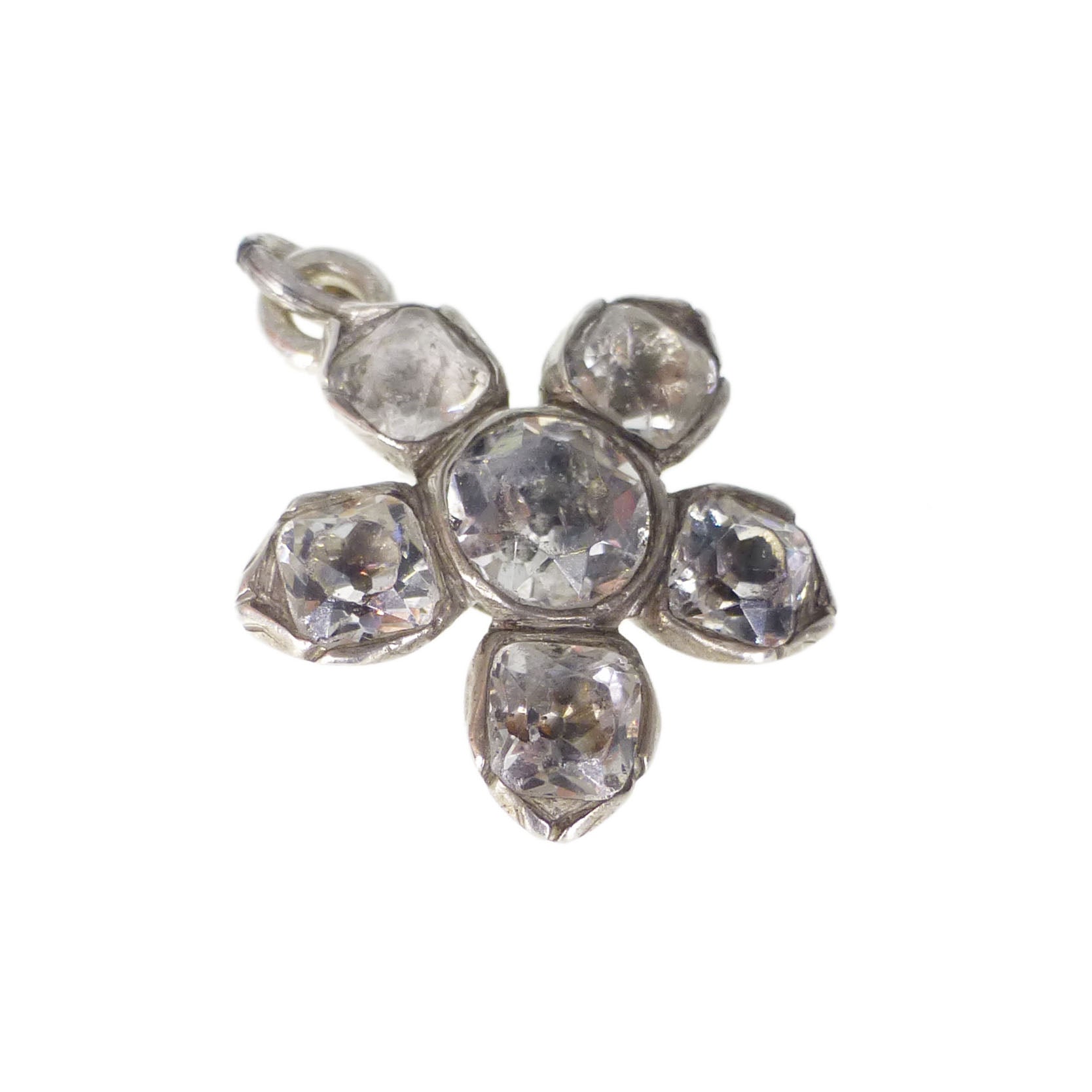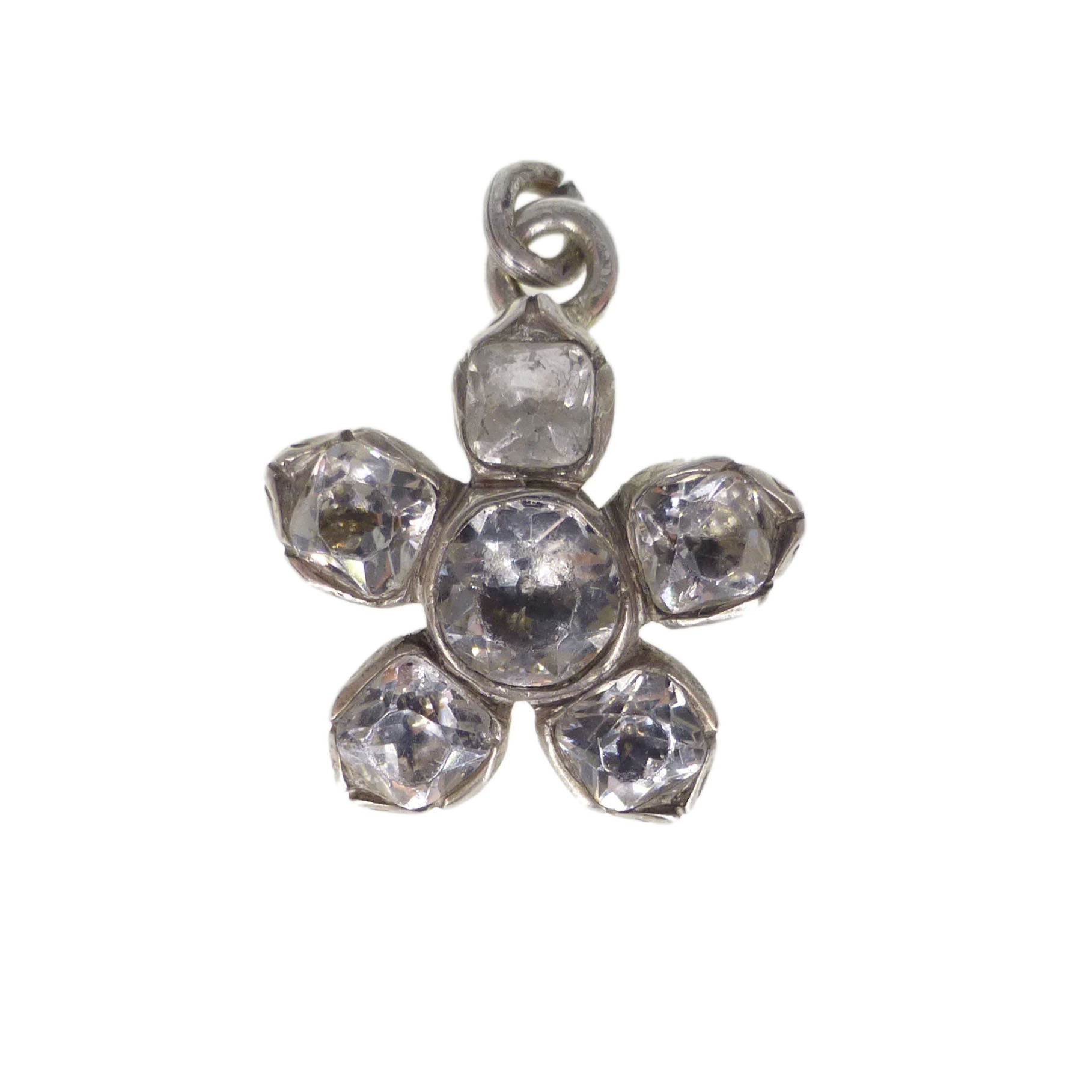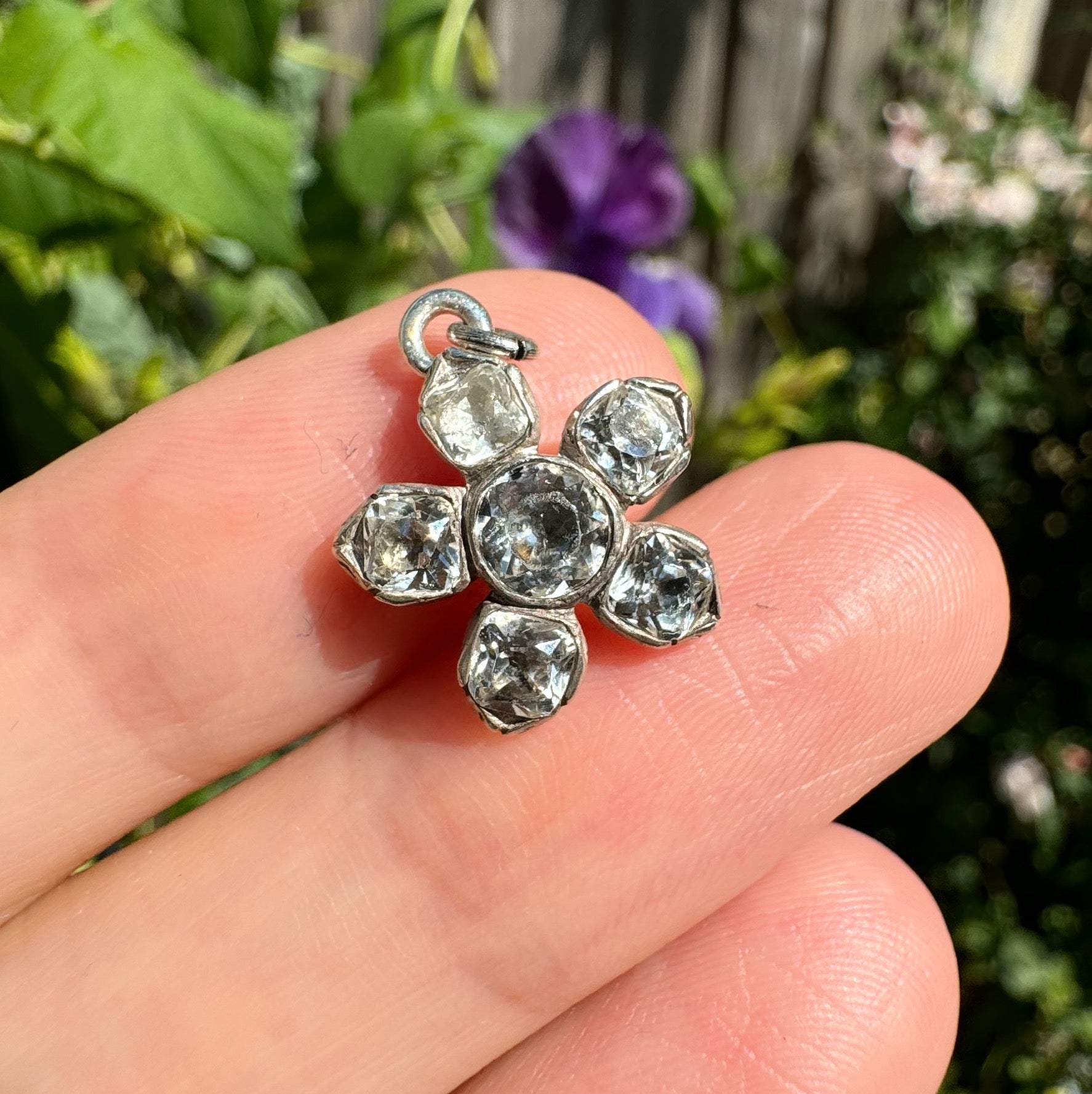 Antique Georgian Silver Black Dot Paste Flower Charm