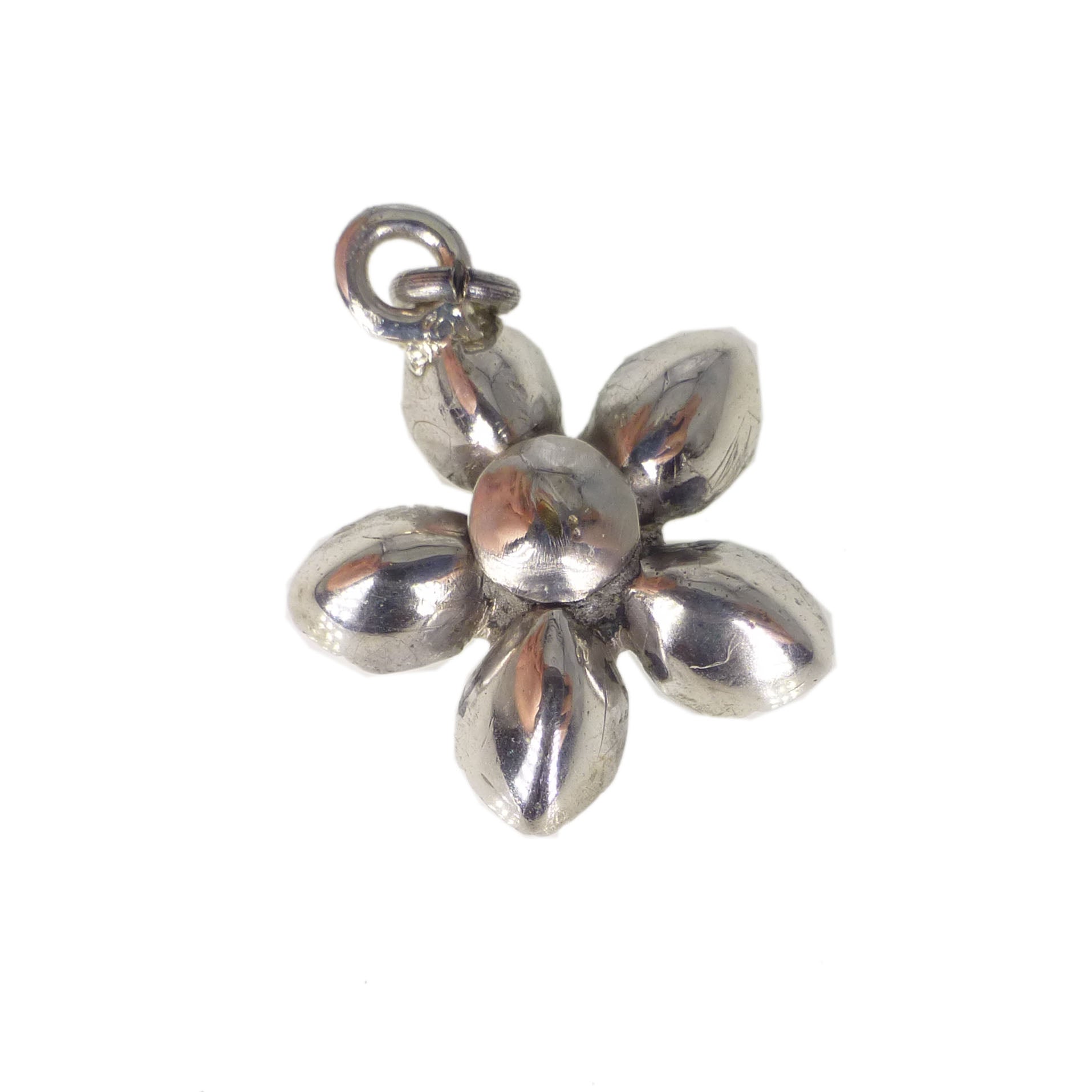 A sweet little antique silver flower charm that has been converted from a stickpin.