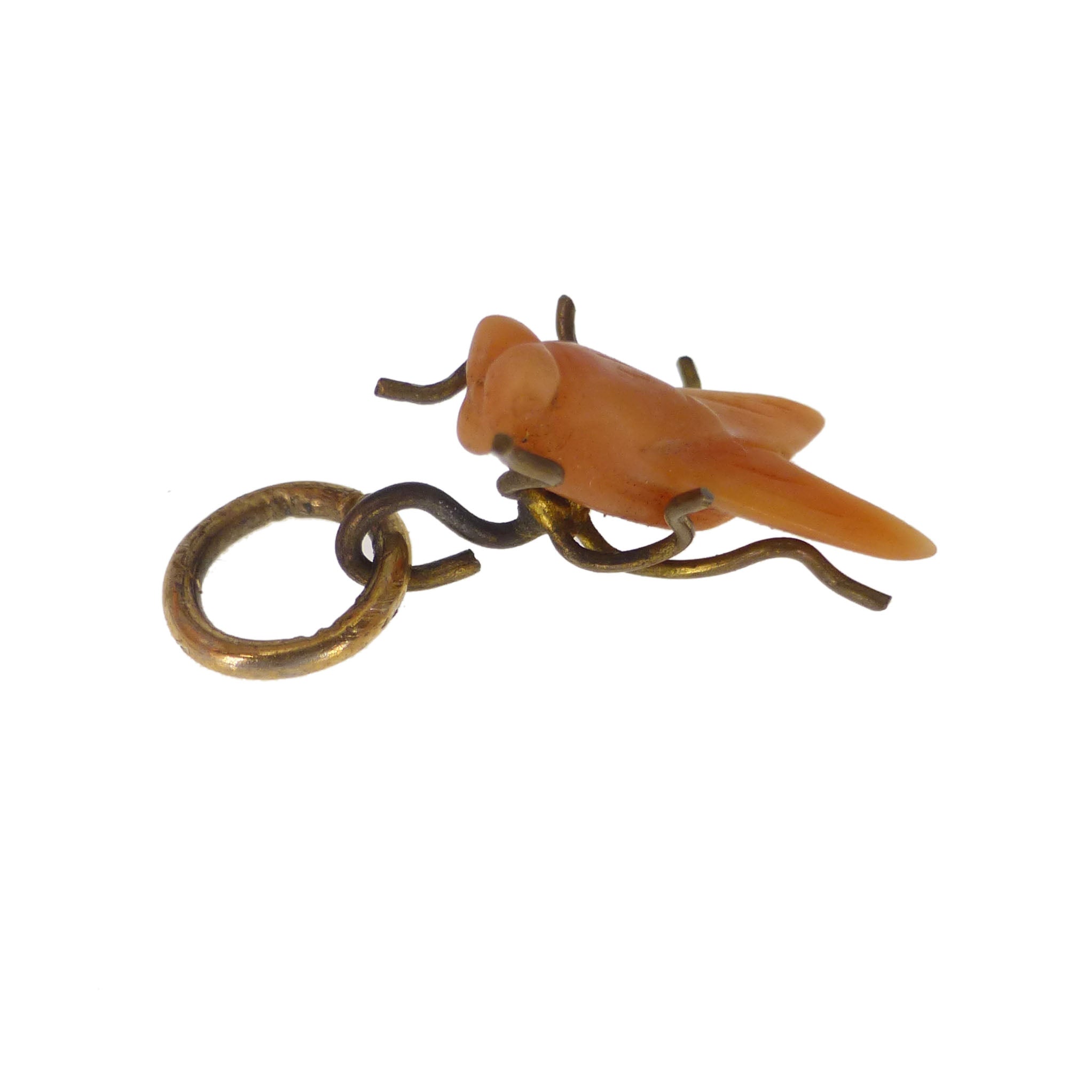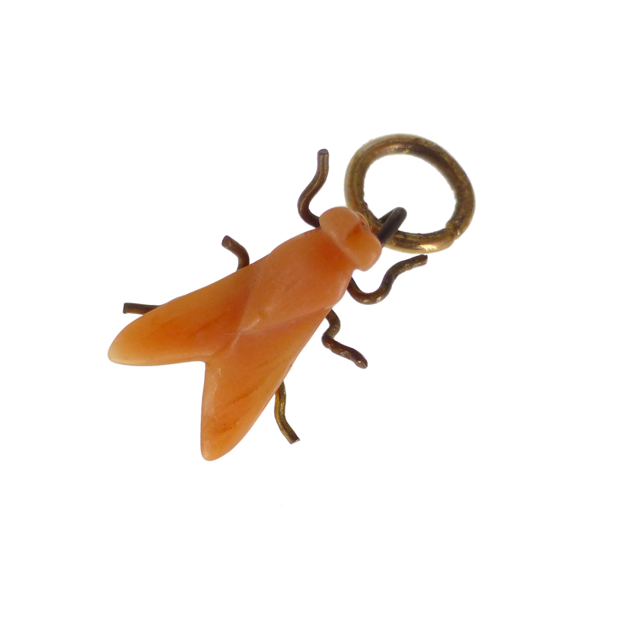 A sweet little antique carved coral insect charm in the form of a fly. The coral body of the fly is beautifully carved with tiny metal legs that sit underneath the body.