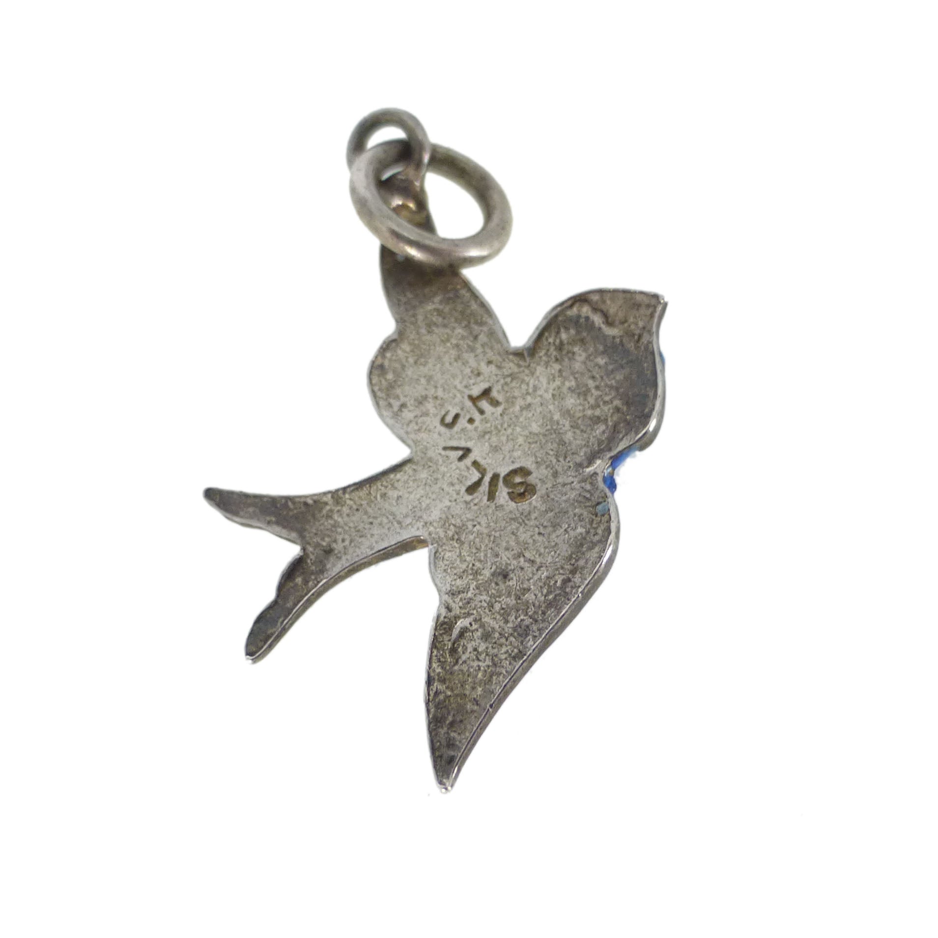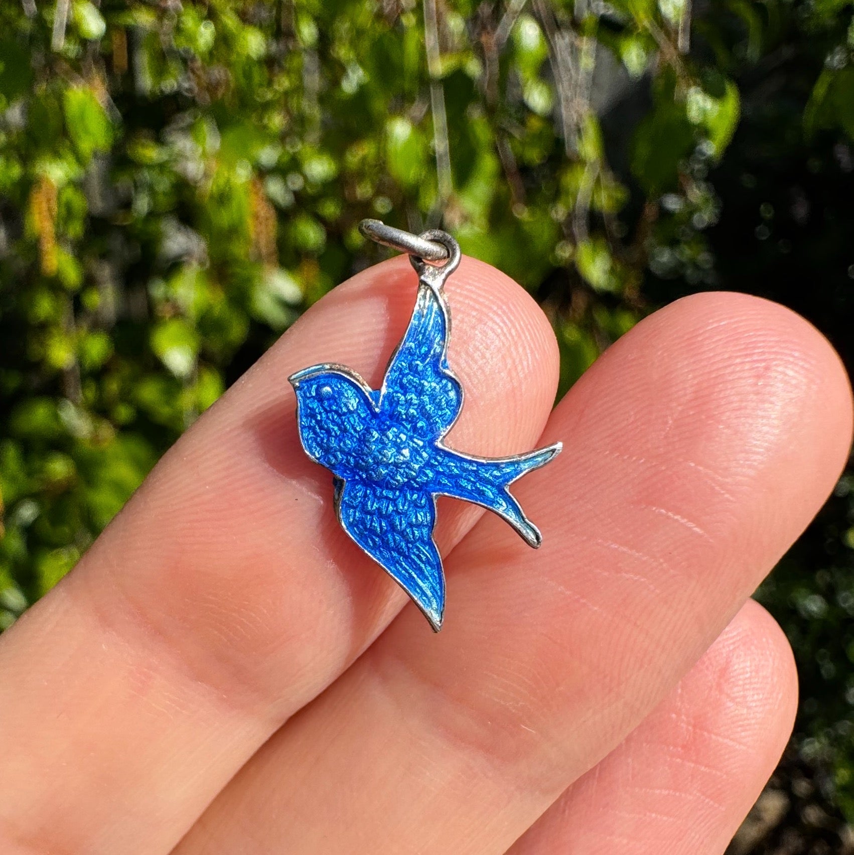 A lovely little vintage silver charm in the form of a swallow, beautifully enamelled in a vibrant blue.