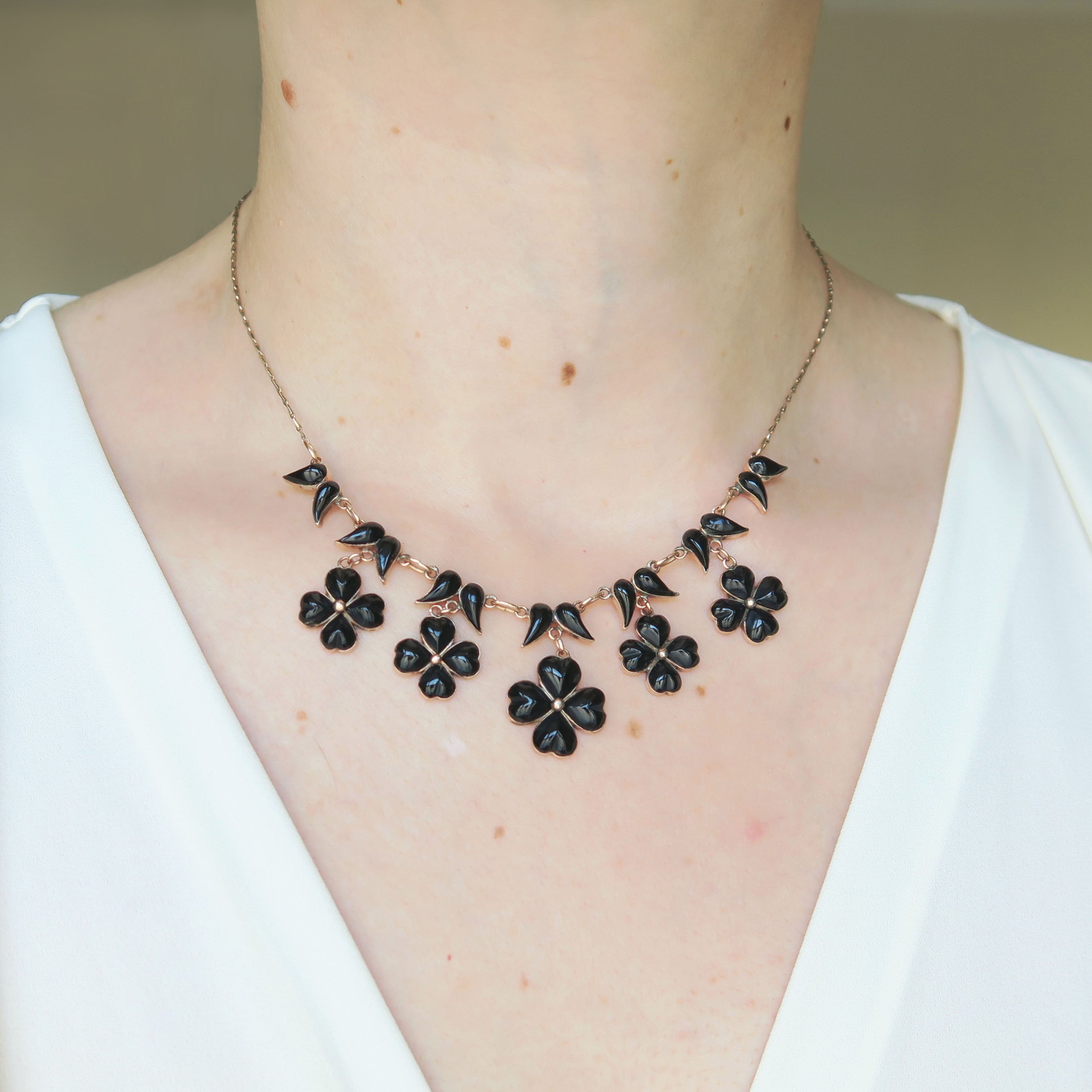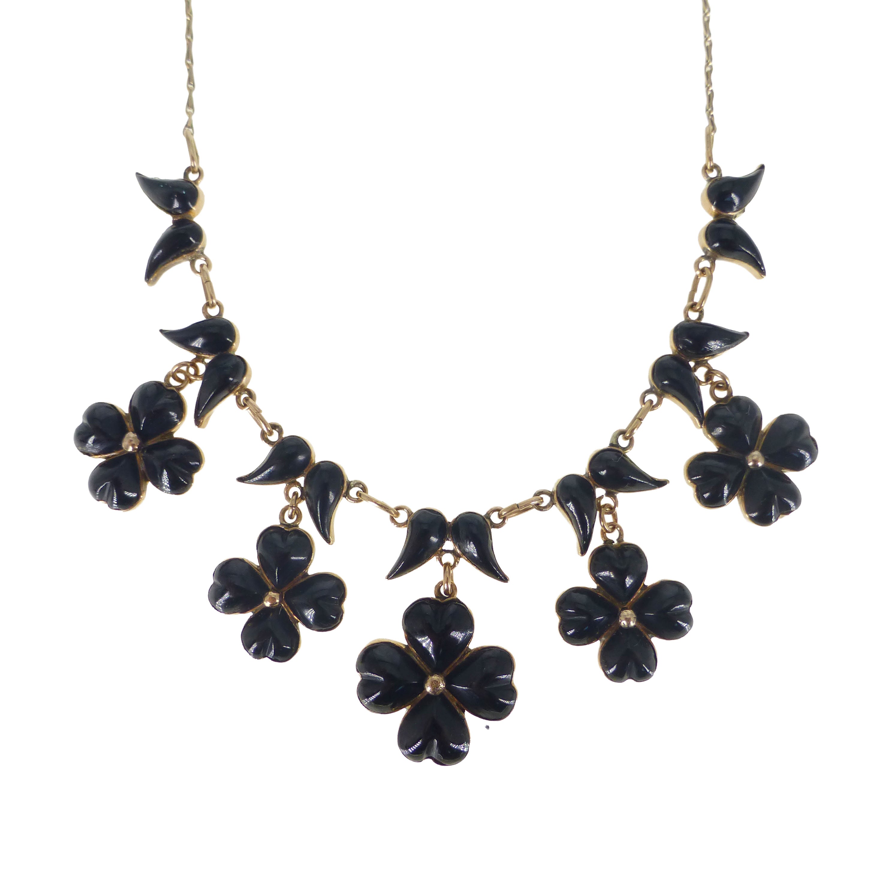 Antique Victorian Gold Pansy Mourning Necklace