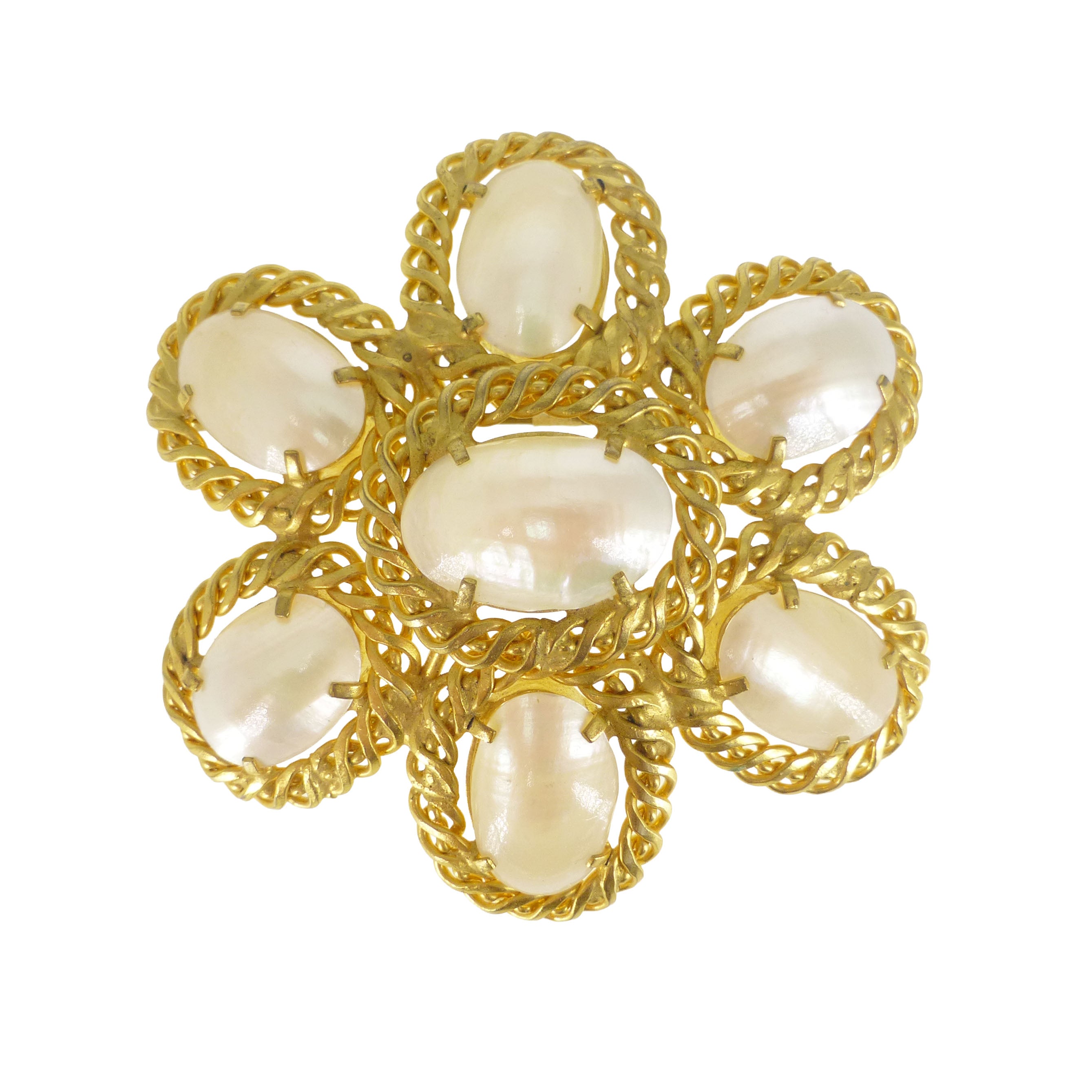 Vintage French Mother Of Pearl Gold Tone Brooch