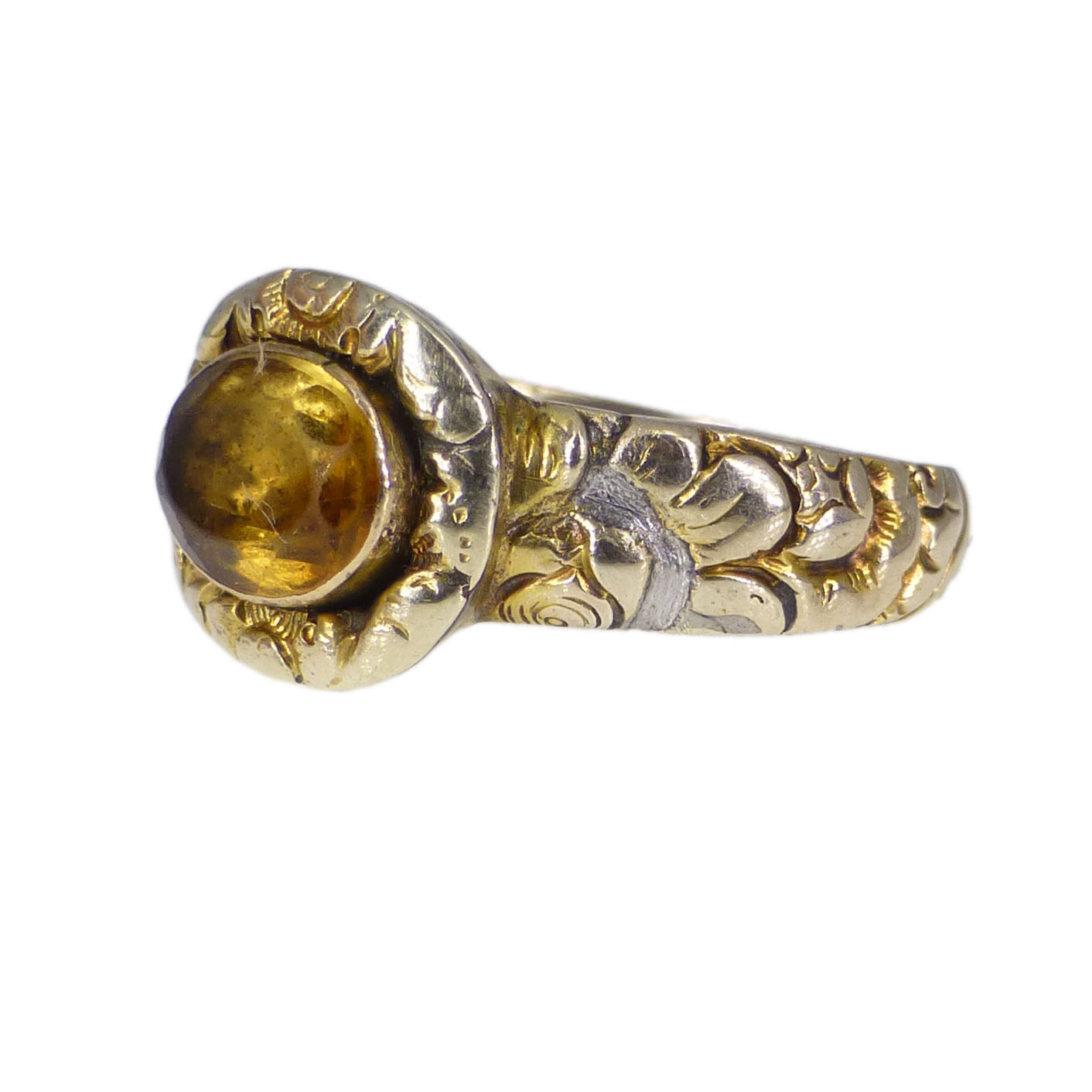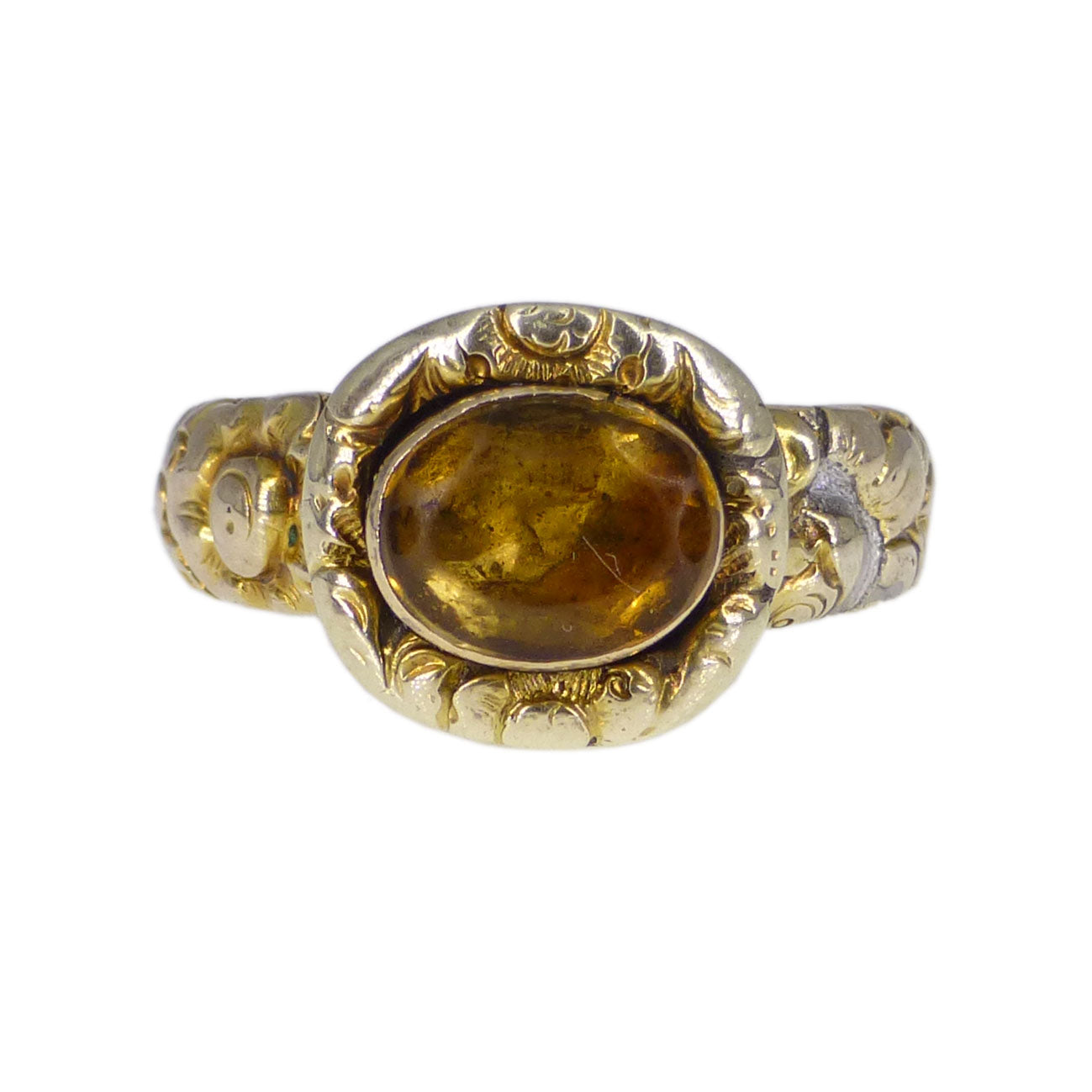 Antique Georgian Gold Cased Citrine Repousse Ring