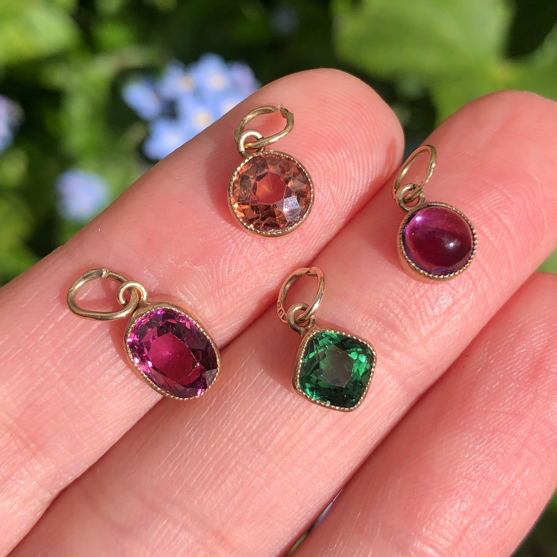 A sweet little collection of vintage gold charms set with a range of beautiful stones.