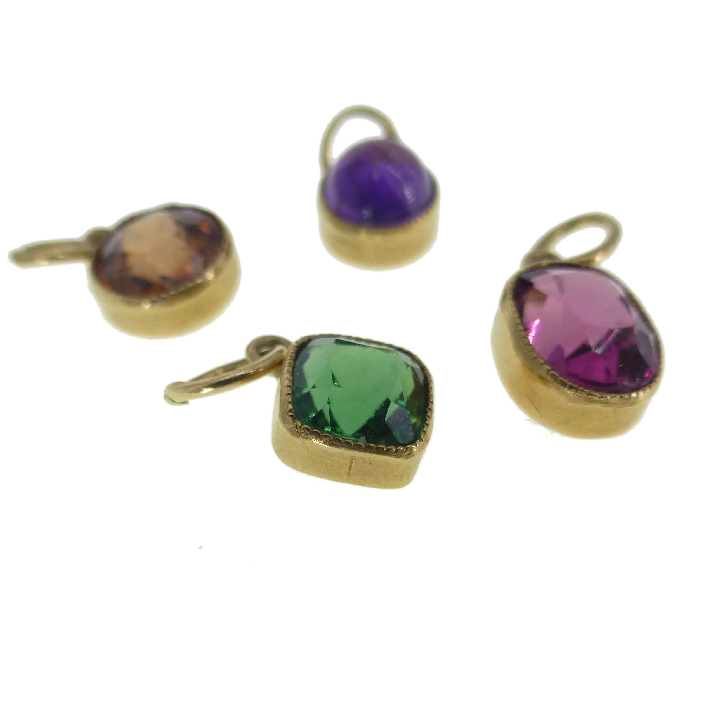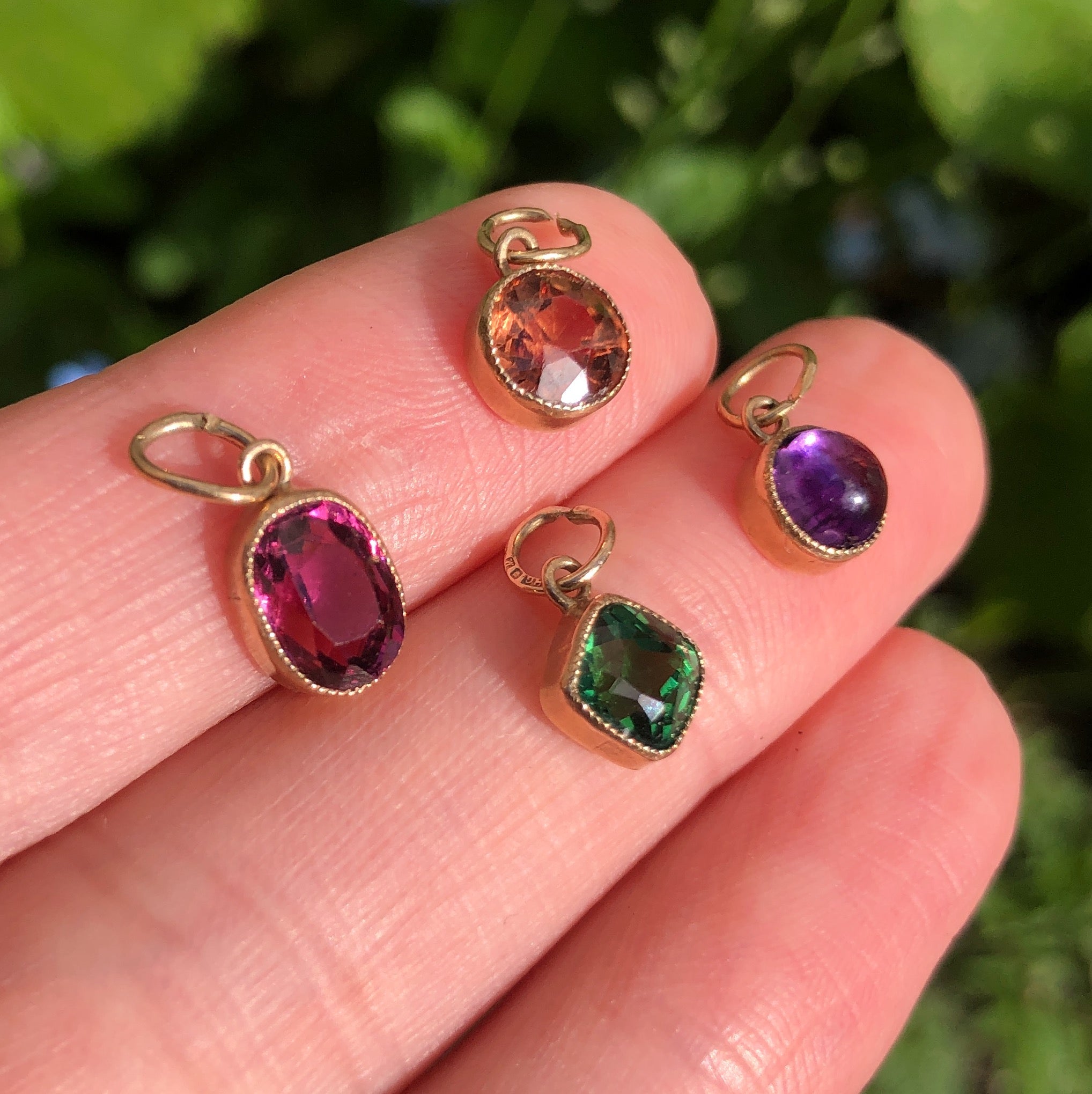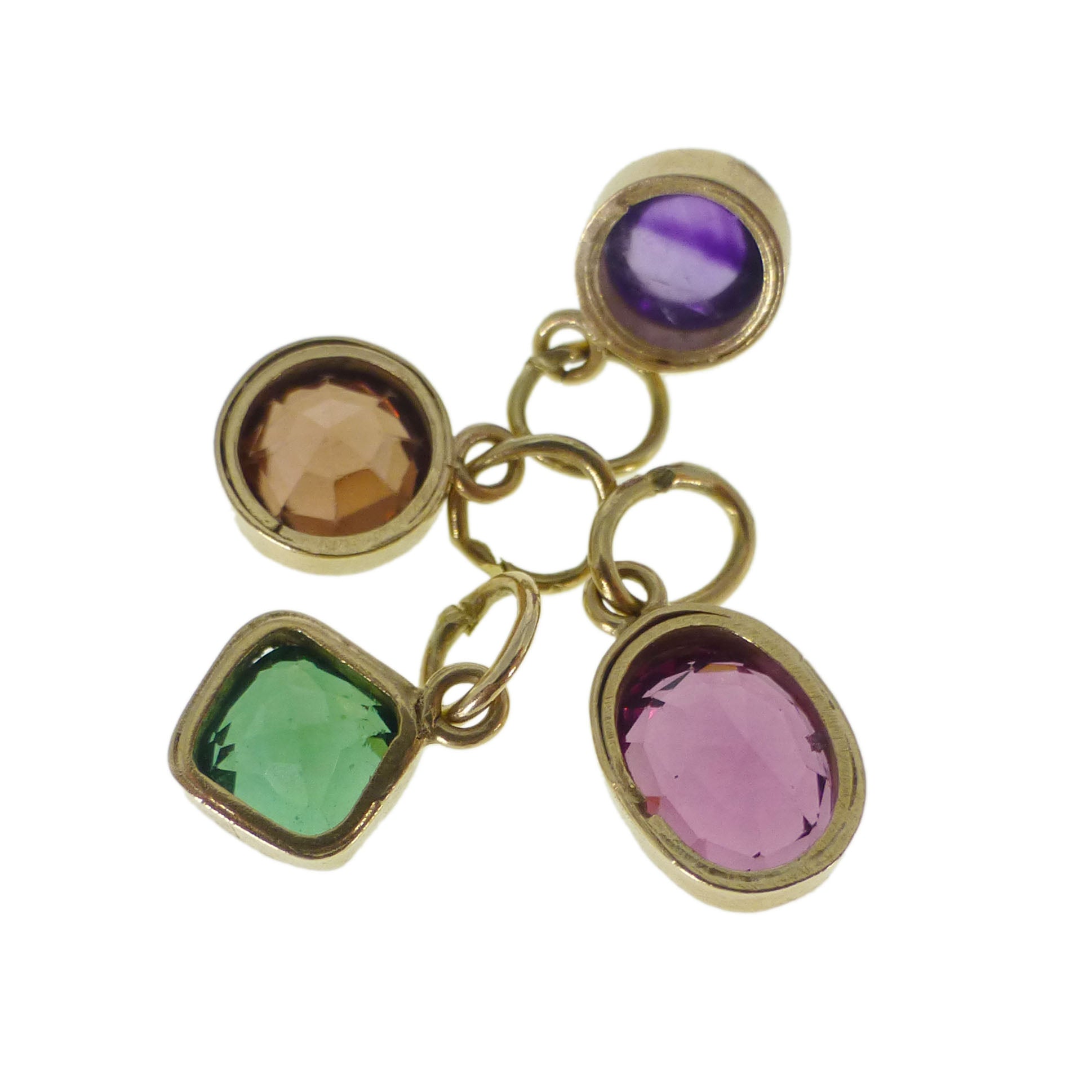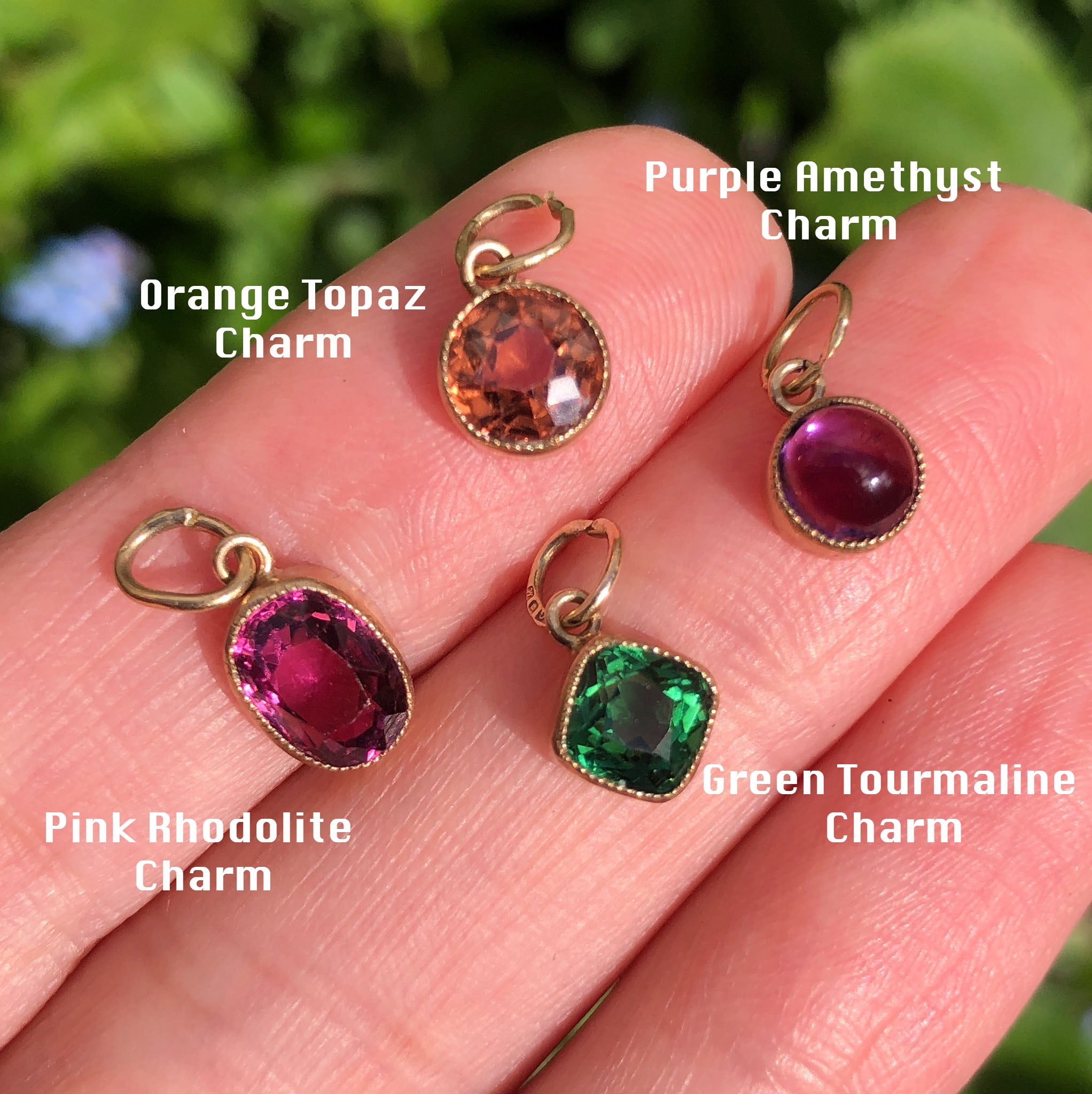 Vintage Gold Precious Topaz Tourmaline Garnet & Amethyst Charms