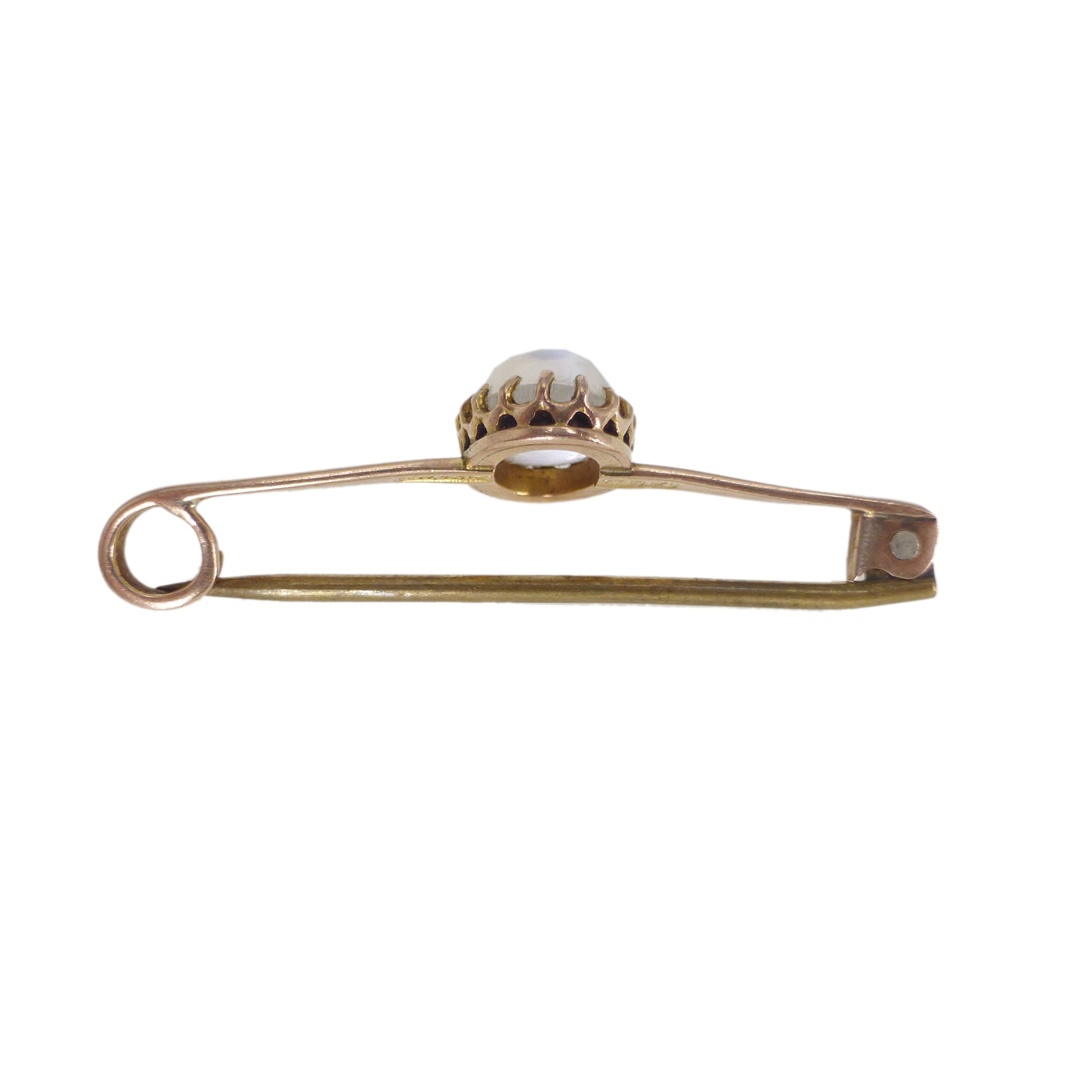 Vintage Mid Century Rose Gold Moonstone Bar Brooch