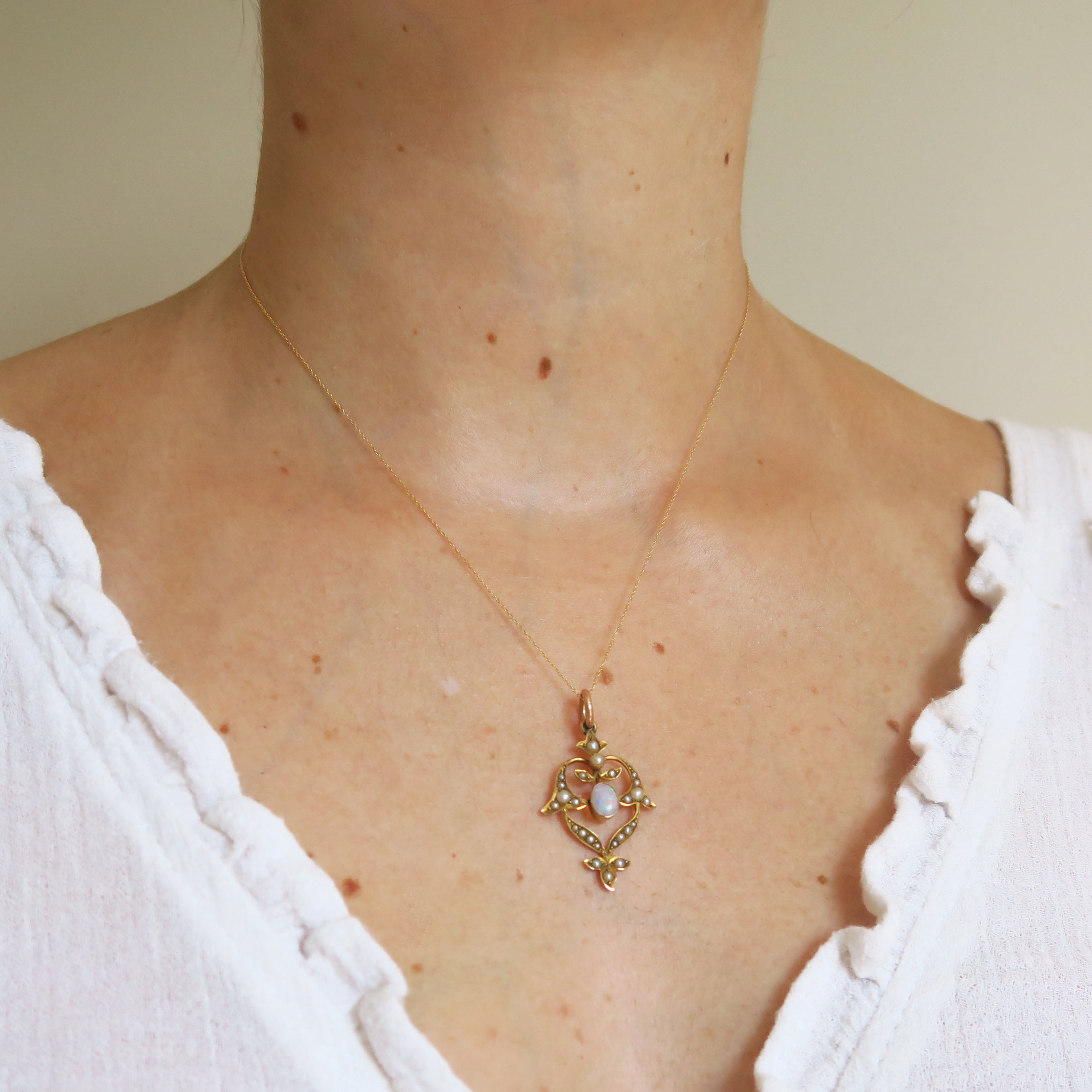 Antique Art Nouveau Gold Opal & Pearl Pendant