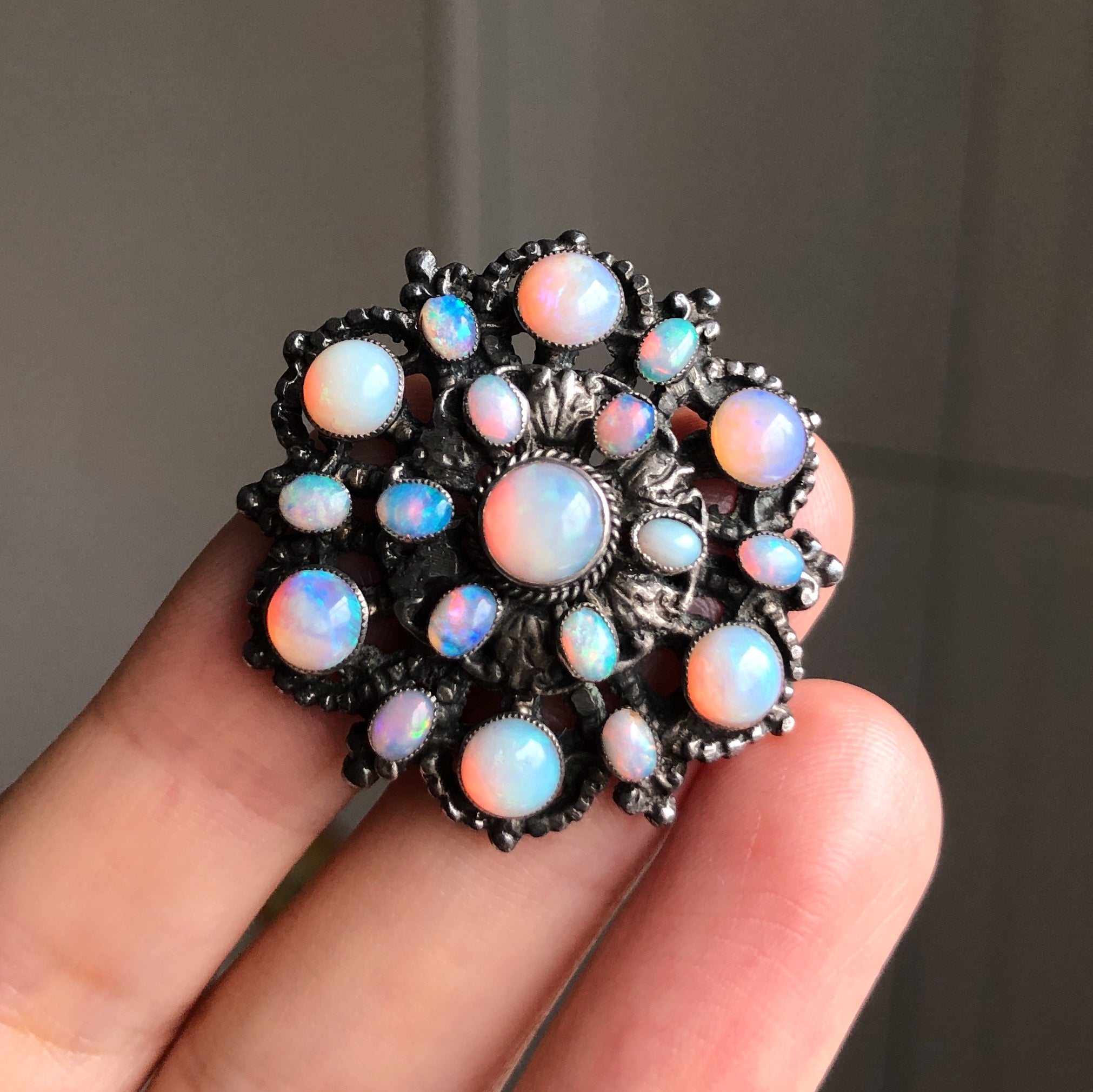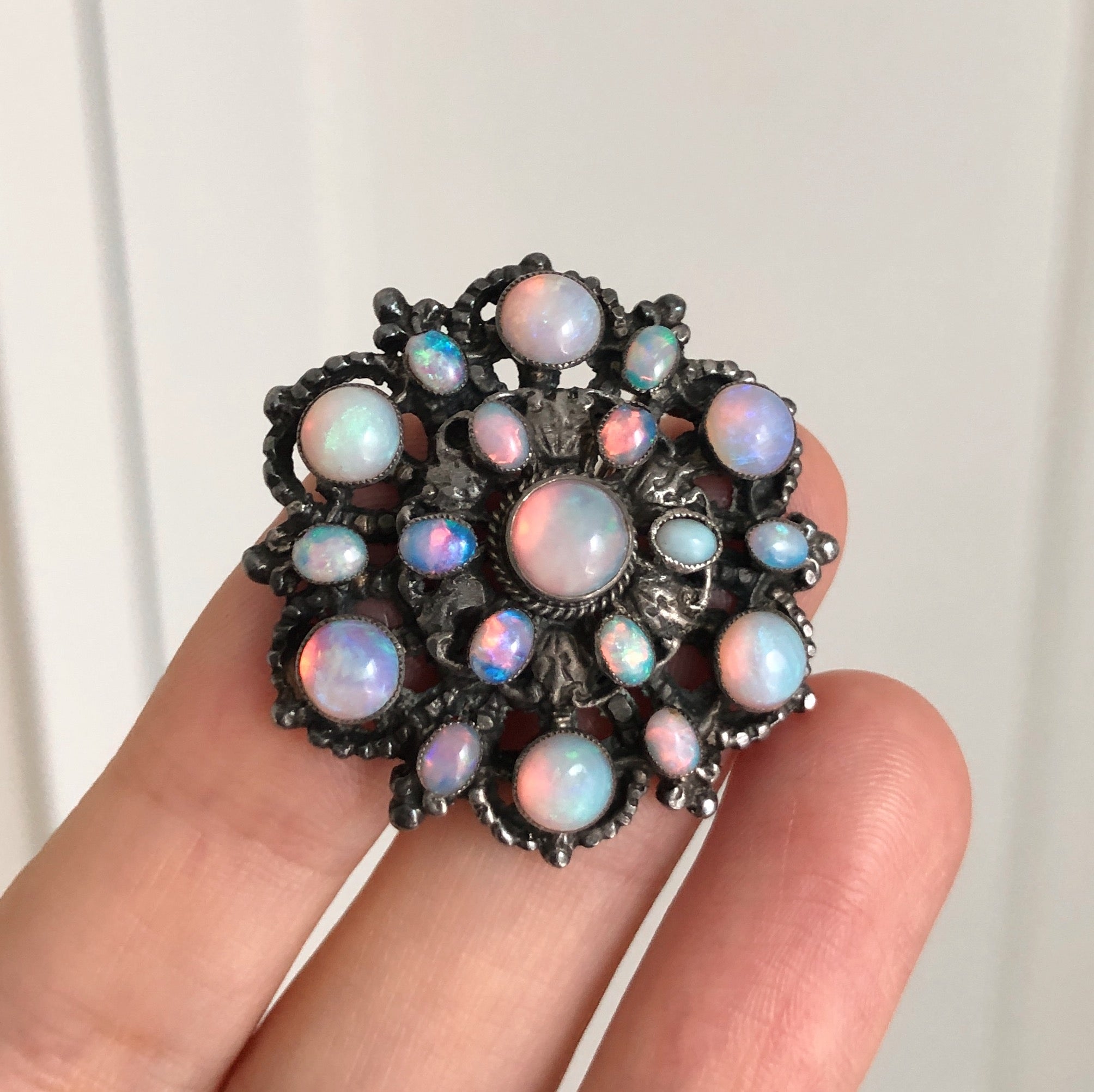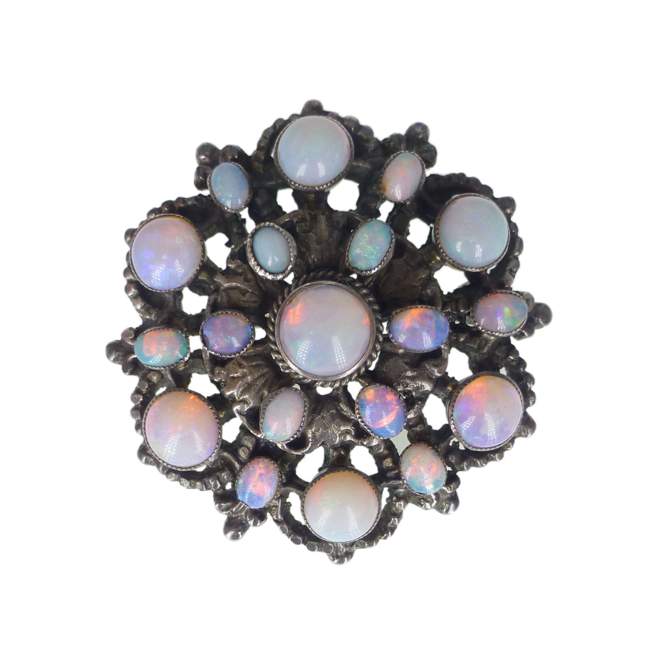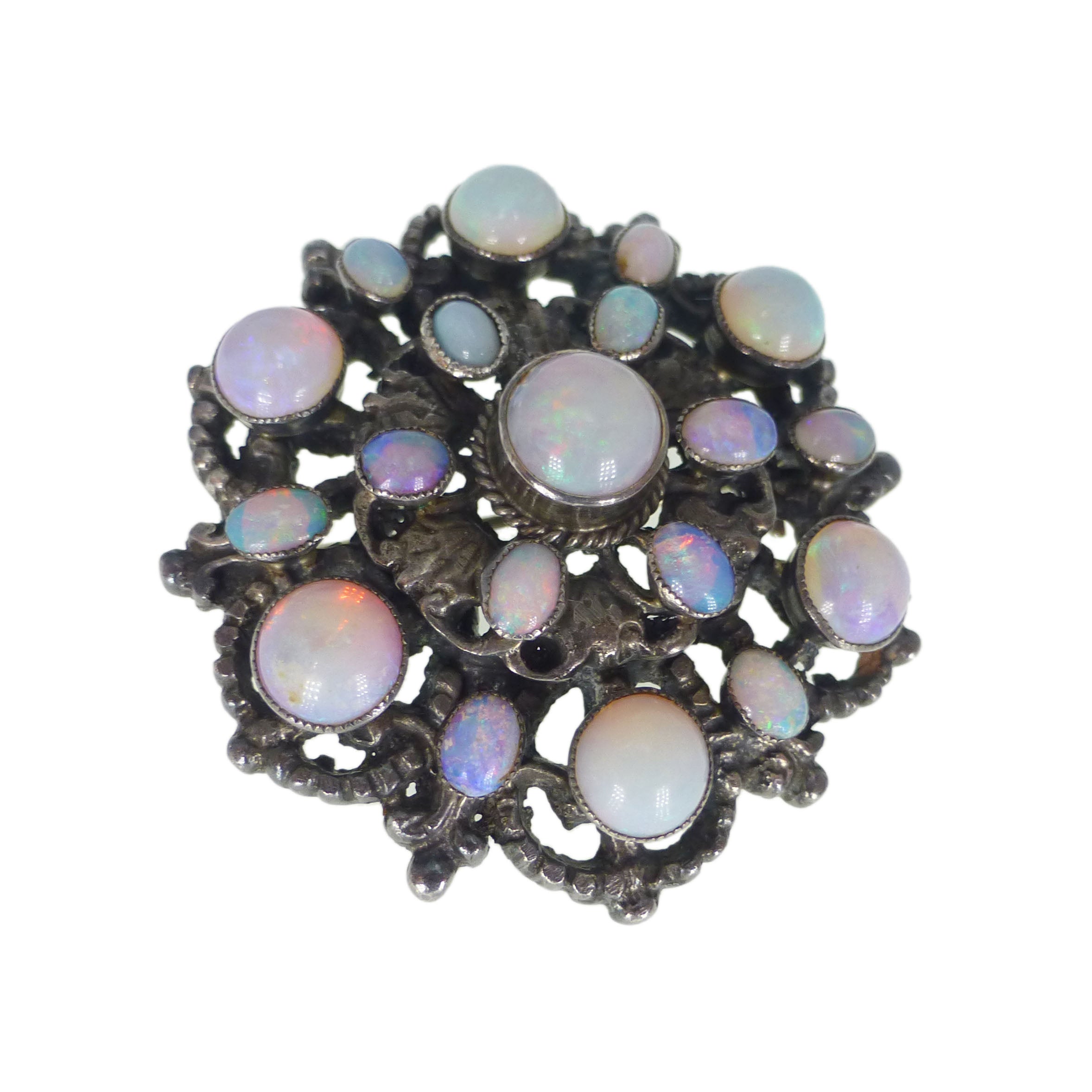 Antique Austro Hungarian Silver Opal Floral Brooch