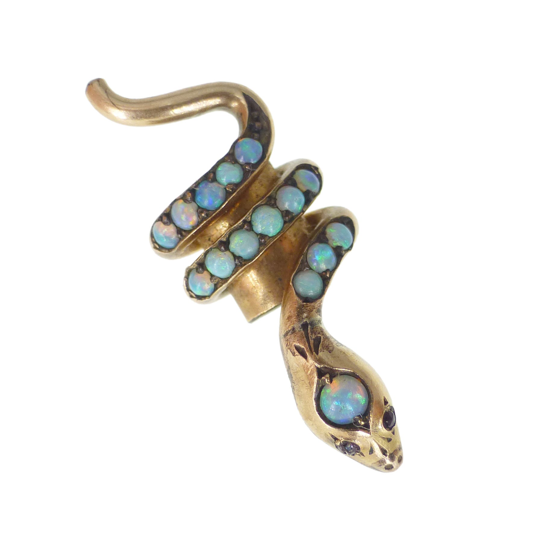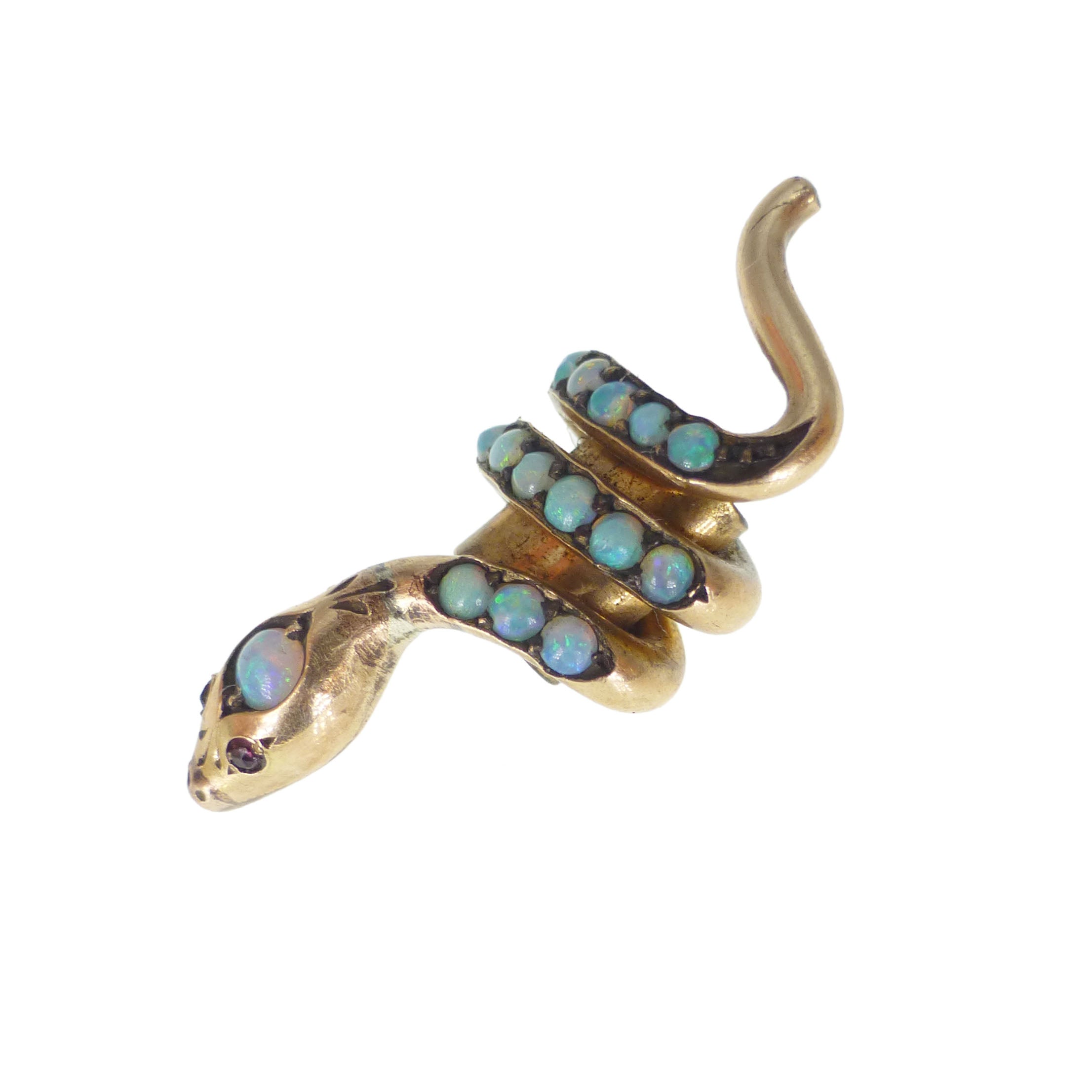 A beautiful antique rolled gold slide charm in the form of a snake. The snake is set with particularly colourful Hungarian opals that sparkle beautifully under sunlight.