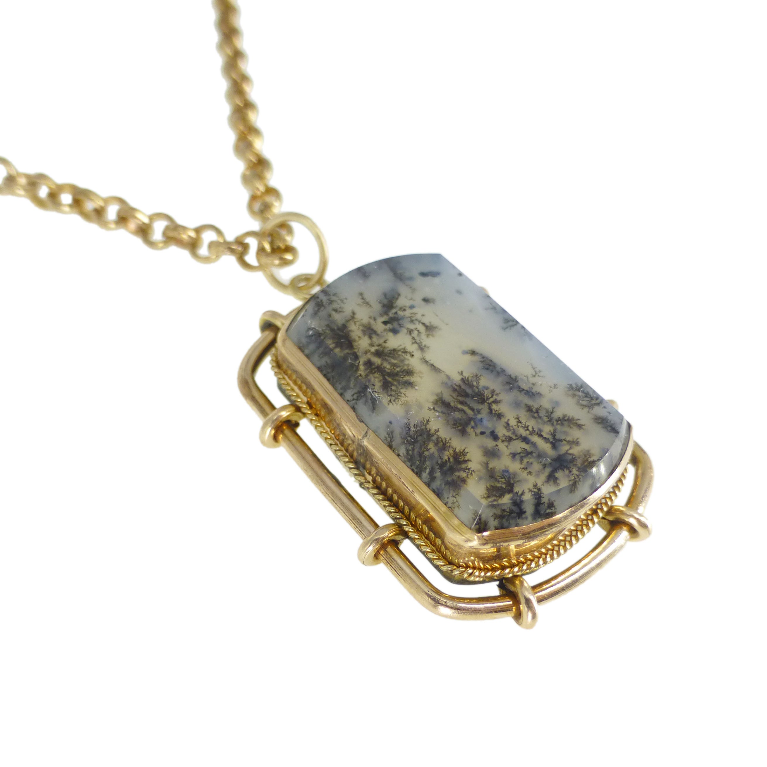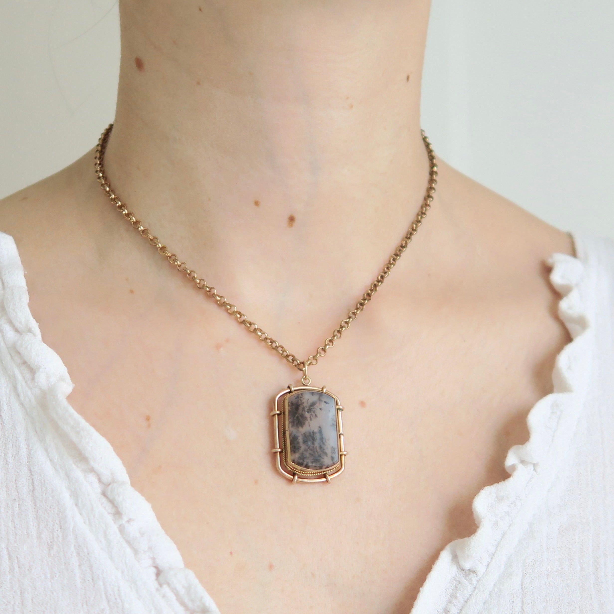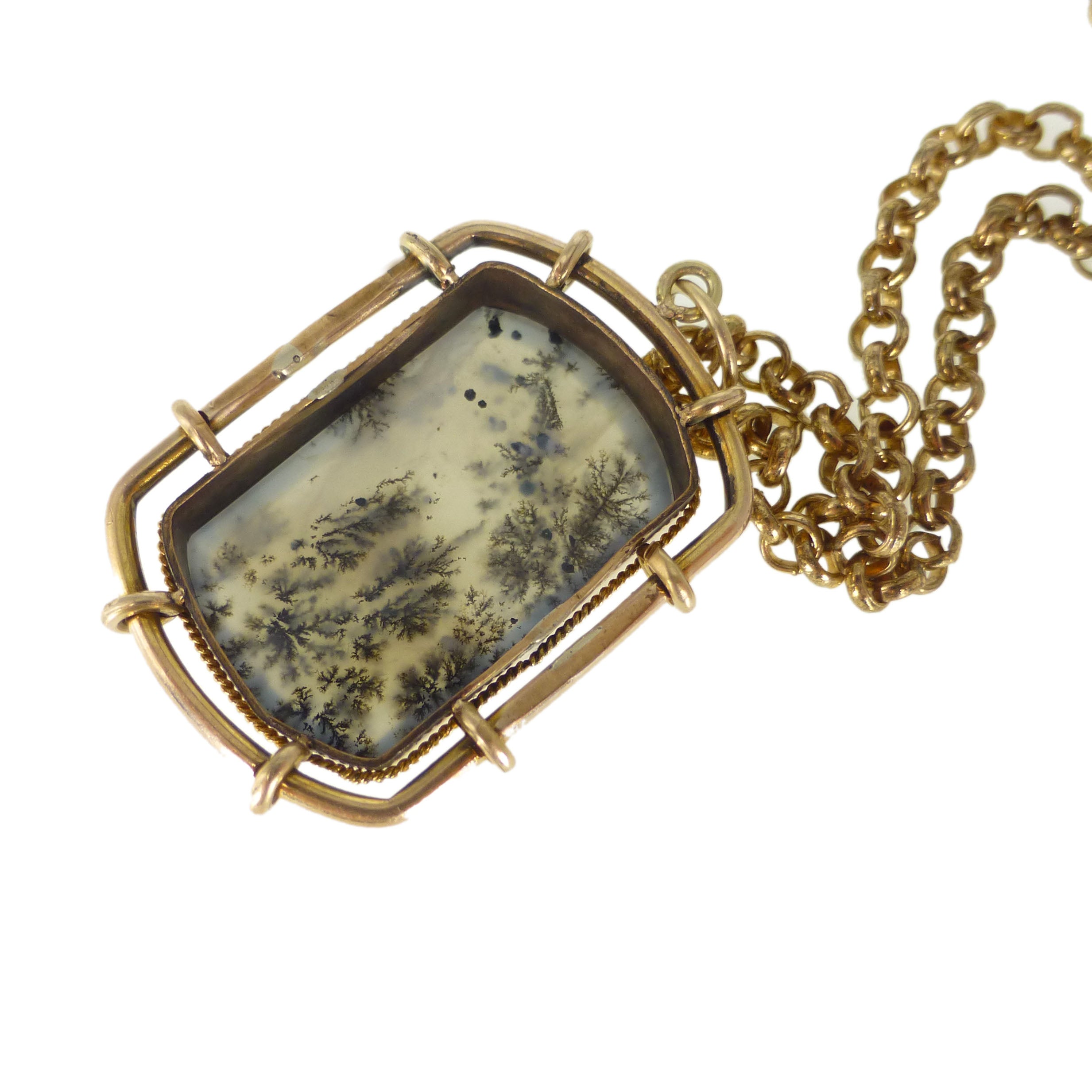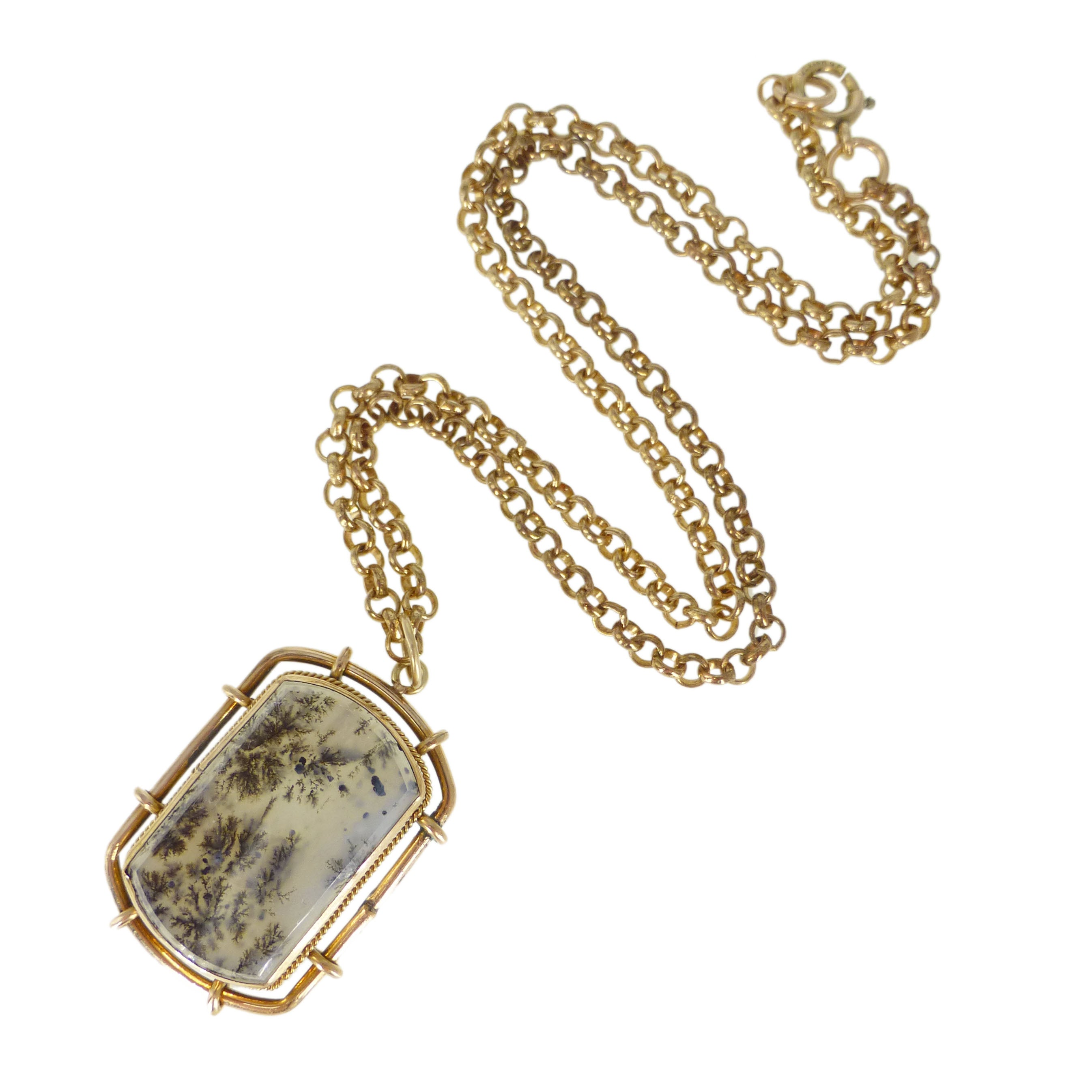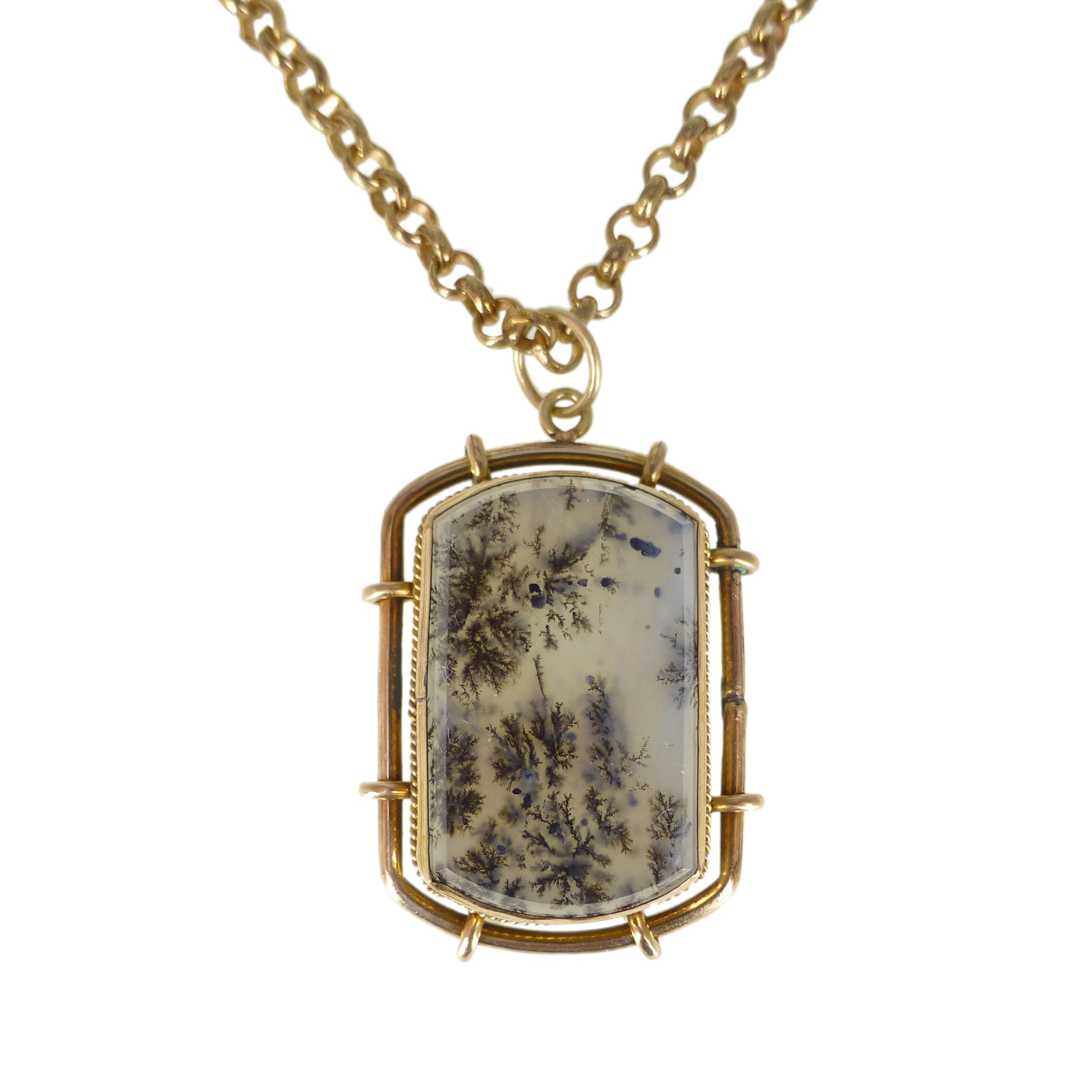 Antique Rolled Gold Dendritic Agate Pendant Necklace