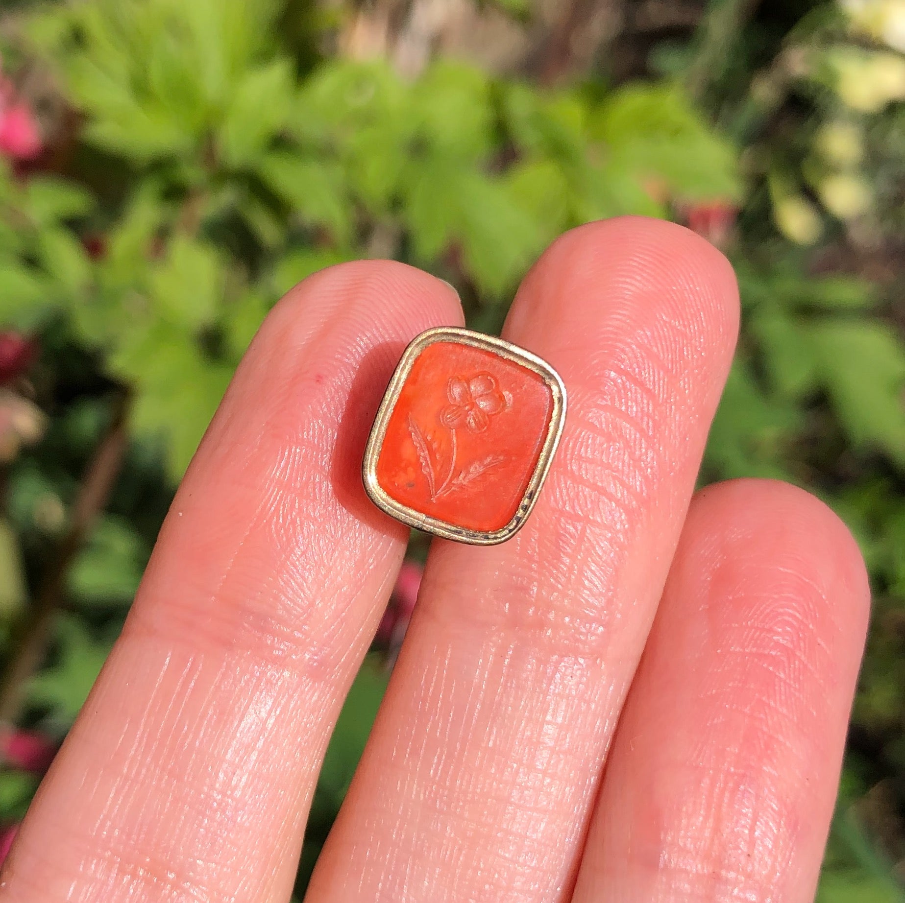 Antique Victorian Carnelian 'Forget Me Not' Fob Charm