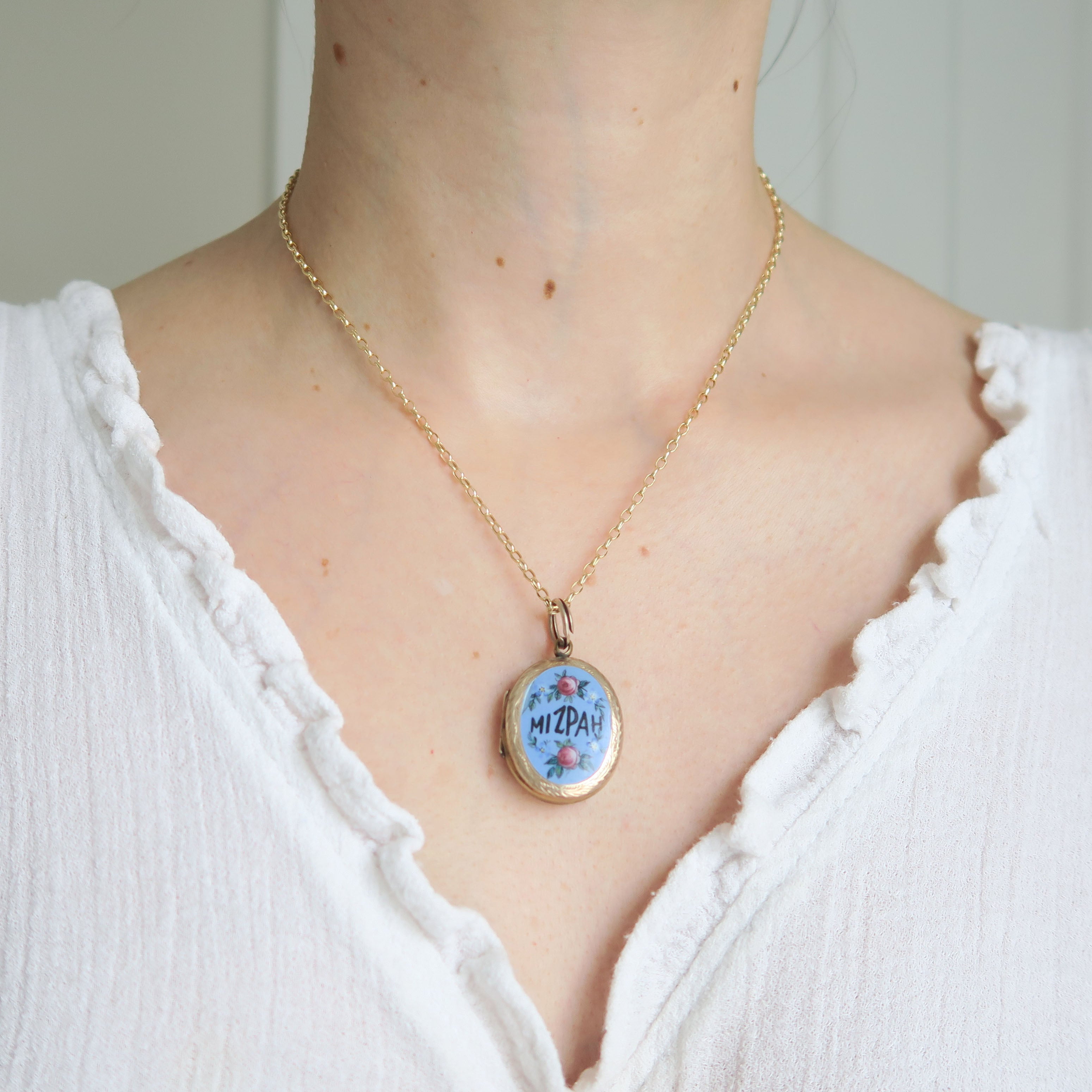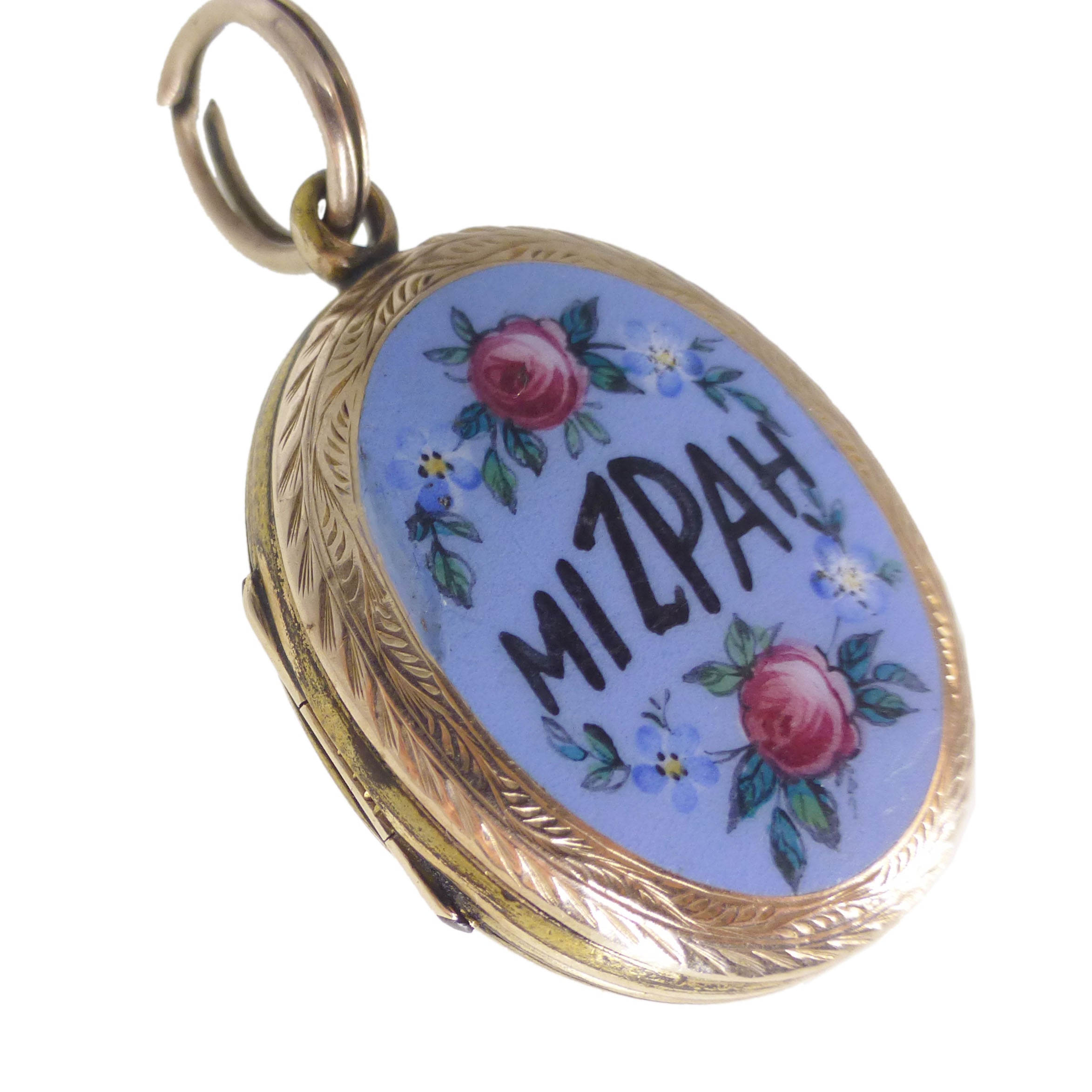 Antique Victorian Enamel 'Mizpah' Floral Locket Gold Cased Locket