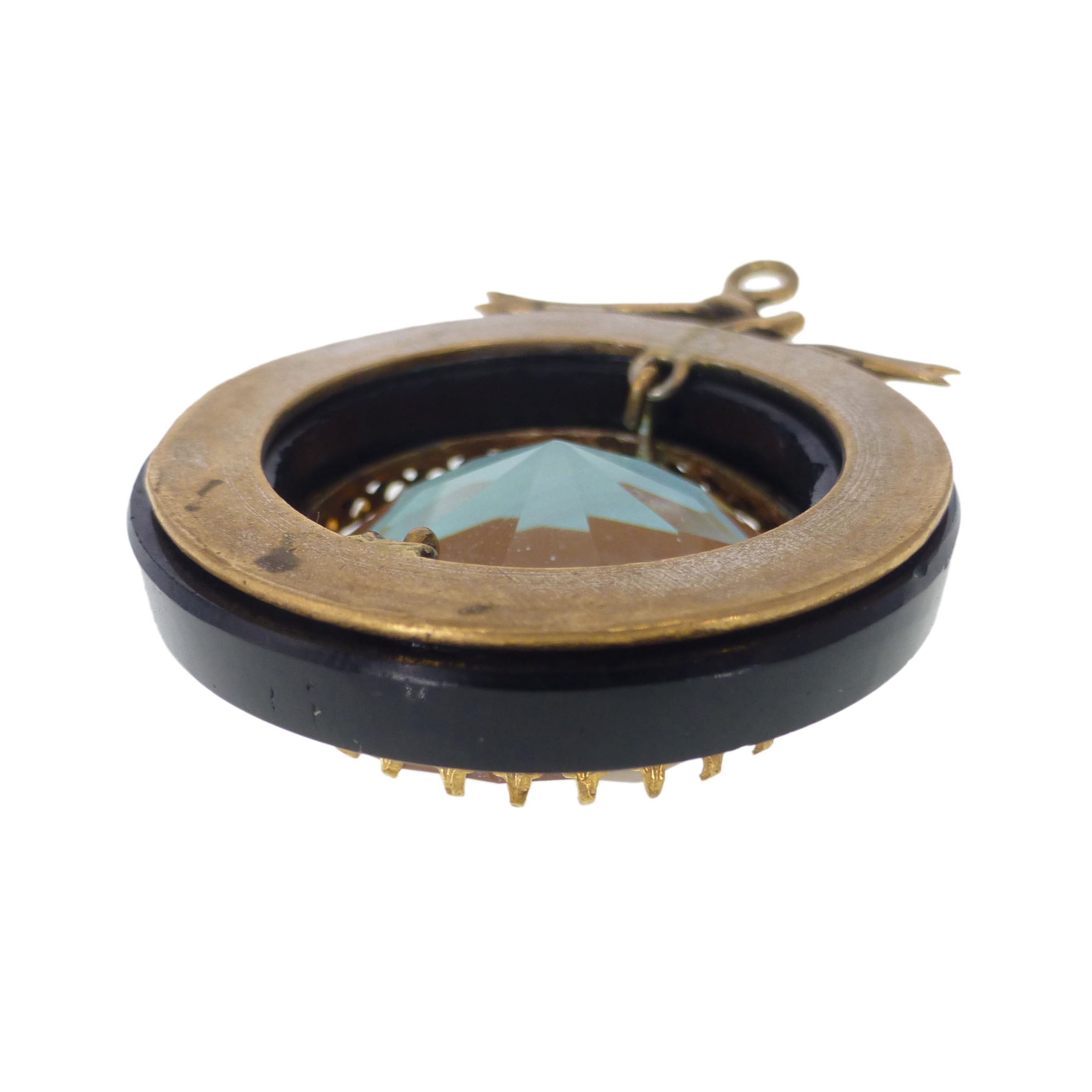 Antique Round Saphiret Glass Filigree Lucite Pendant
