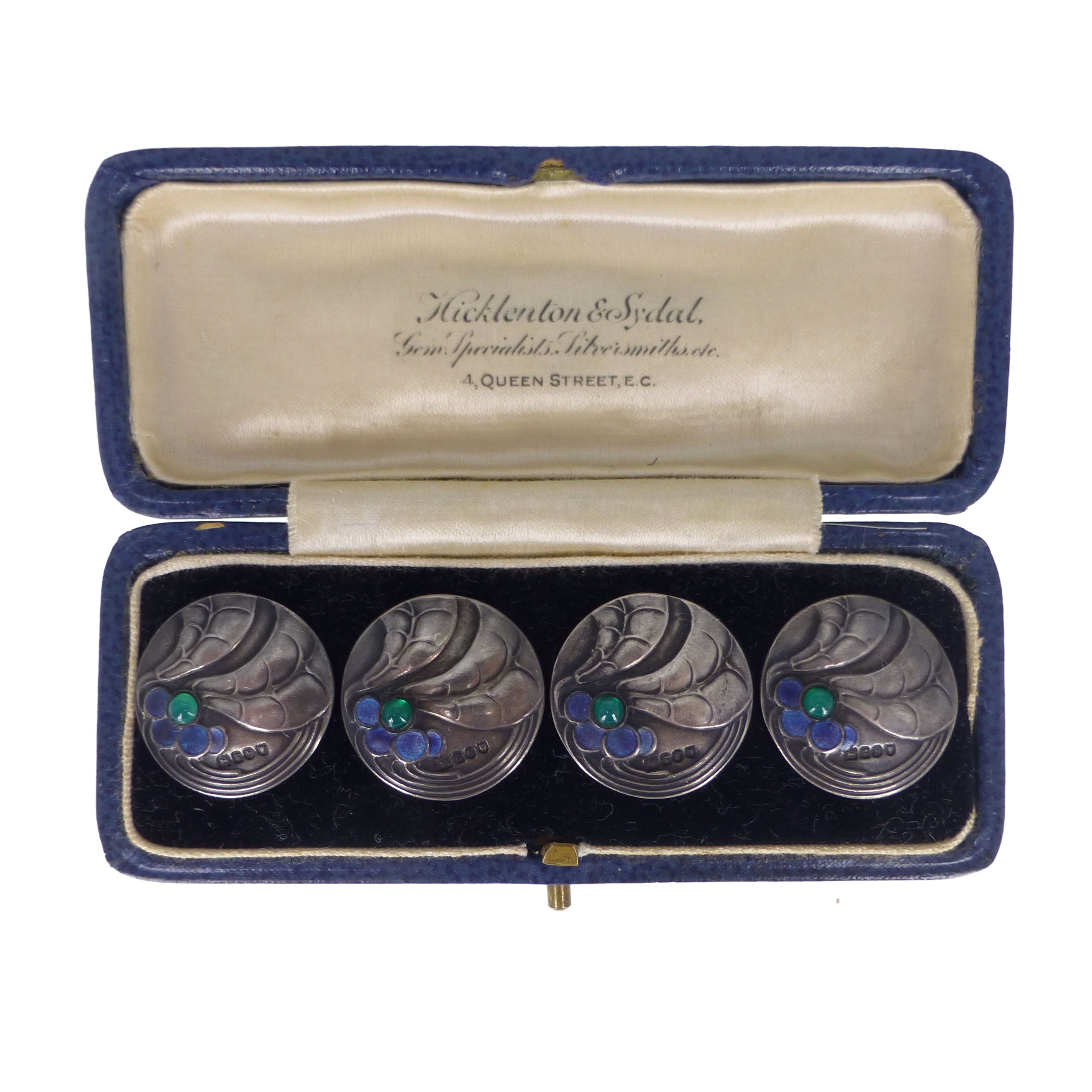 Antique Art Nouveau Silver Theodor Fahrner Chrysoprase Buttons