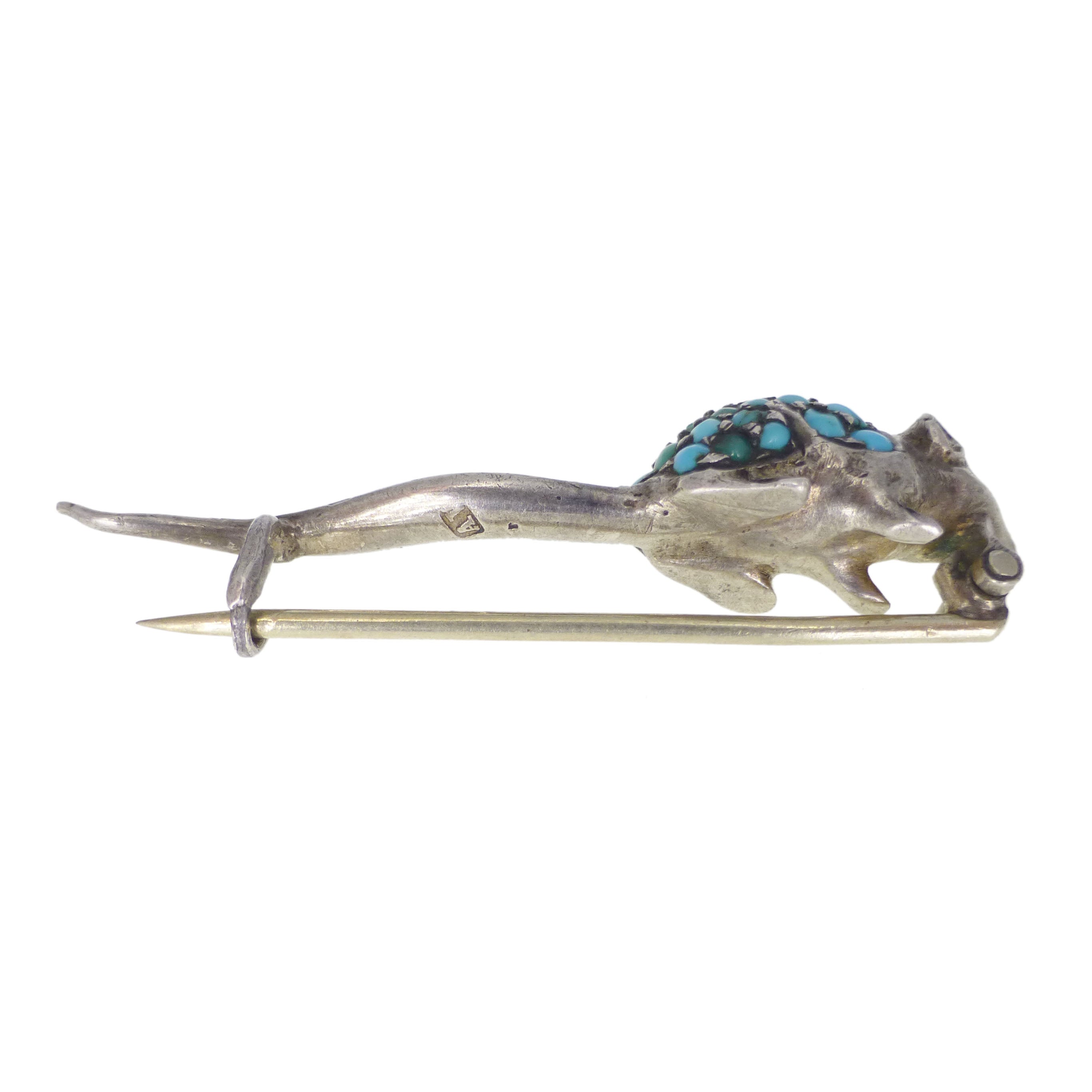 Antique Victorian Silver Turquoise Mouse Brooch