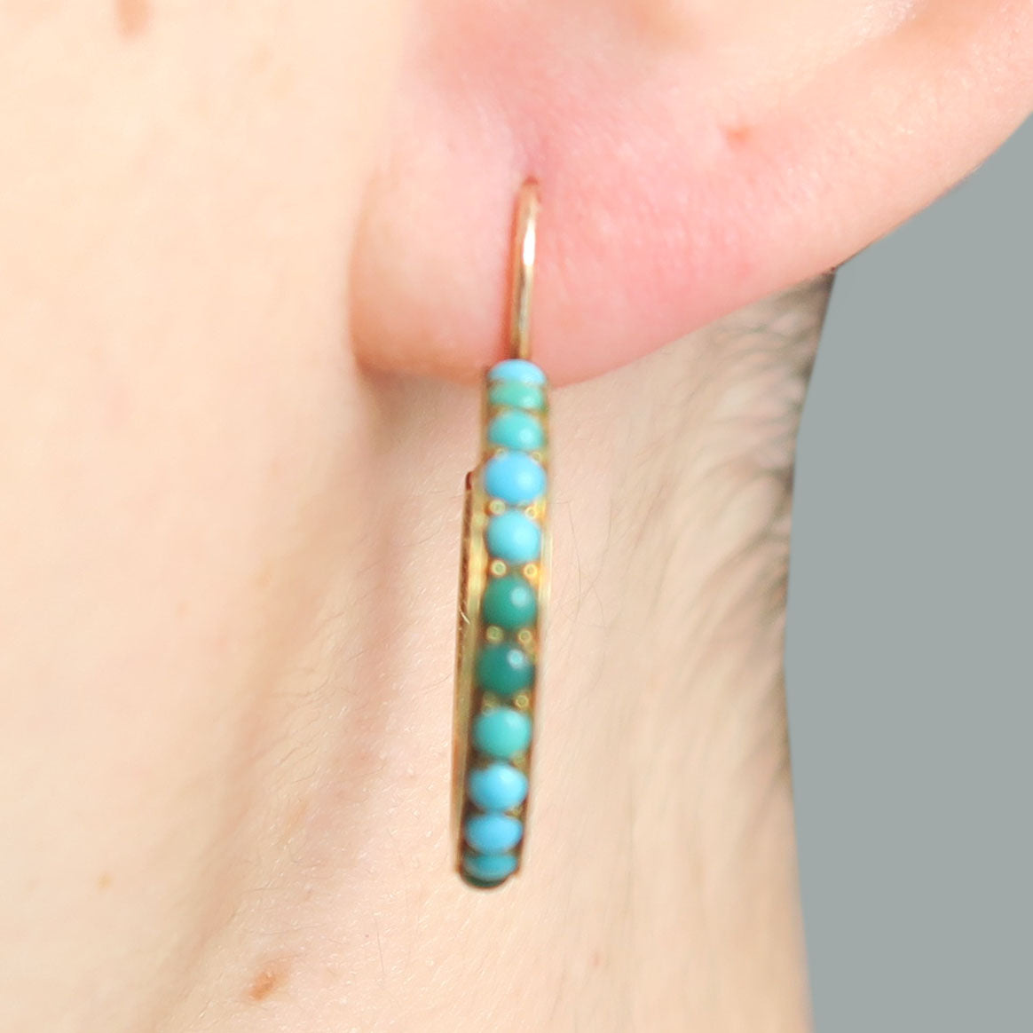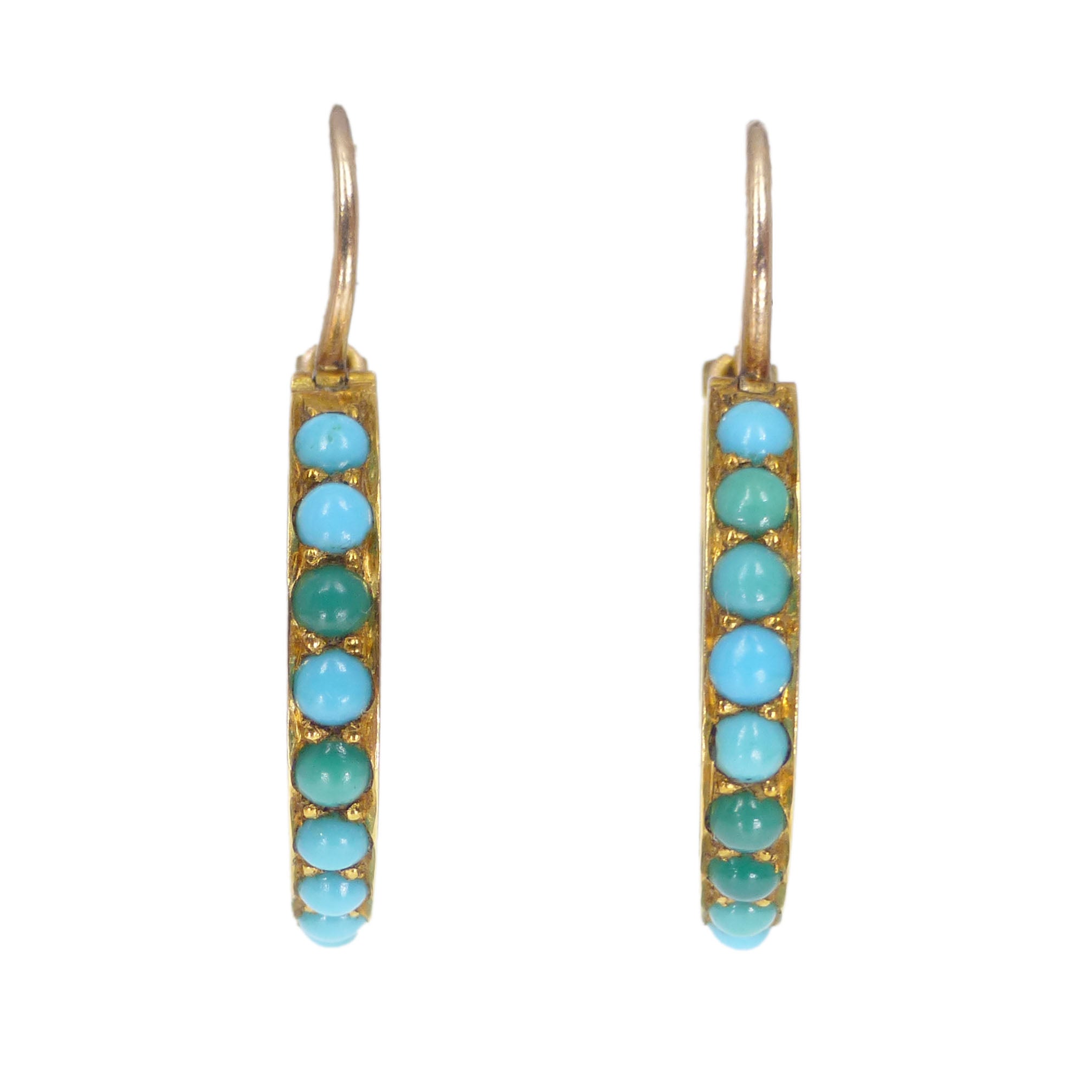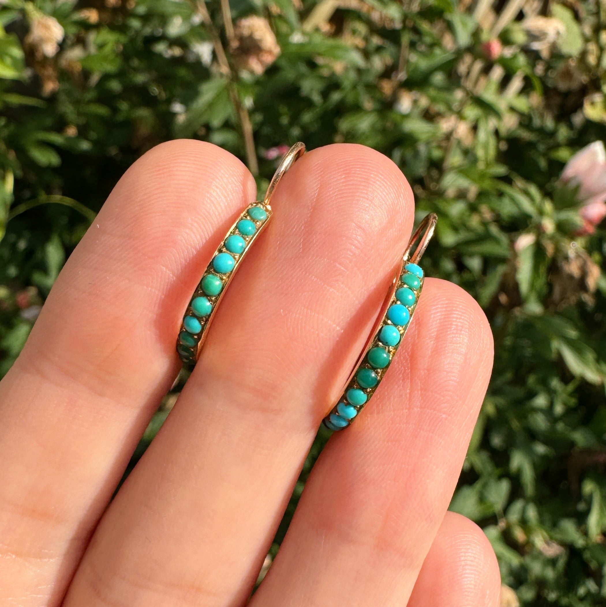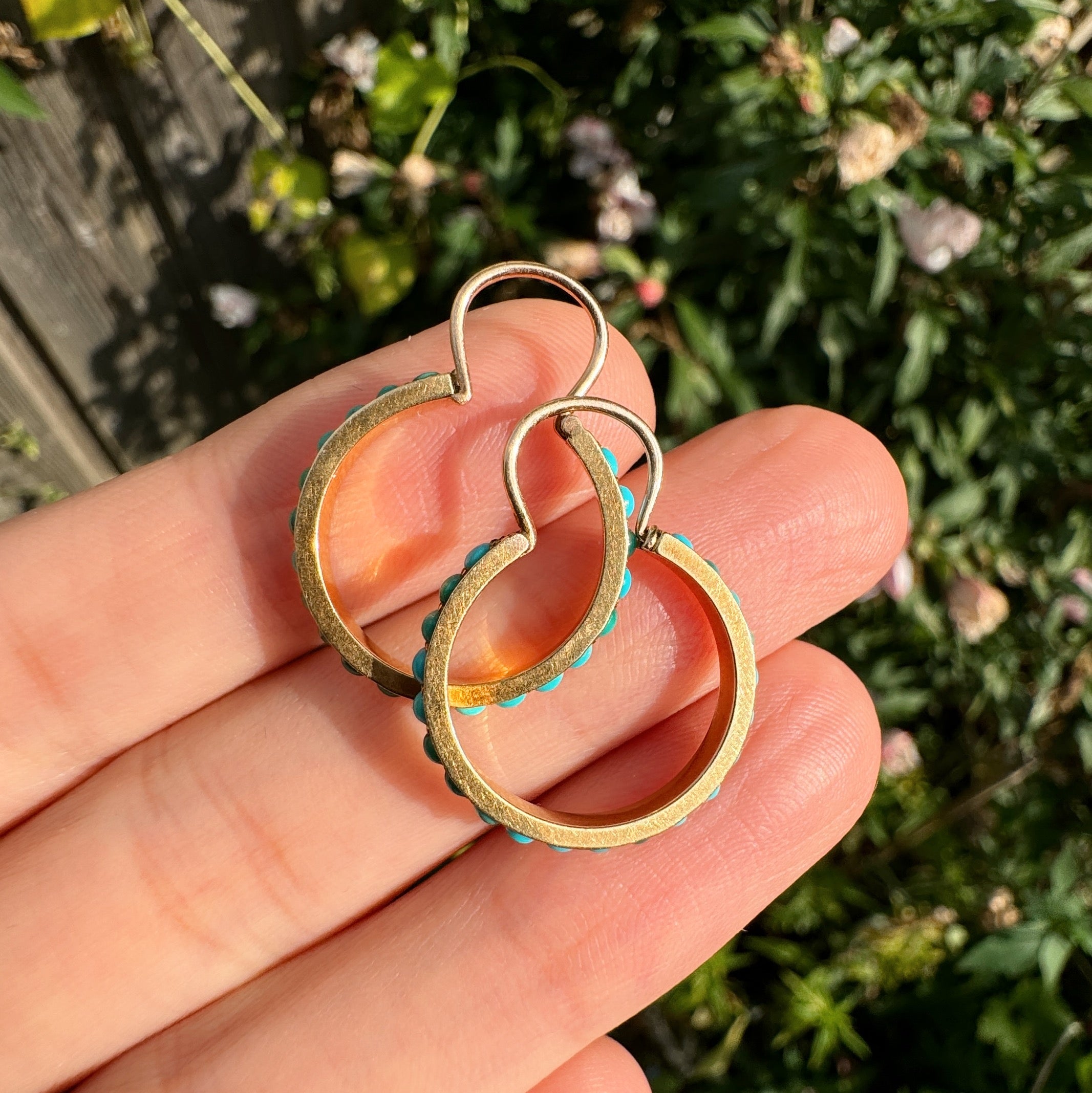 Antique Victorian 18ct Gold Turquoise Creole Hoop Earrings