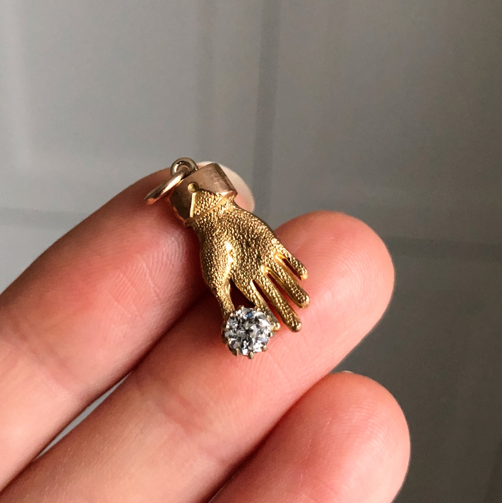 There is a little bit of wear to the plating on the base of the hand which has been pictured. The charm remains in good antique condition overall.