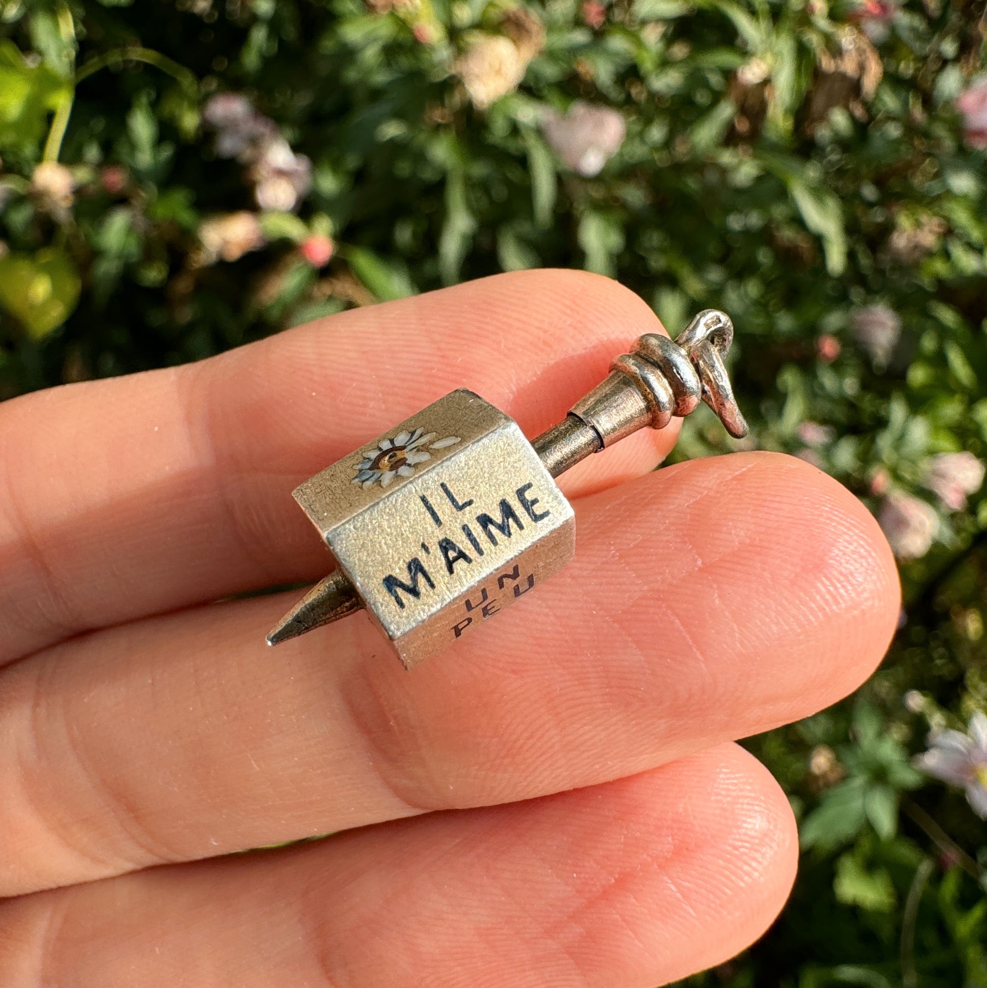 A charming antique silver 'Effeuiller la Marguerite' spinner charm - 'He loves me, he loves me not'.