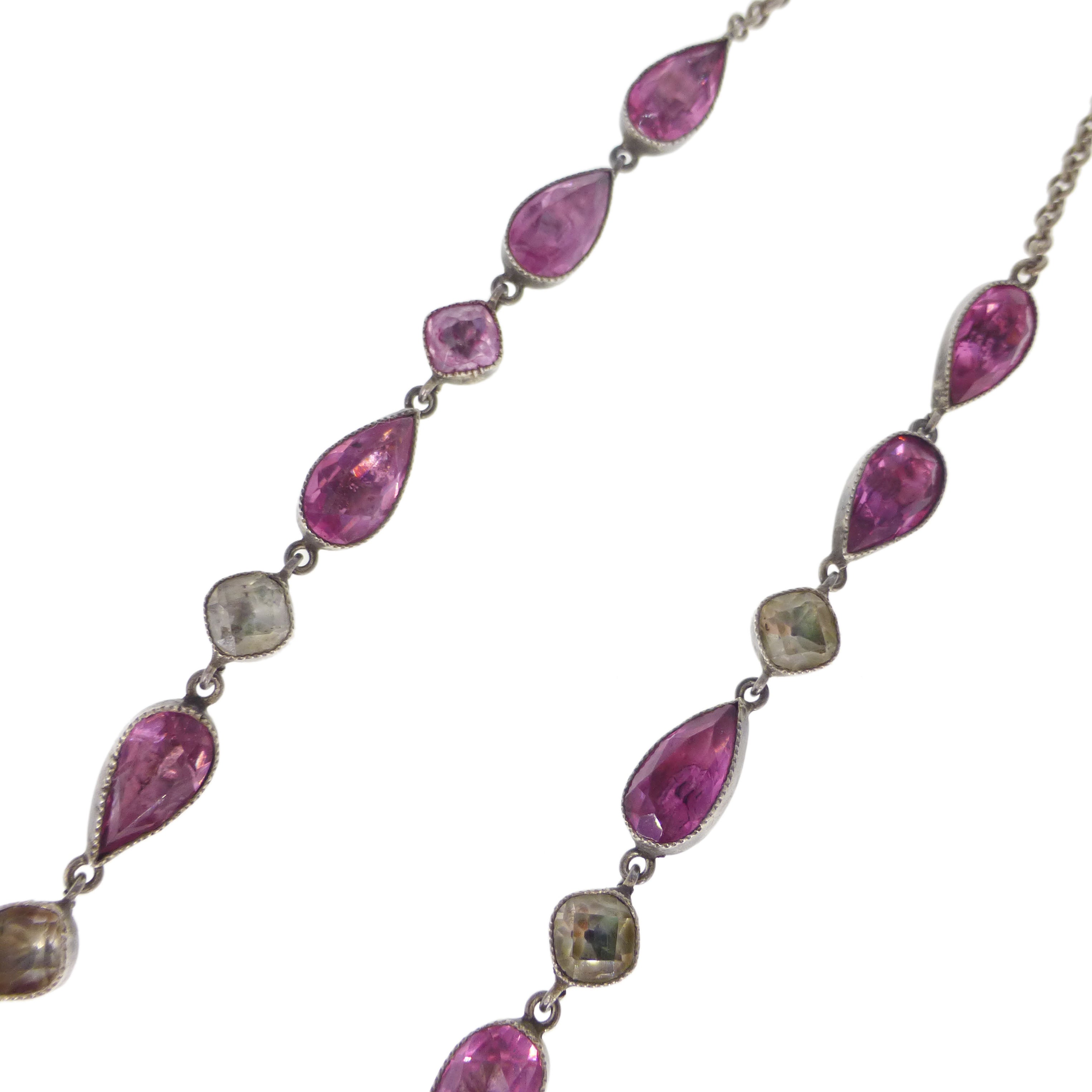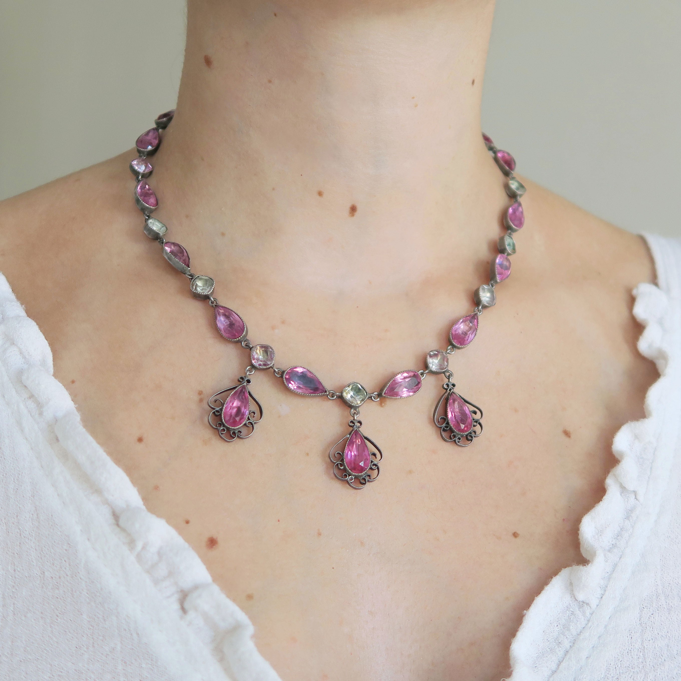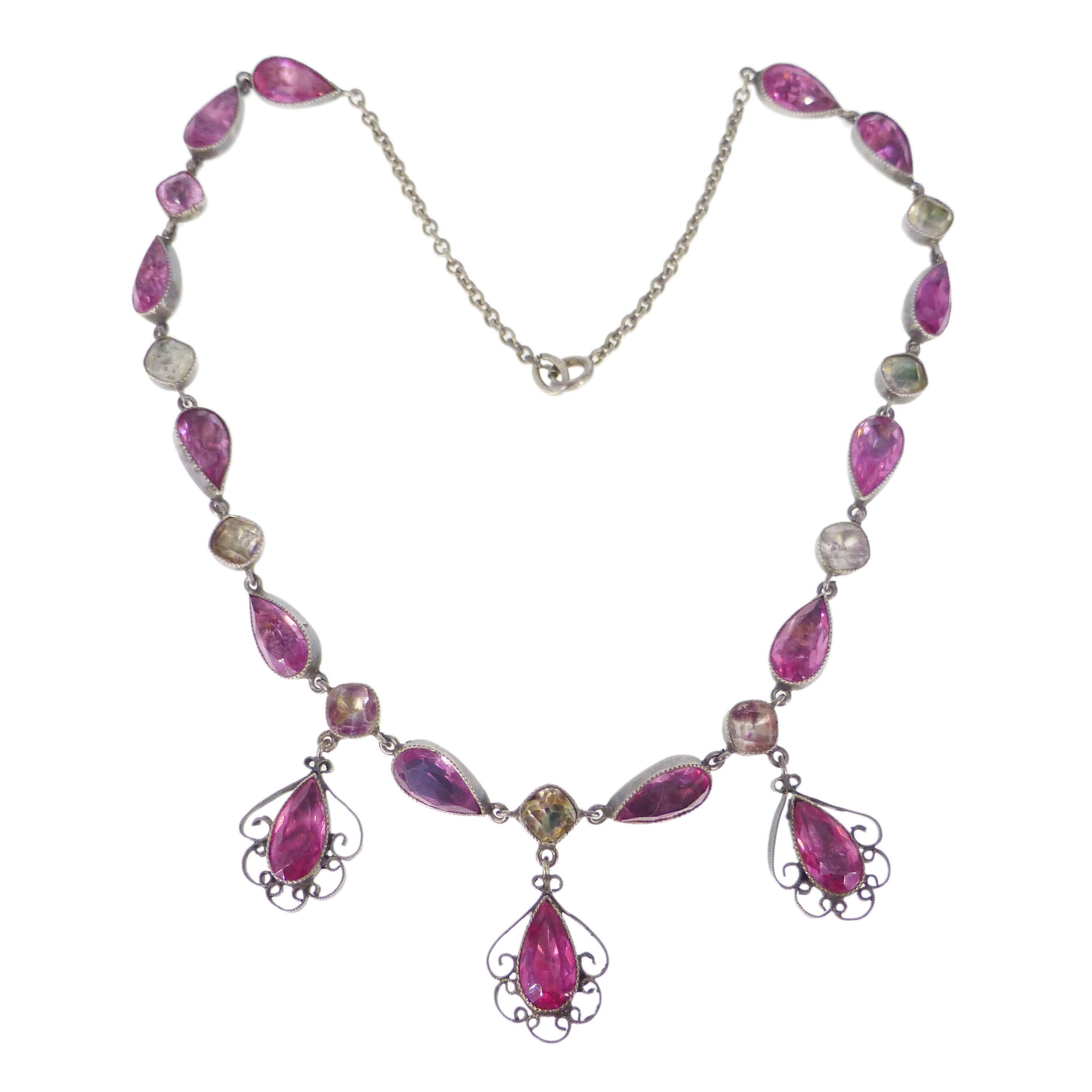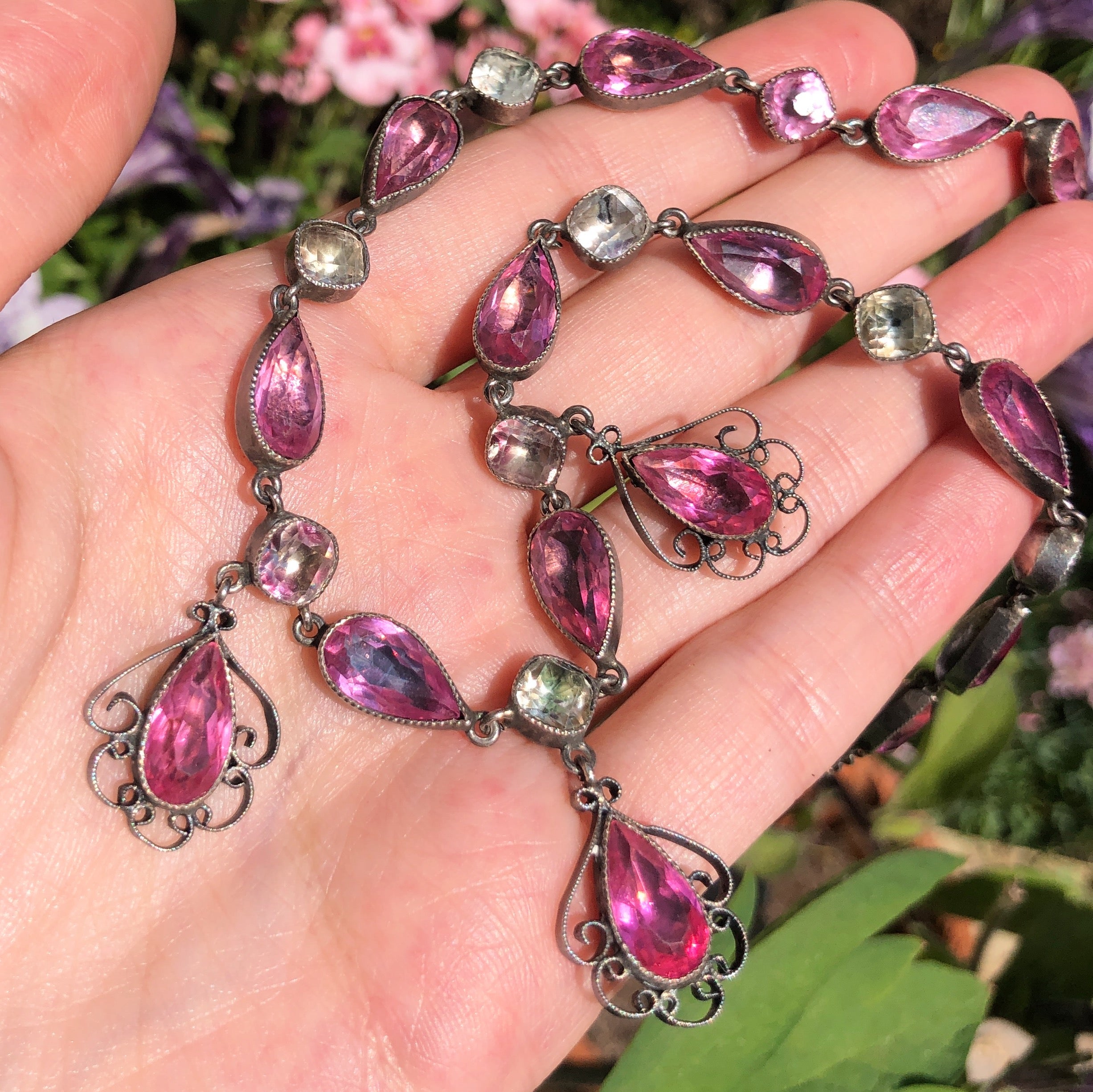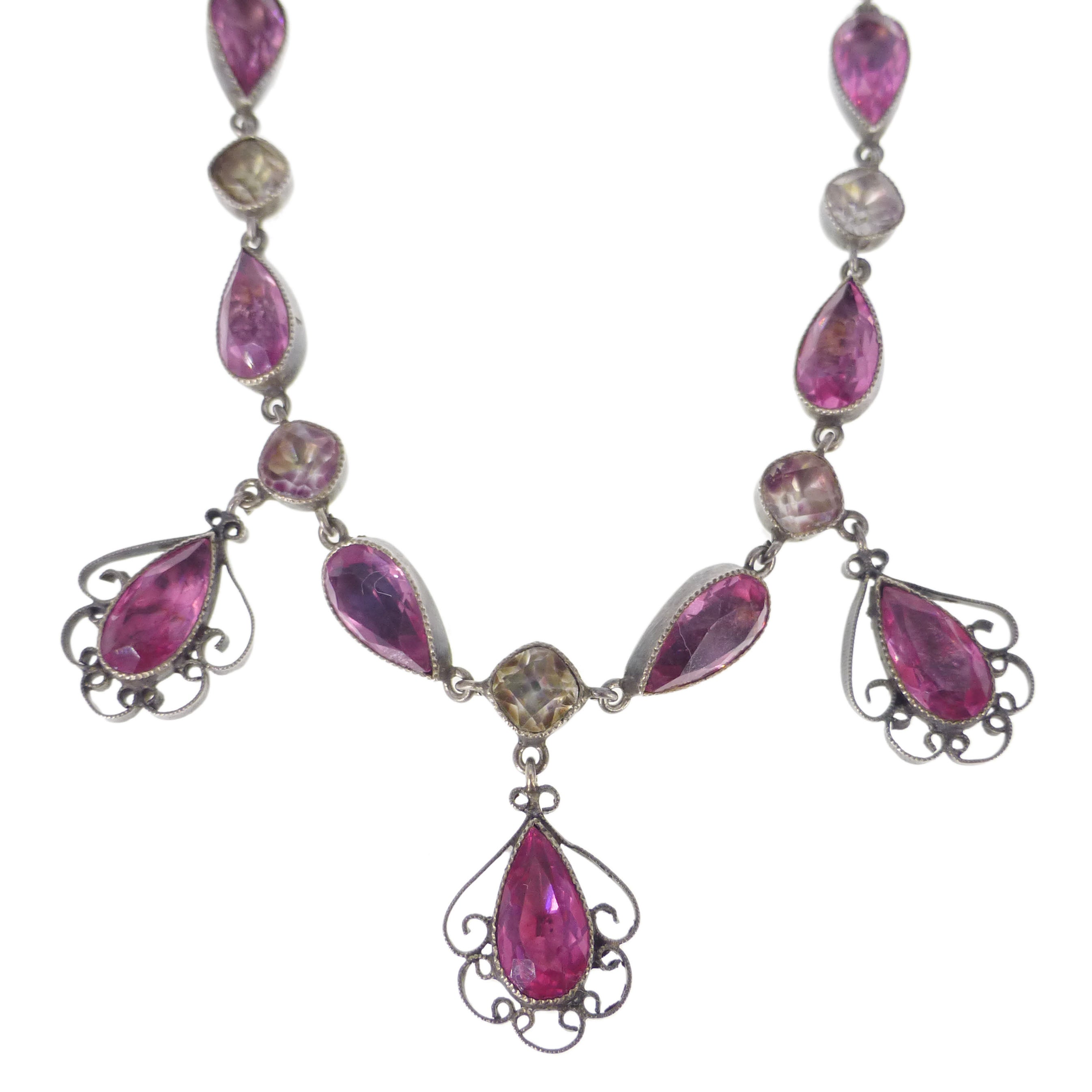 A wonderful antique silver pink paste necklace dating to the 19th century.