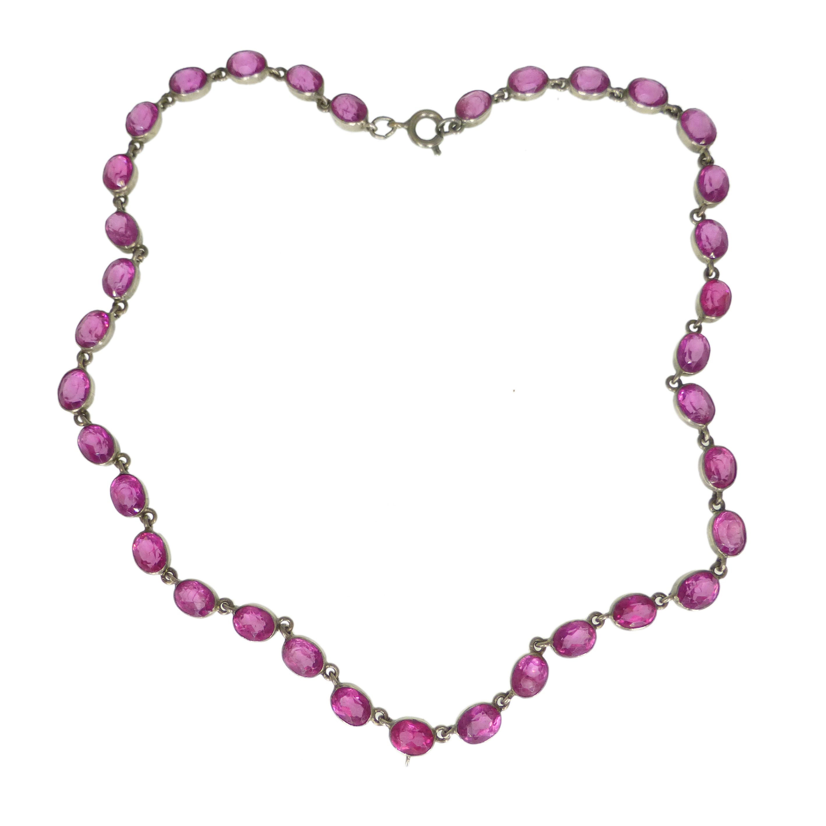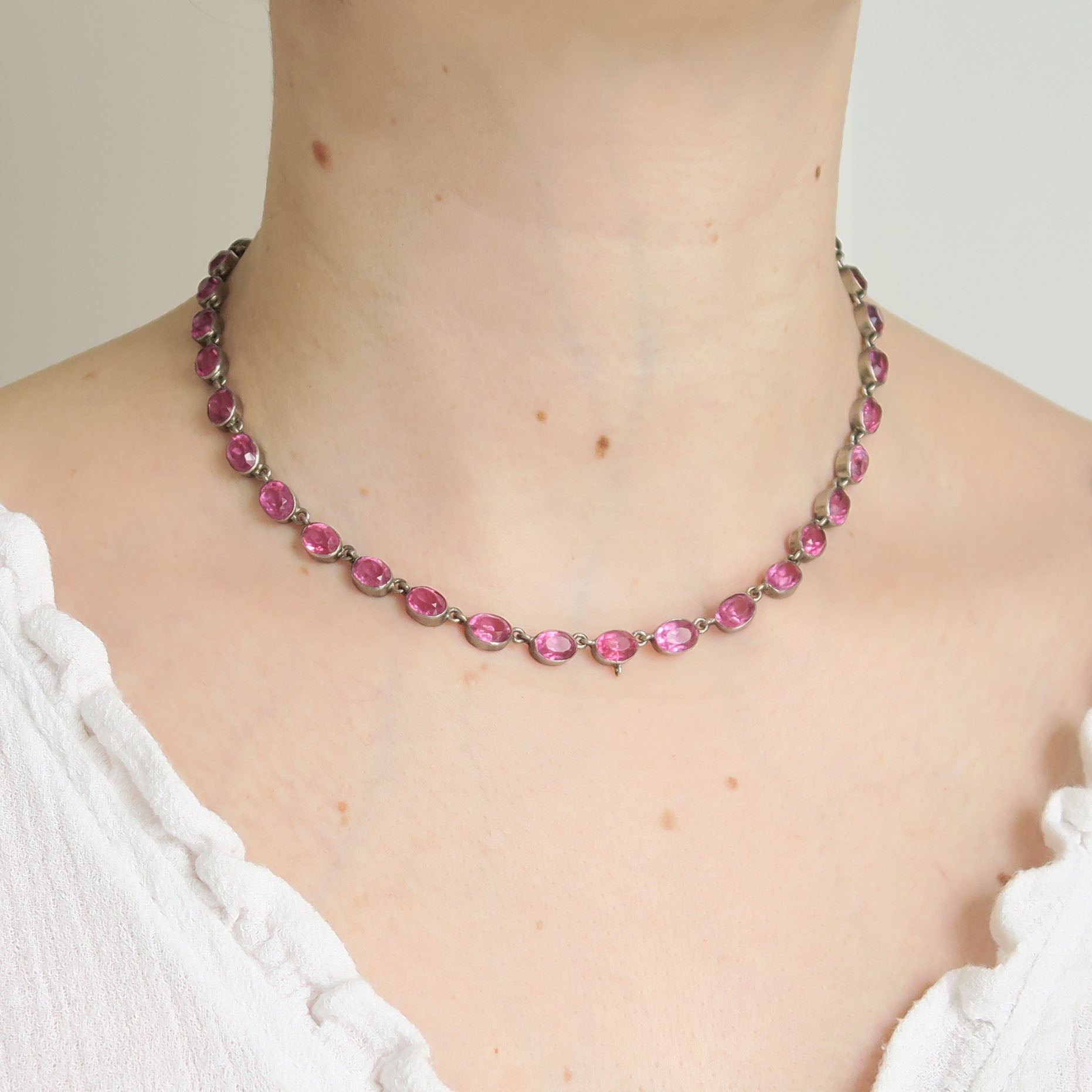 Antique Victorian Silver Pink Paste Riviere Necklace