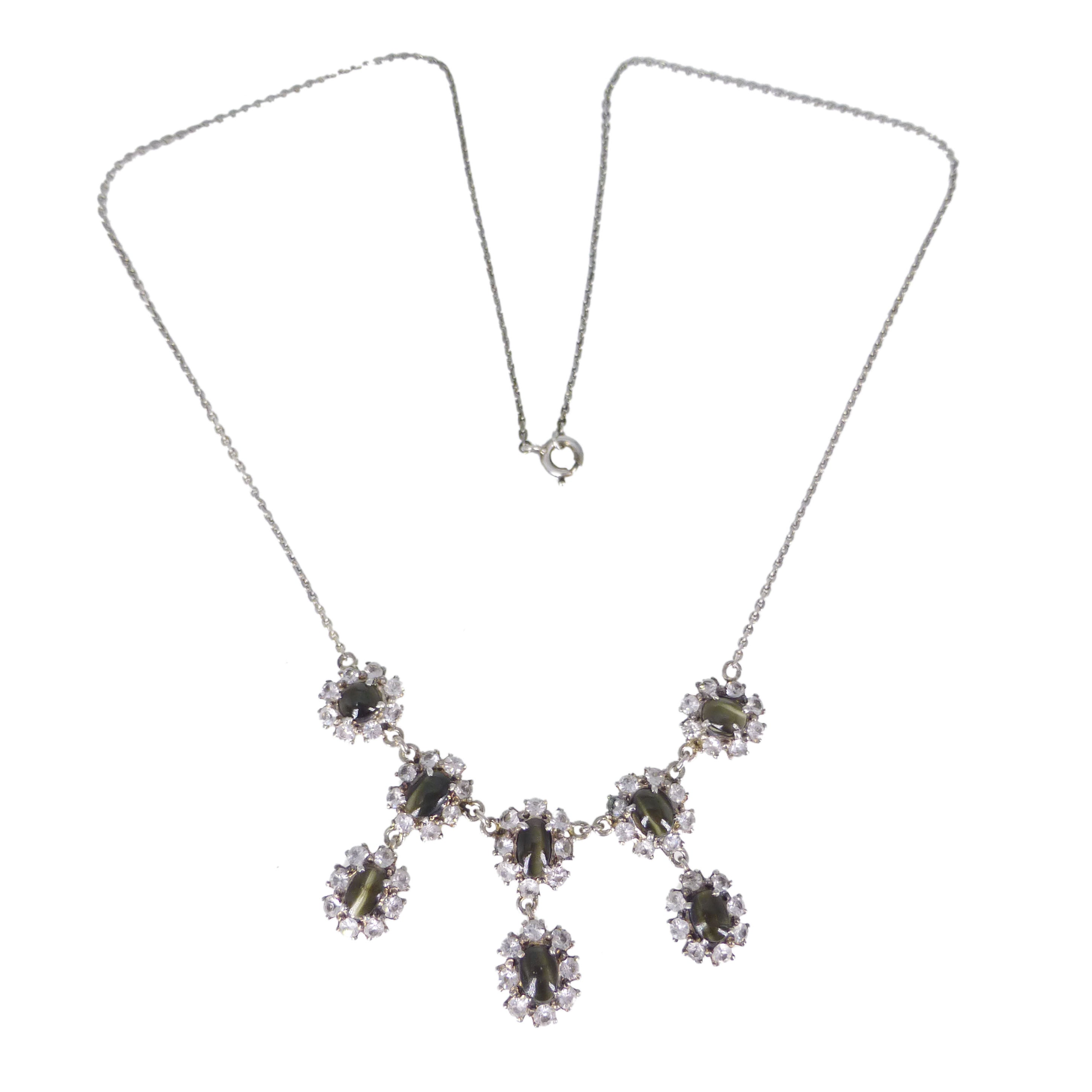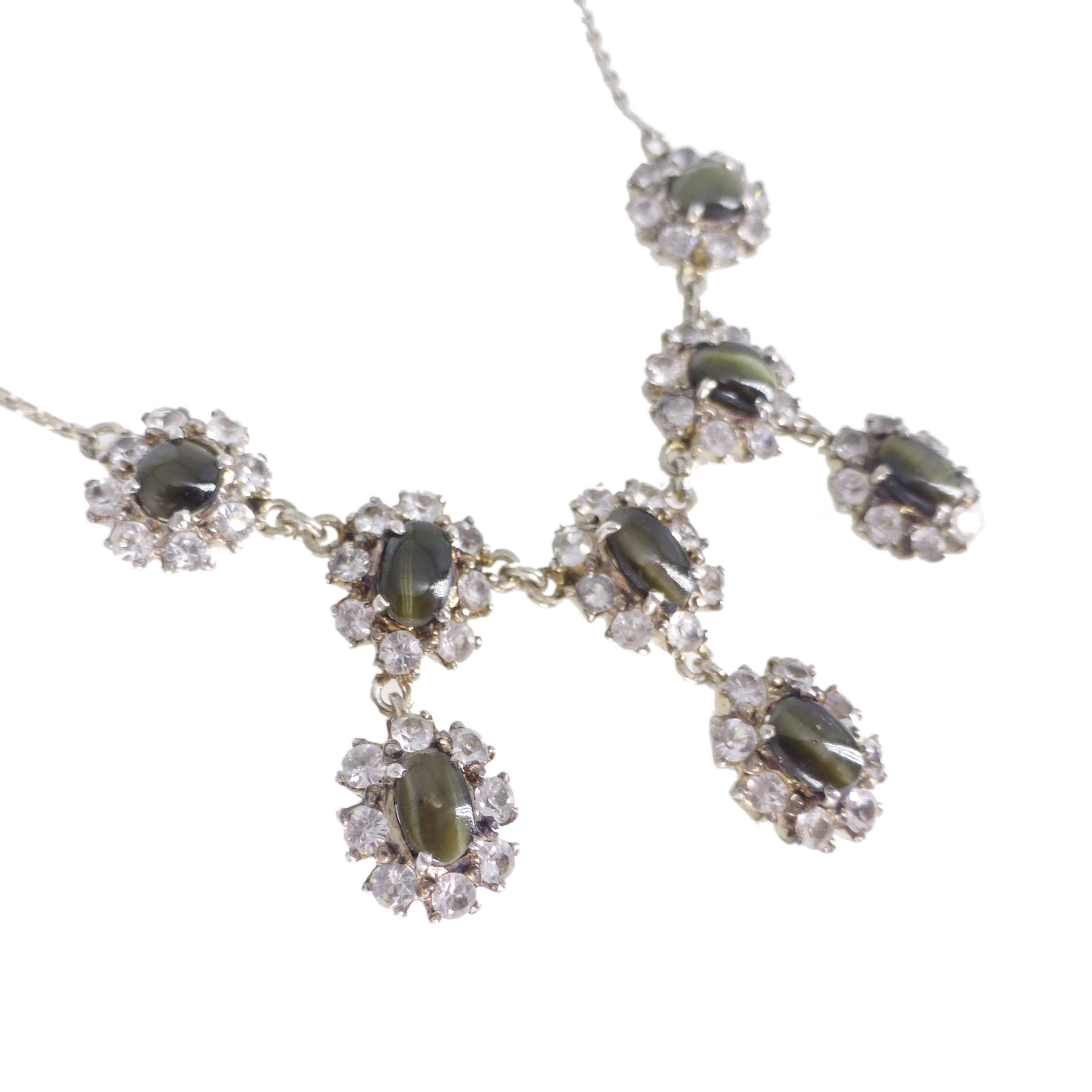 Vintage Chrysoberyl Cat's Eye & White Sapphire Necklace