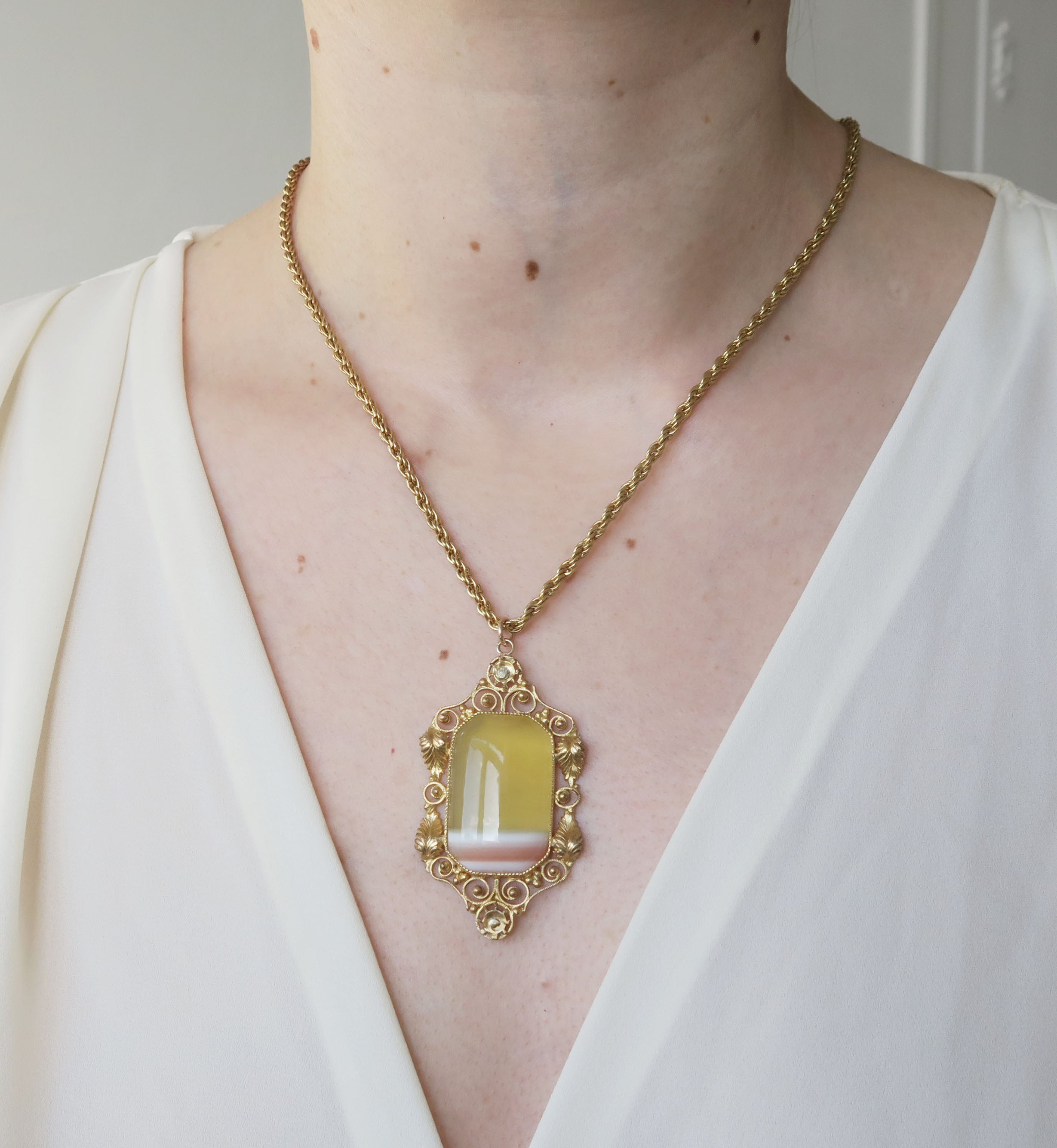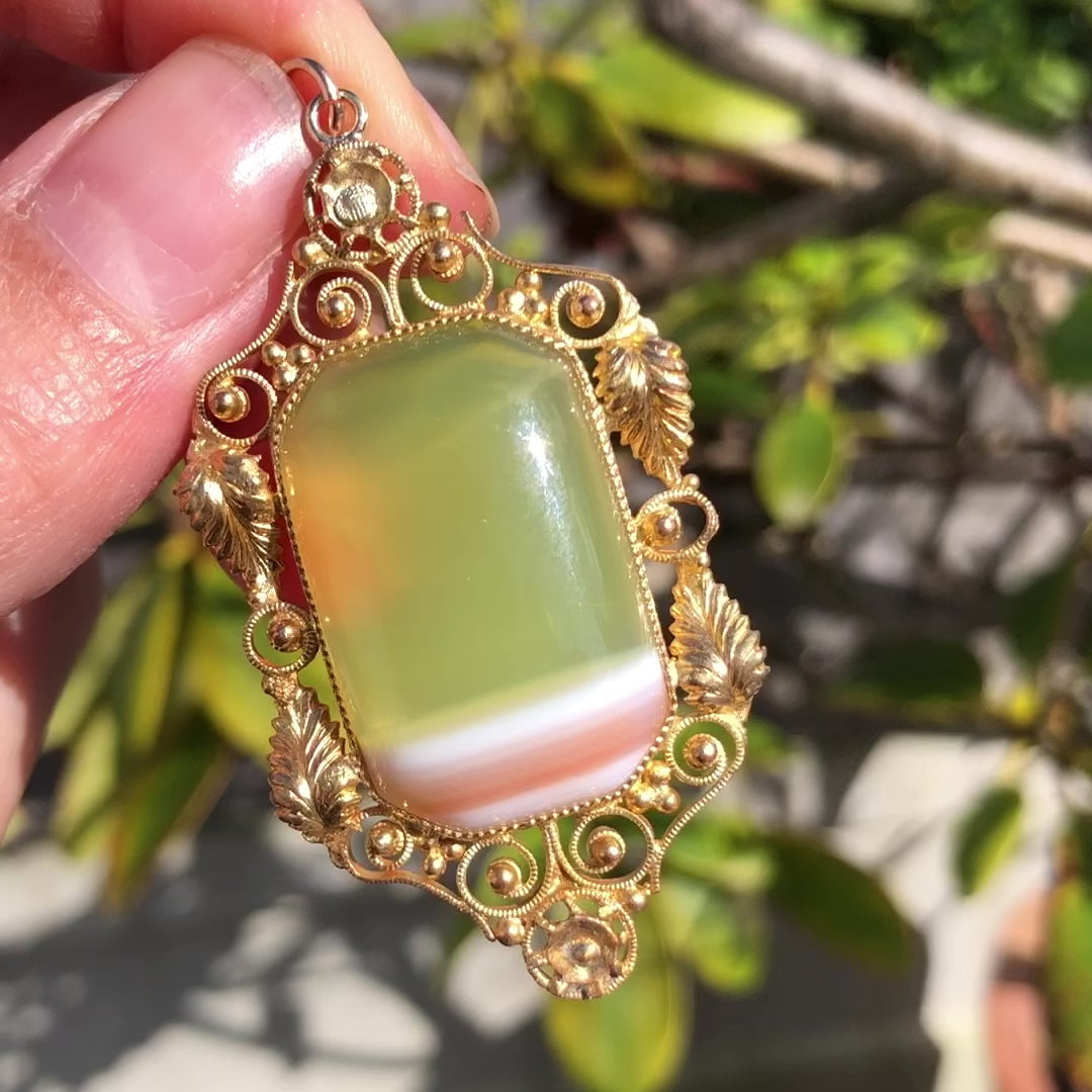 Antique Striped Lemon Agate Pinchbeck Pendant