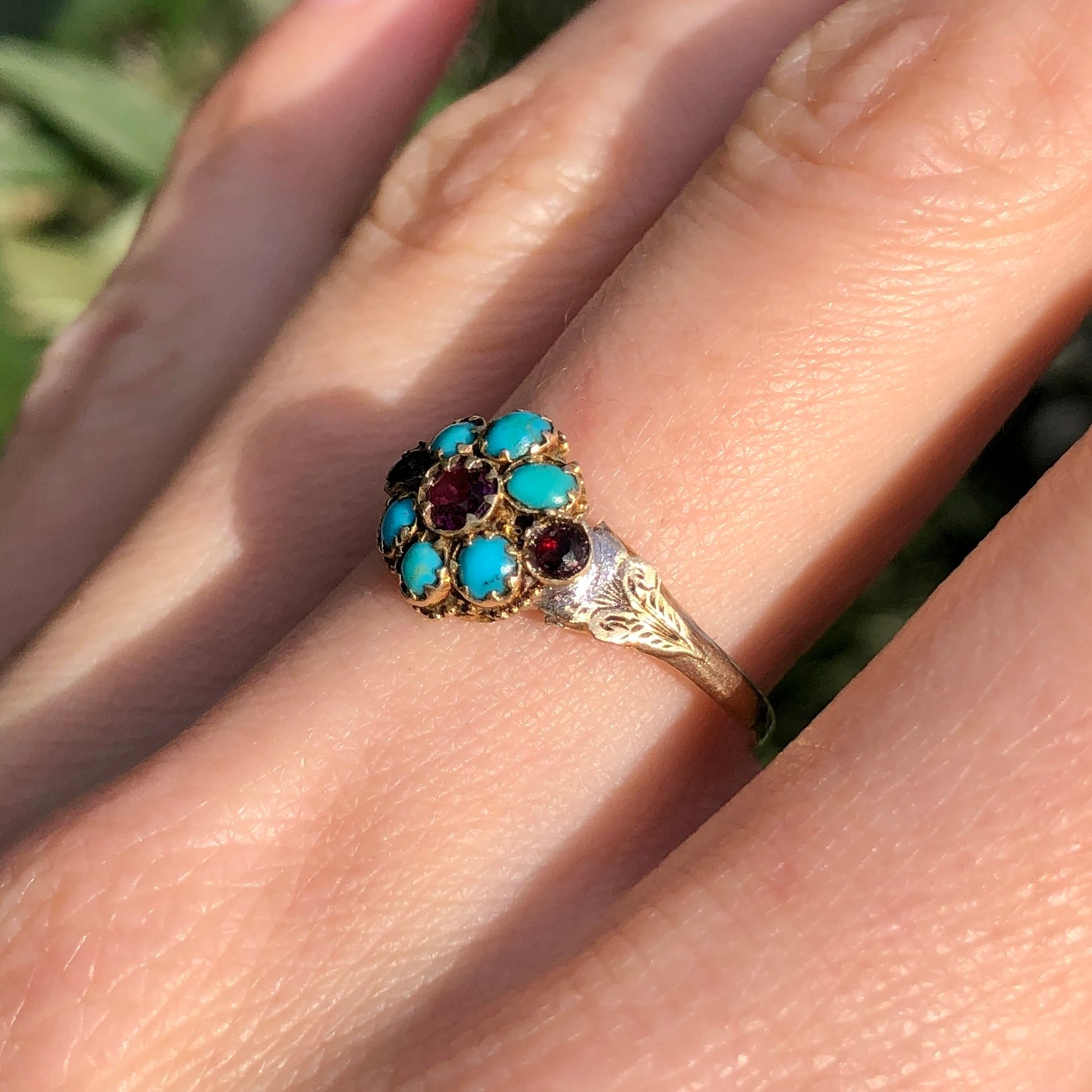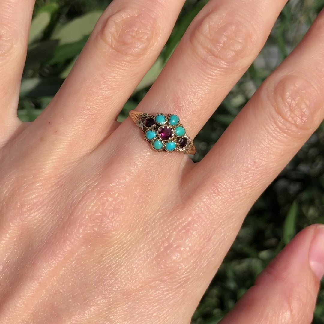 Antique Victorian 9ct Gold Turquoise Floral Ring